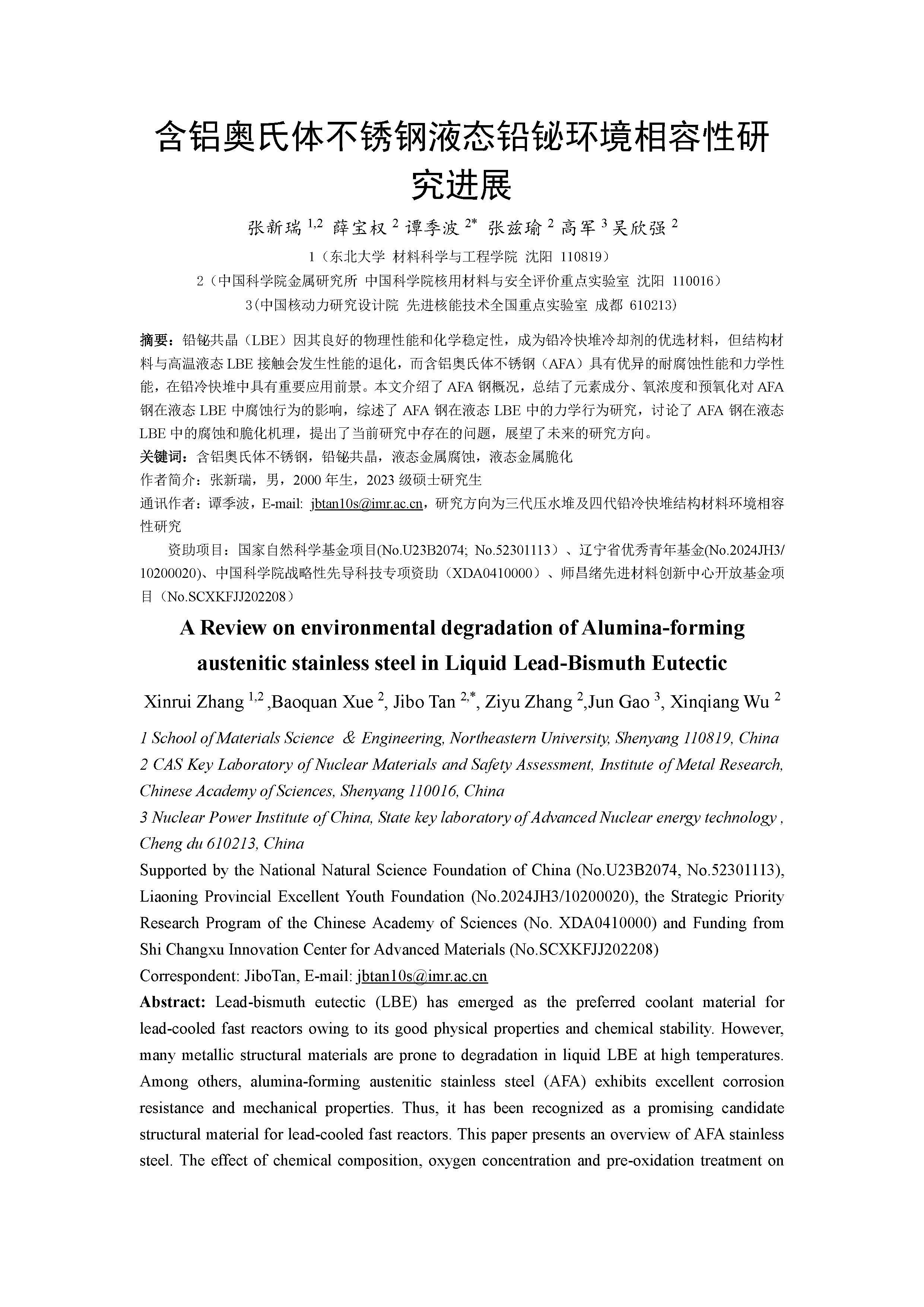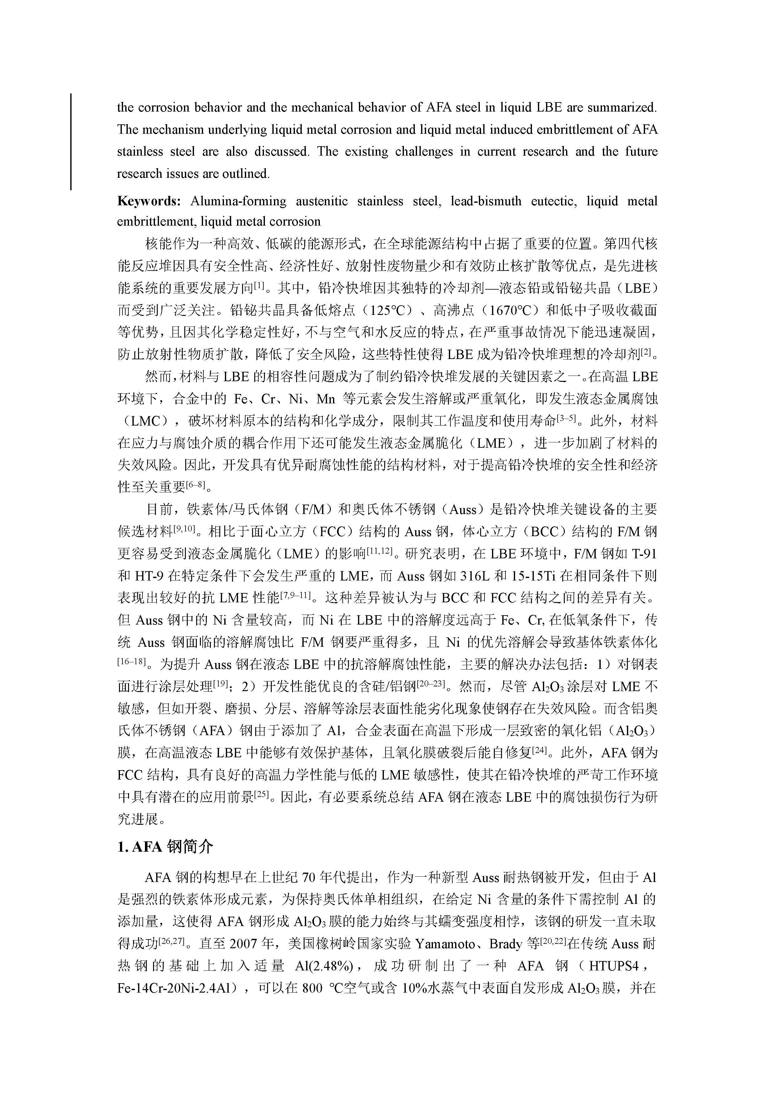 含铝奥氏体不锈钢液态铅铋环境相容性研究进展