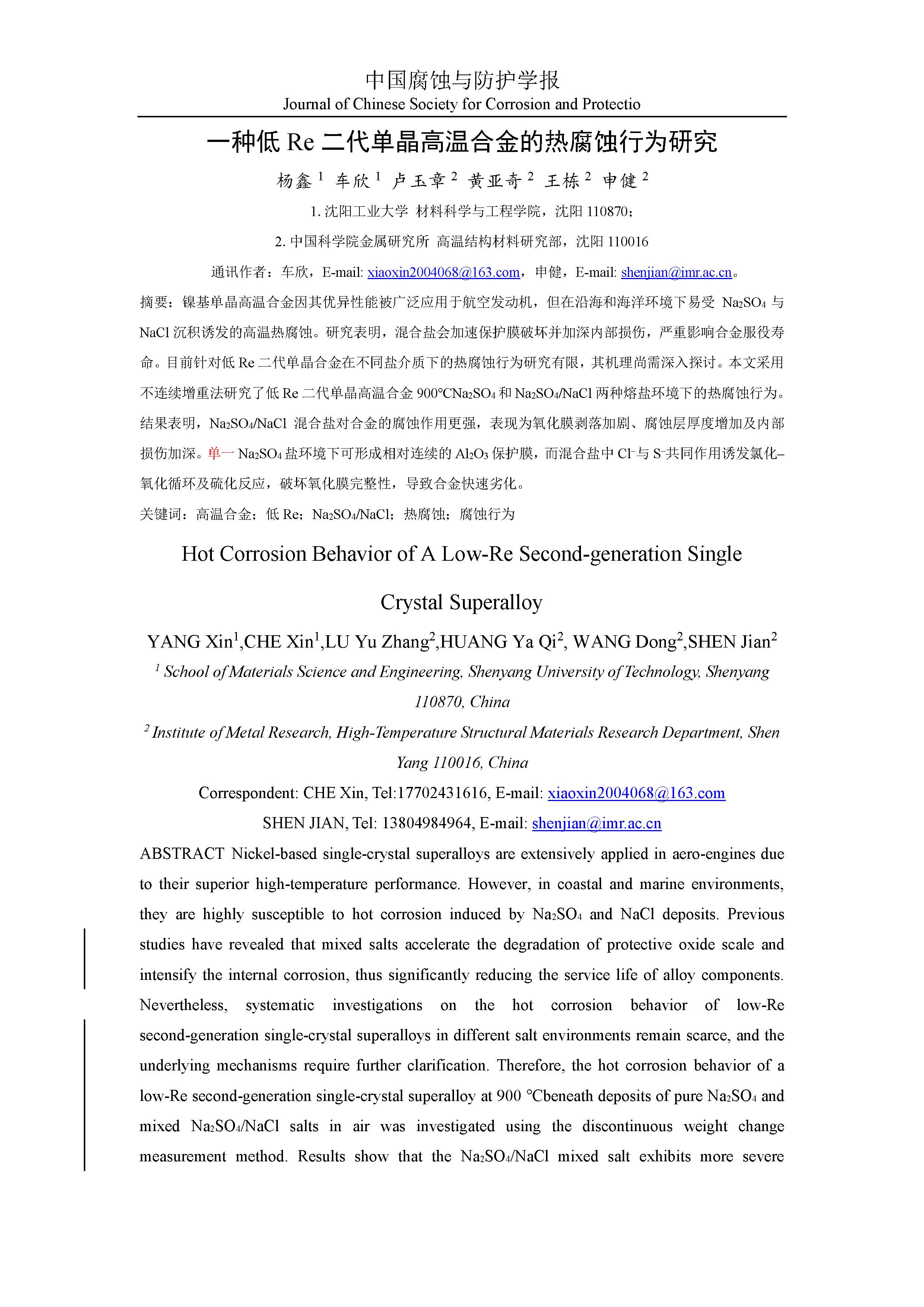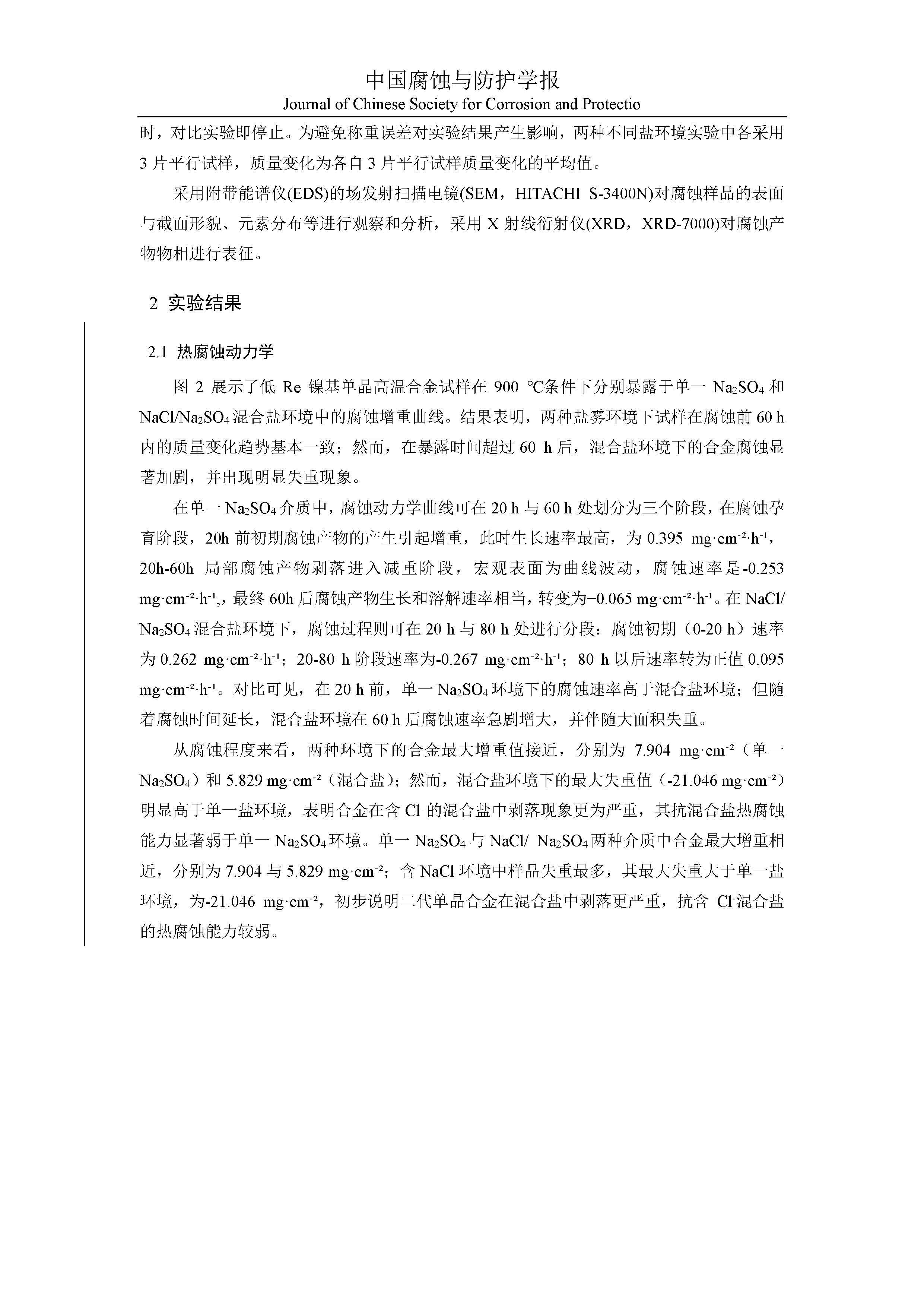 一种低 Re 二代单晶高温合金的热腐蚀行为研究