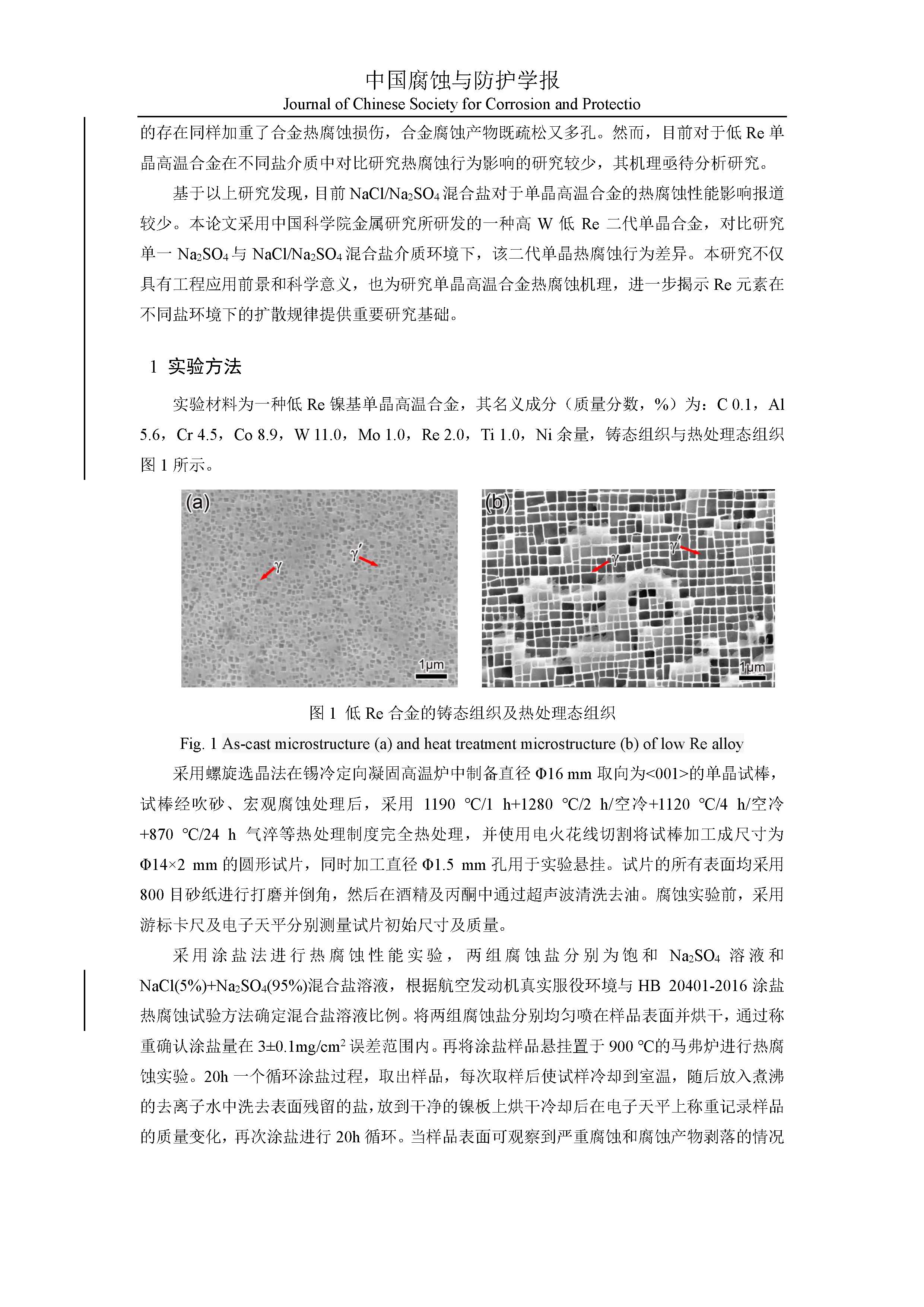 来源:中国腐蚀与防护学报