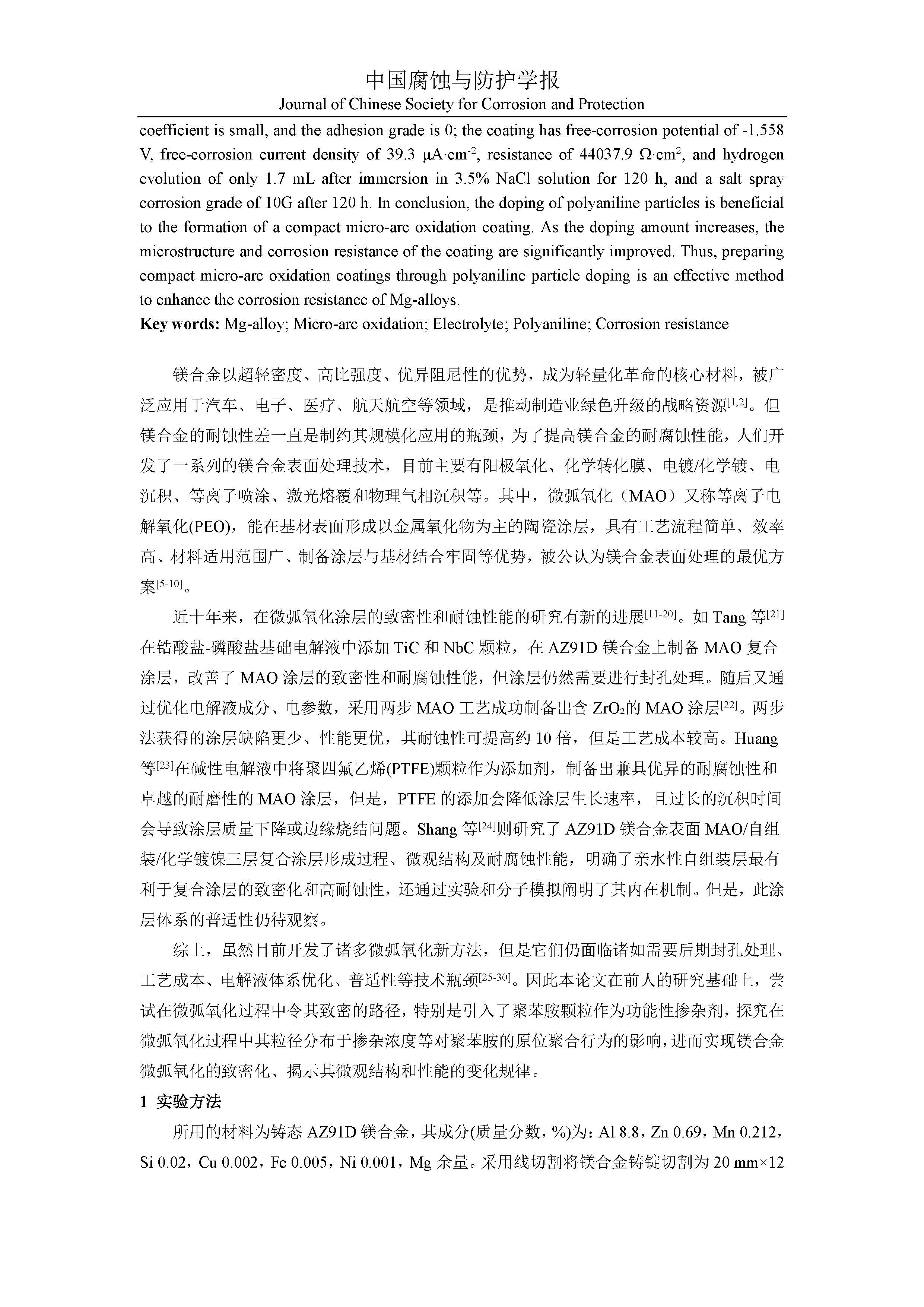 来源:中国腐蚀与防护学报