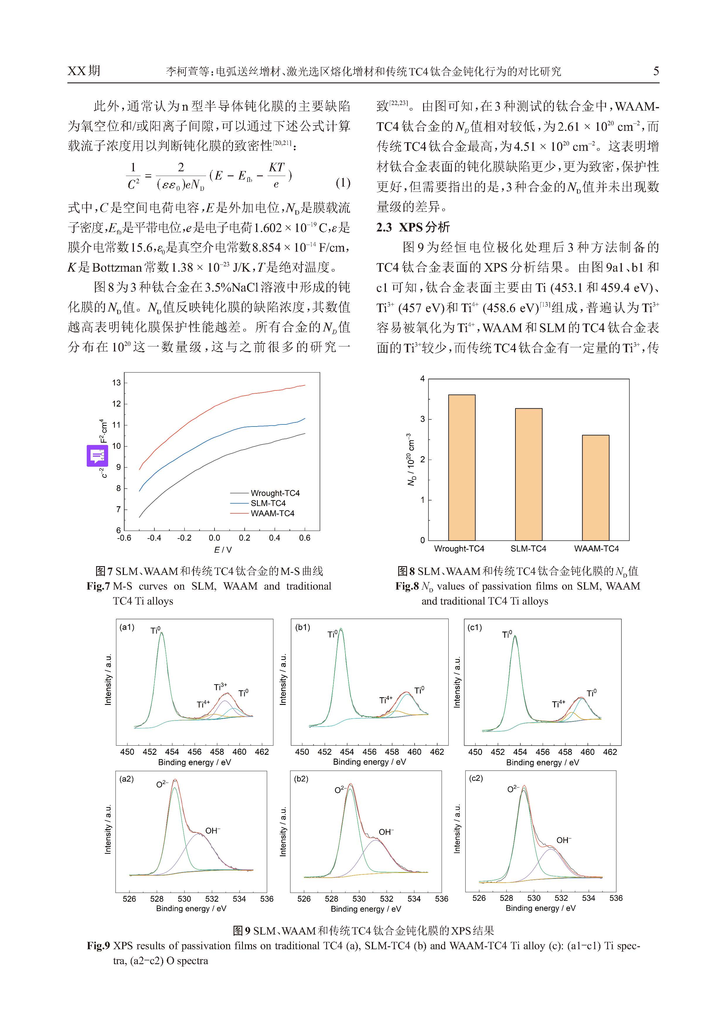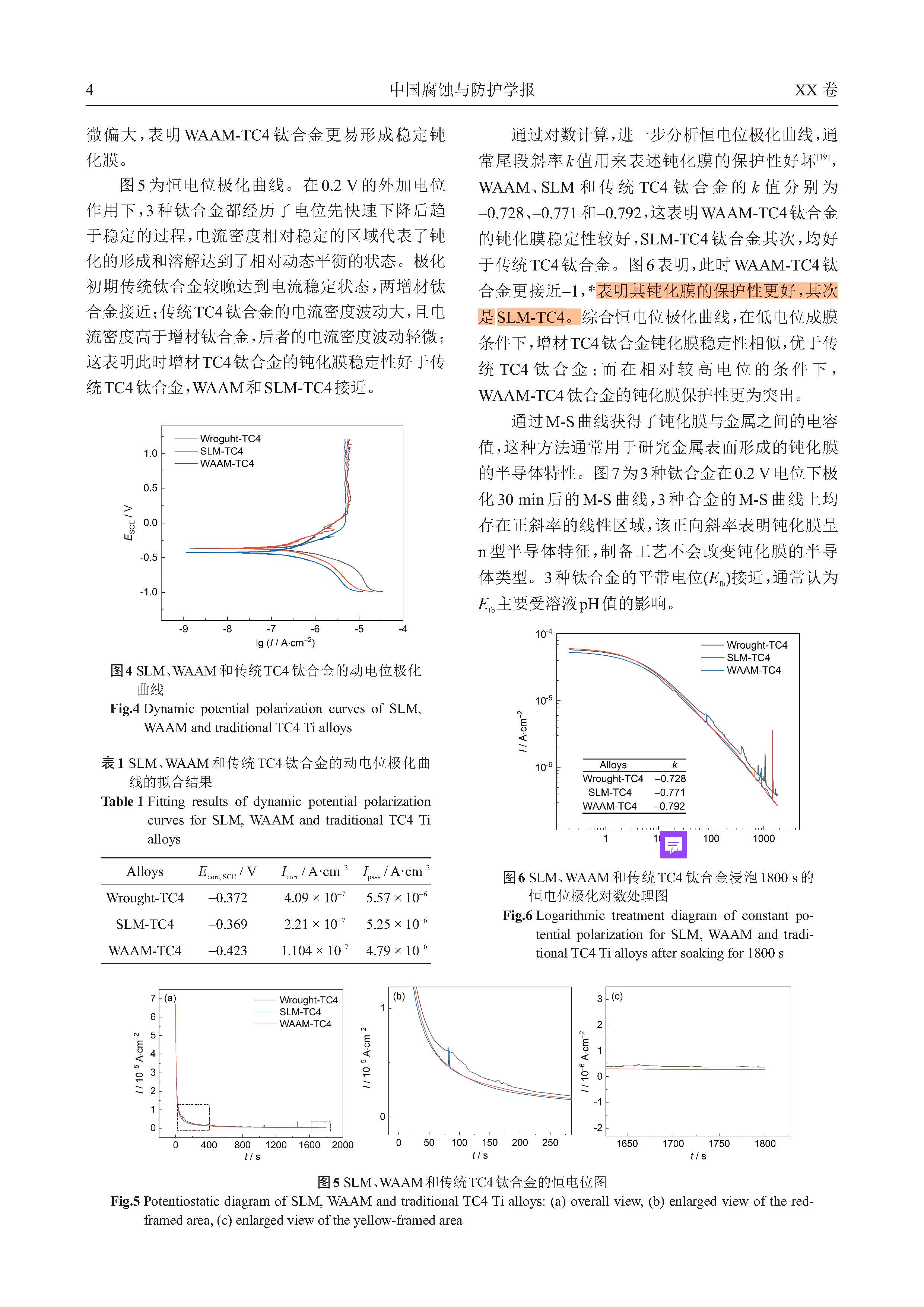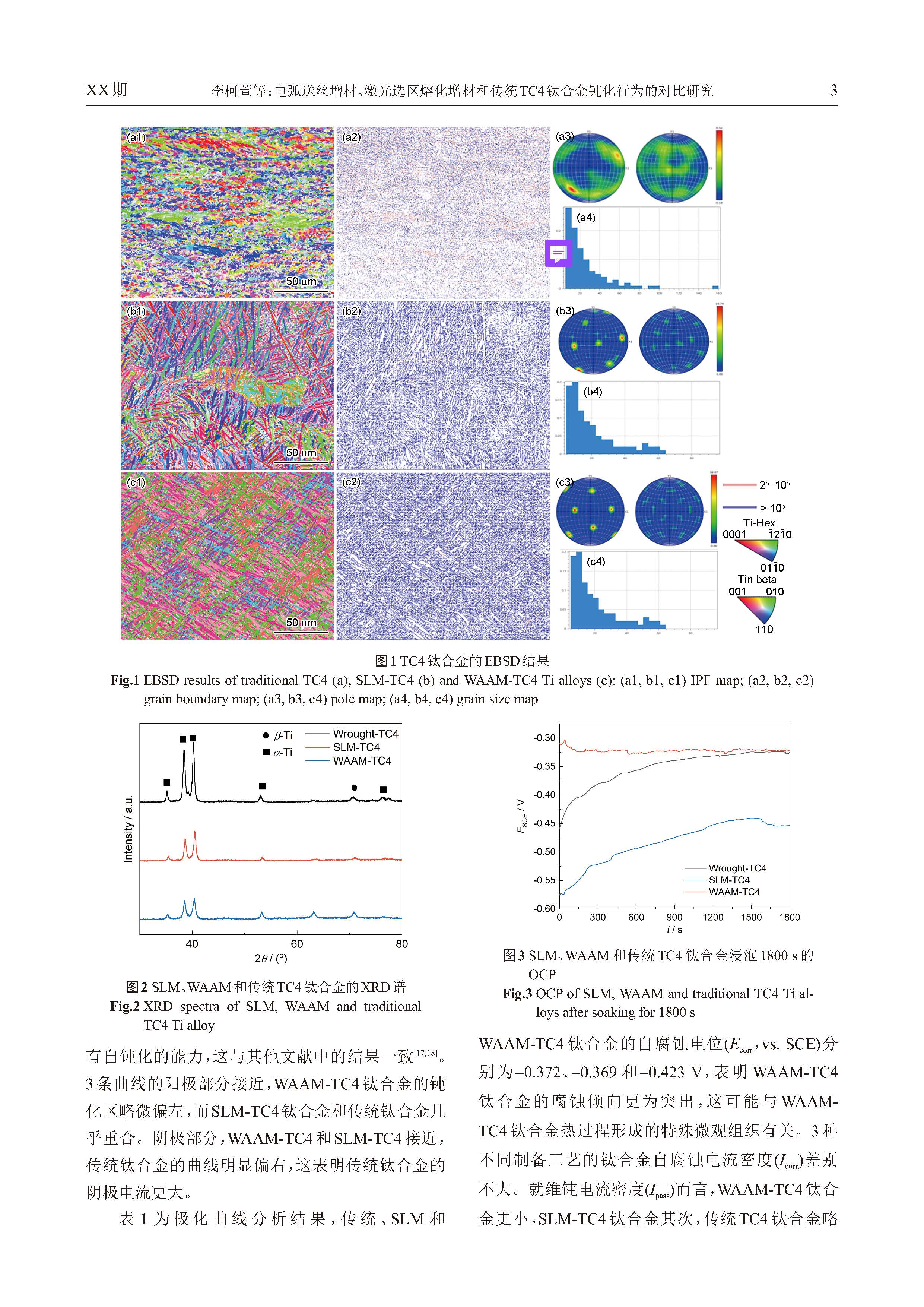 电弧送丝增材、激光选区熔化增材和传统TC4 钛合金钝化行为的对比研究