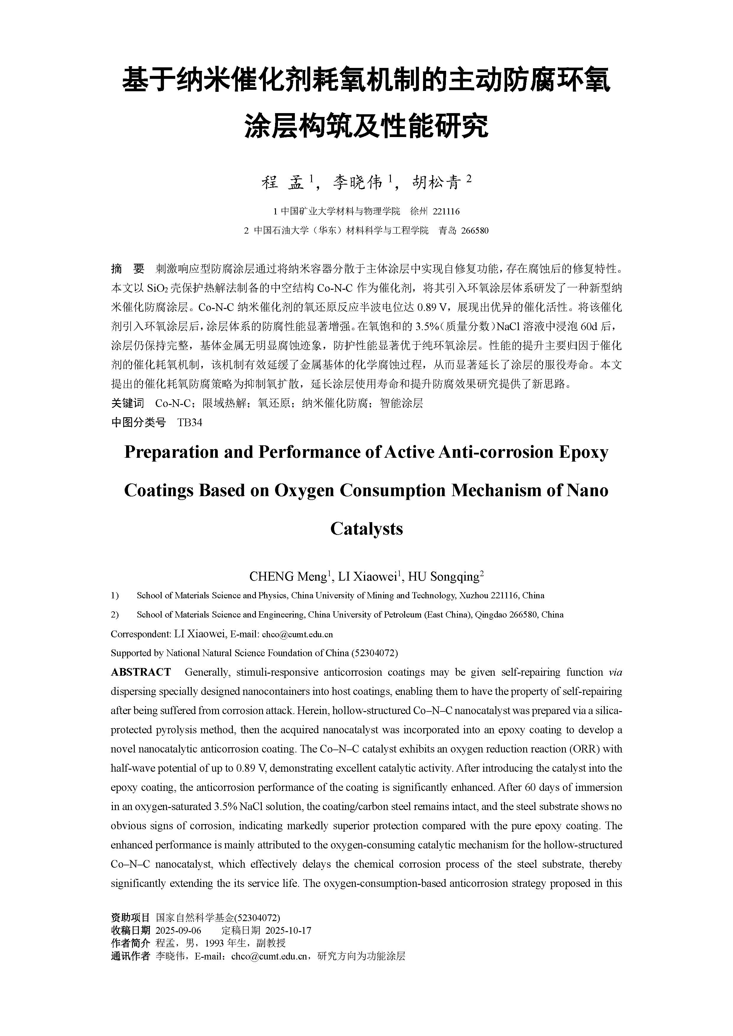 基于纳米催化剂耗氧机制的主动防腐环氧涂层构筑及性能研究