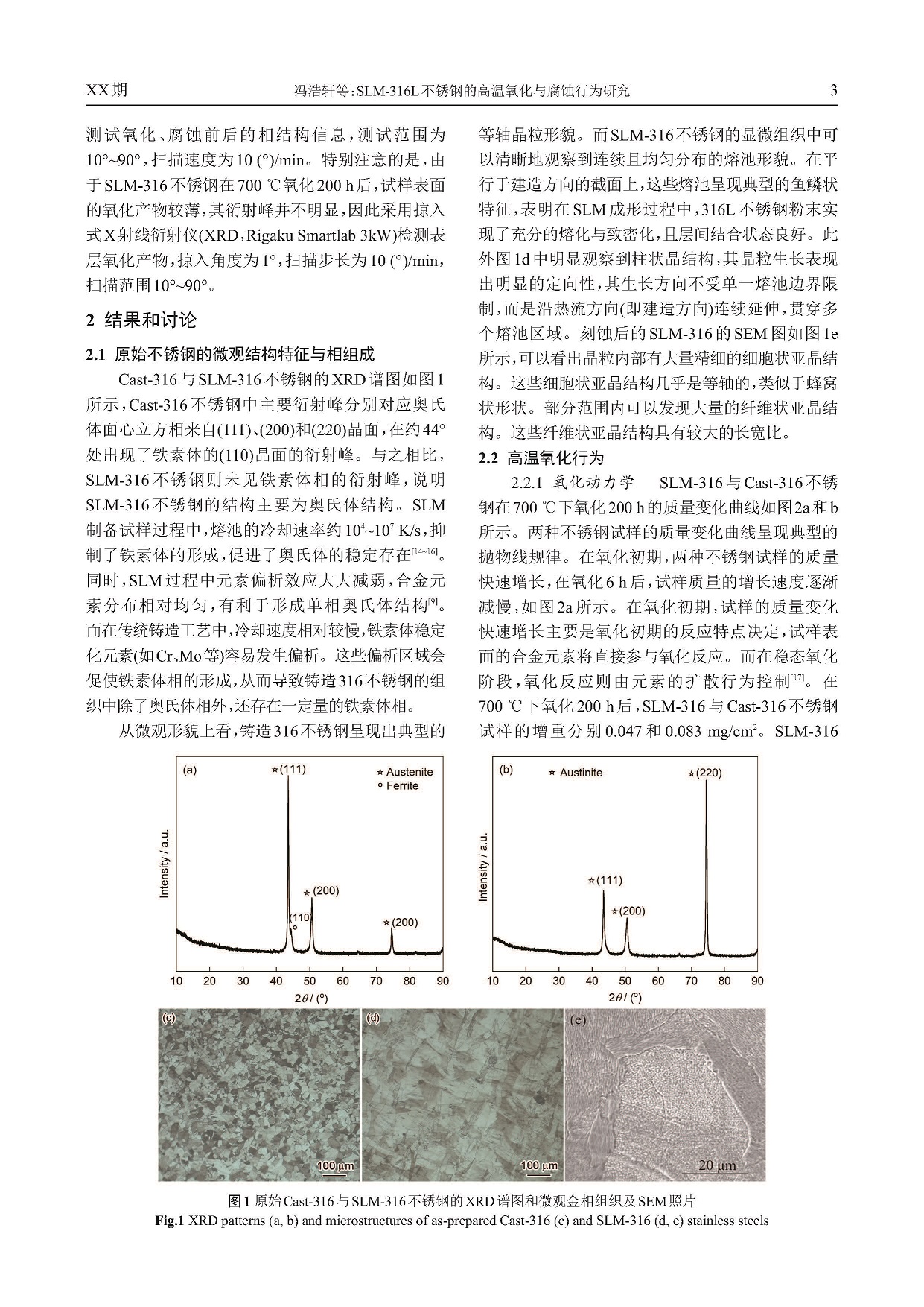 SLM-316L不锈钢的高温氧化与腐蚀行为研究