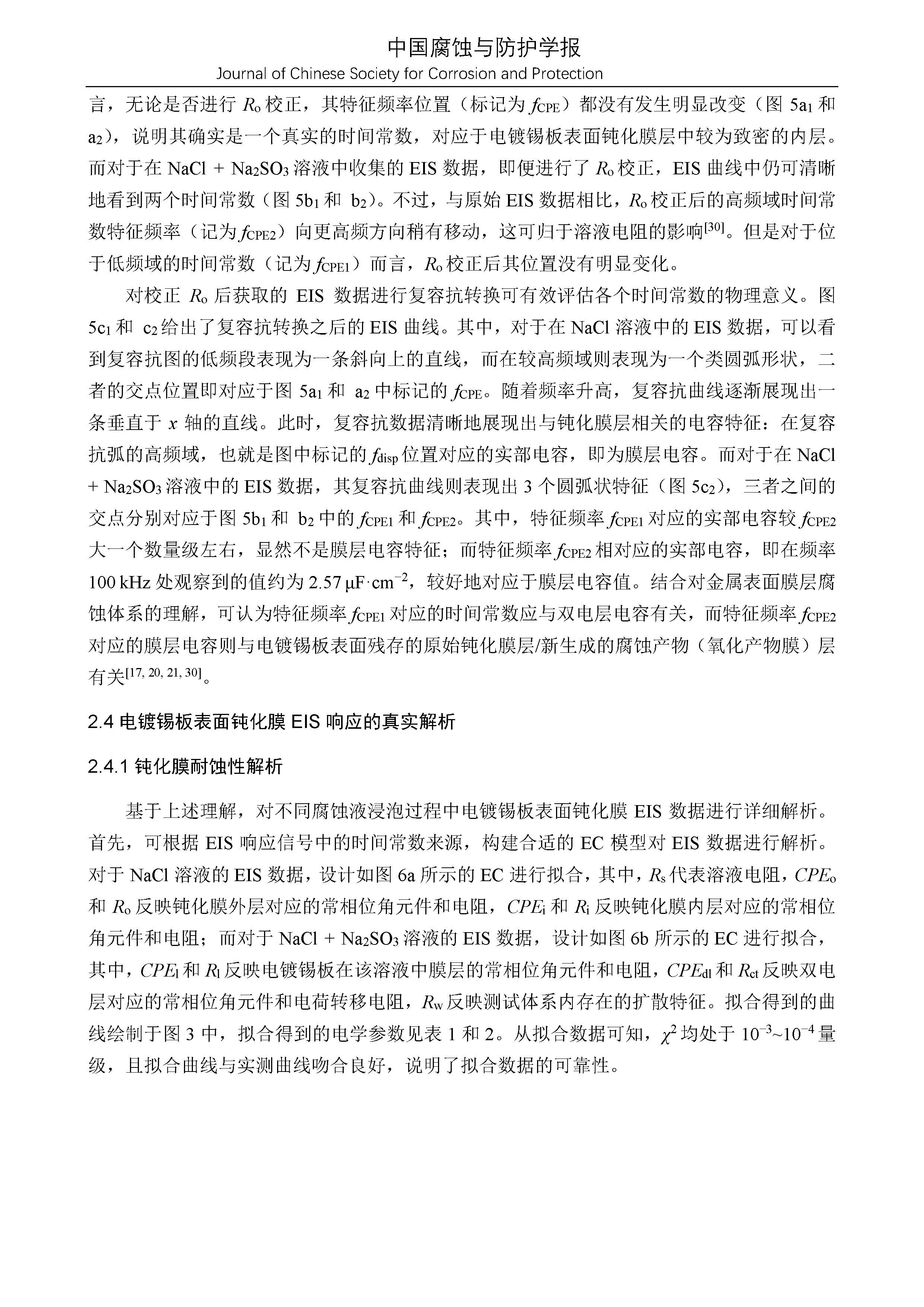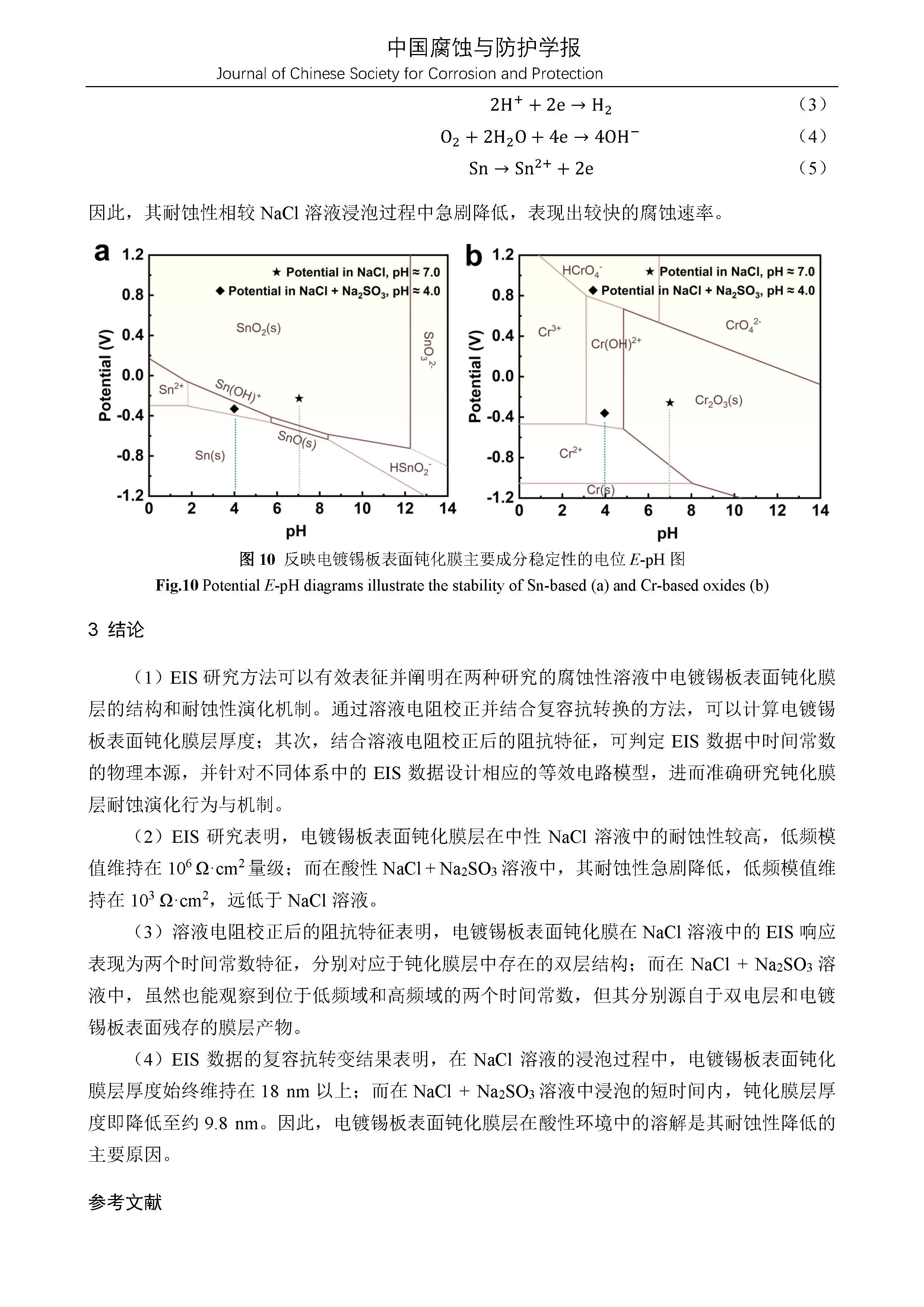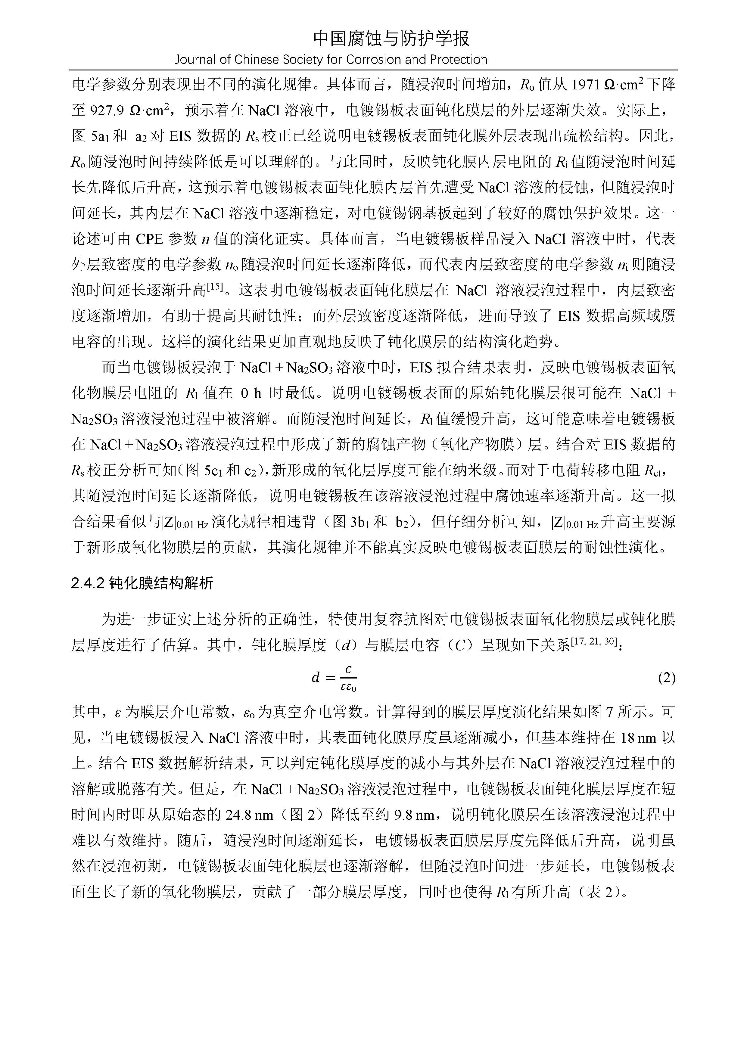 电镀锡板表面 Cr2O3钝化膜结构及耐蚀性演化的电化学阻抗谱研究