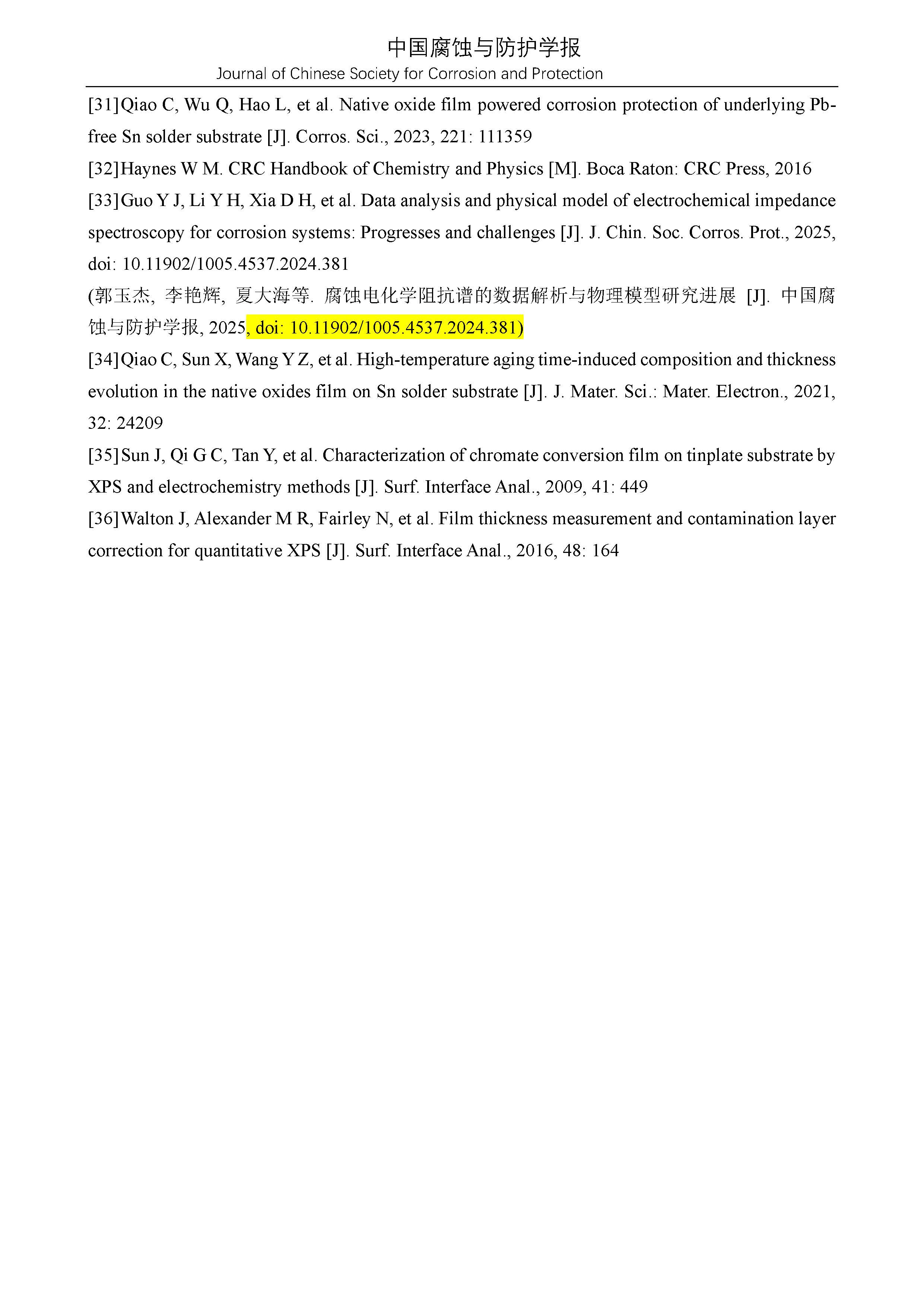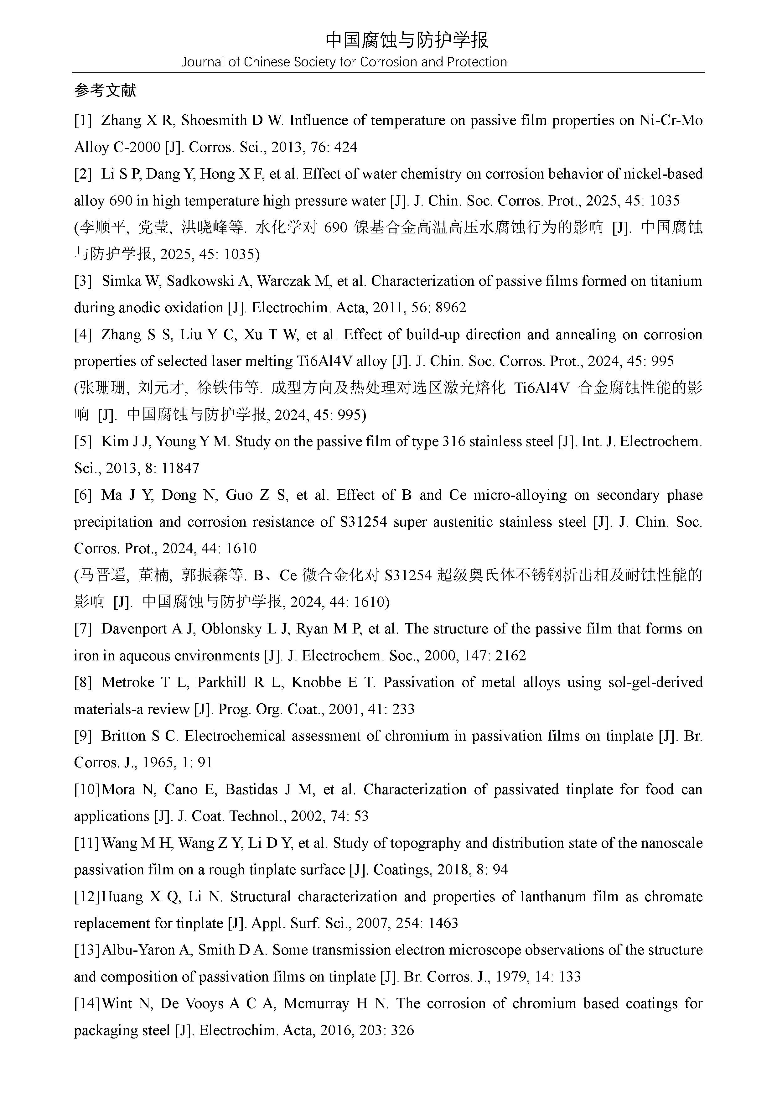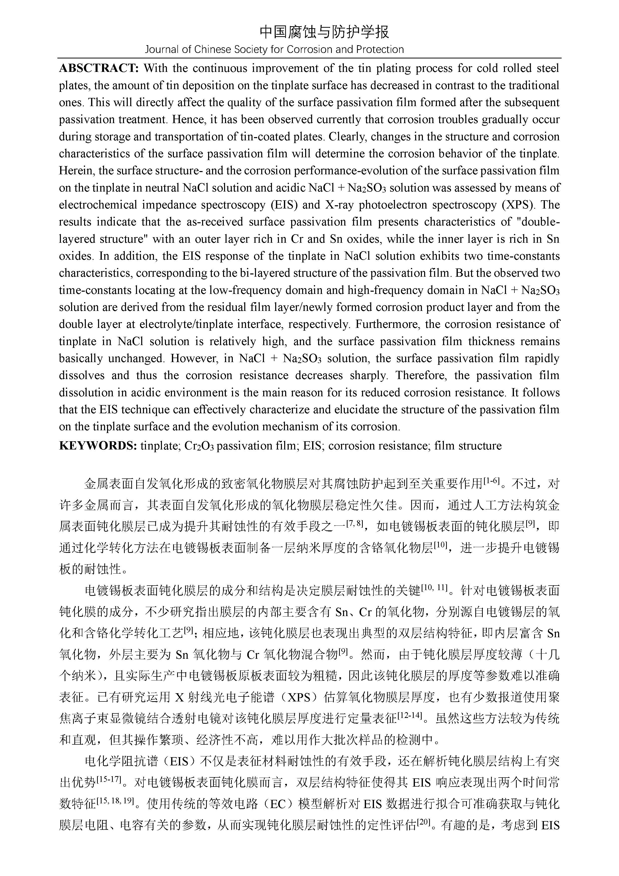 来源:中国腐蚀与防护学报