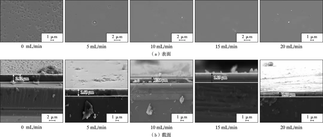 不同N2流量下AlCrTiCN涂层的表面和截面形貌 不同N2流量下AlCrTiCN涂层的表面粗糙度