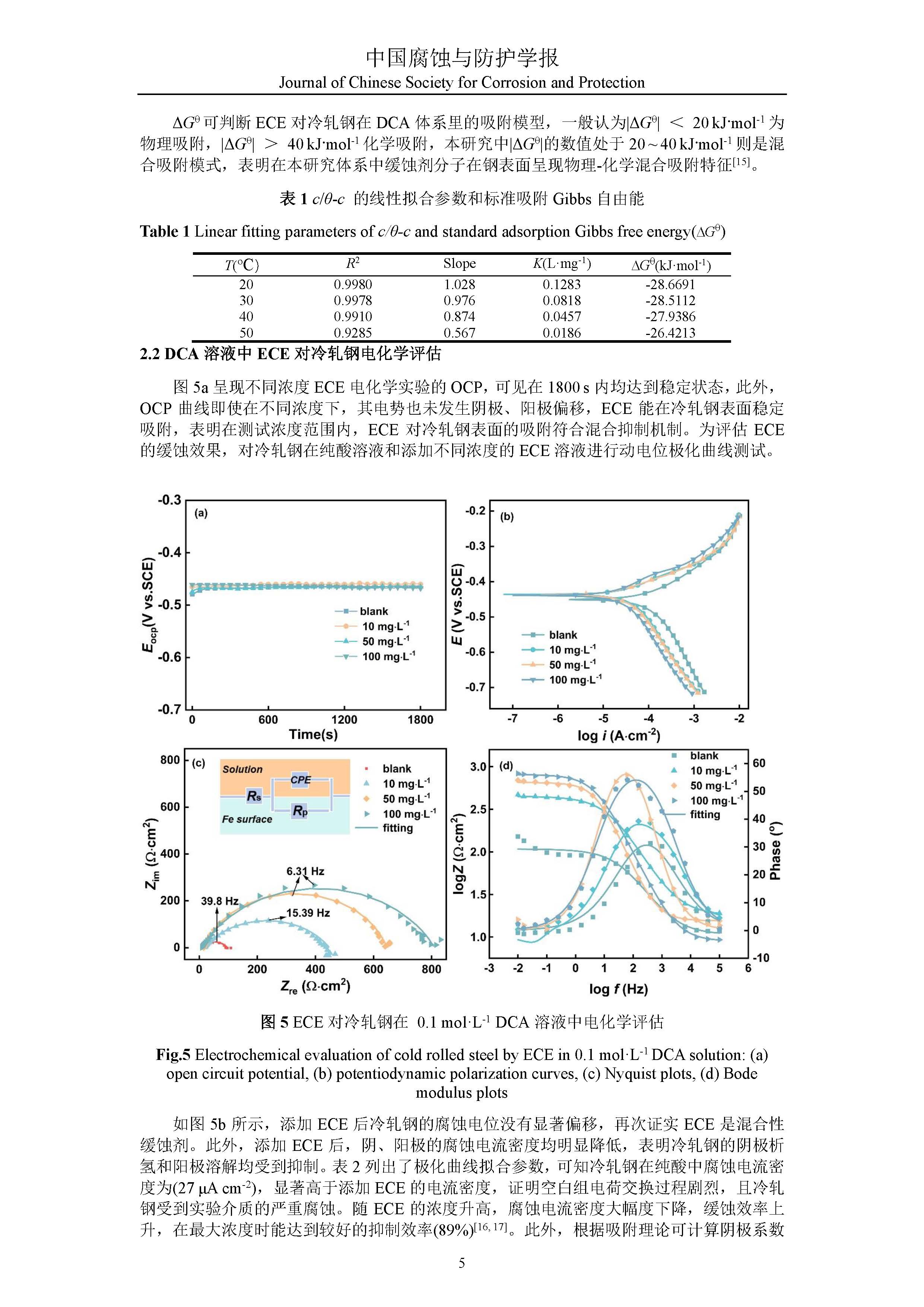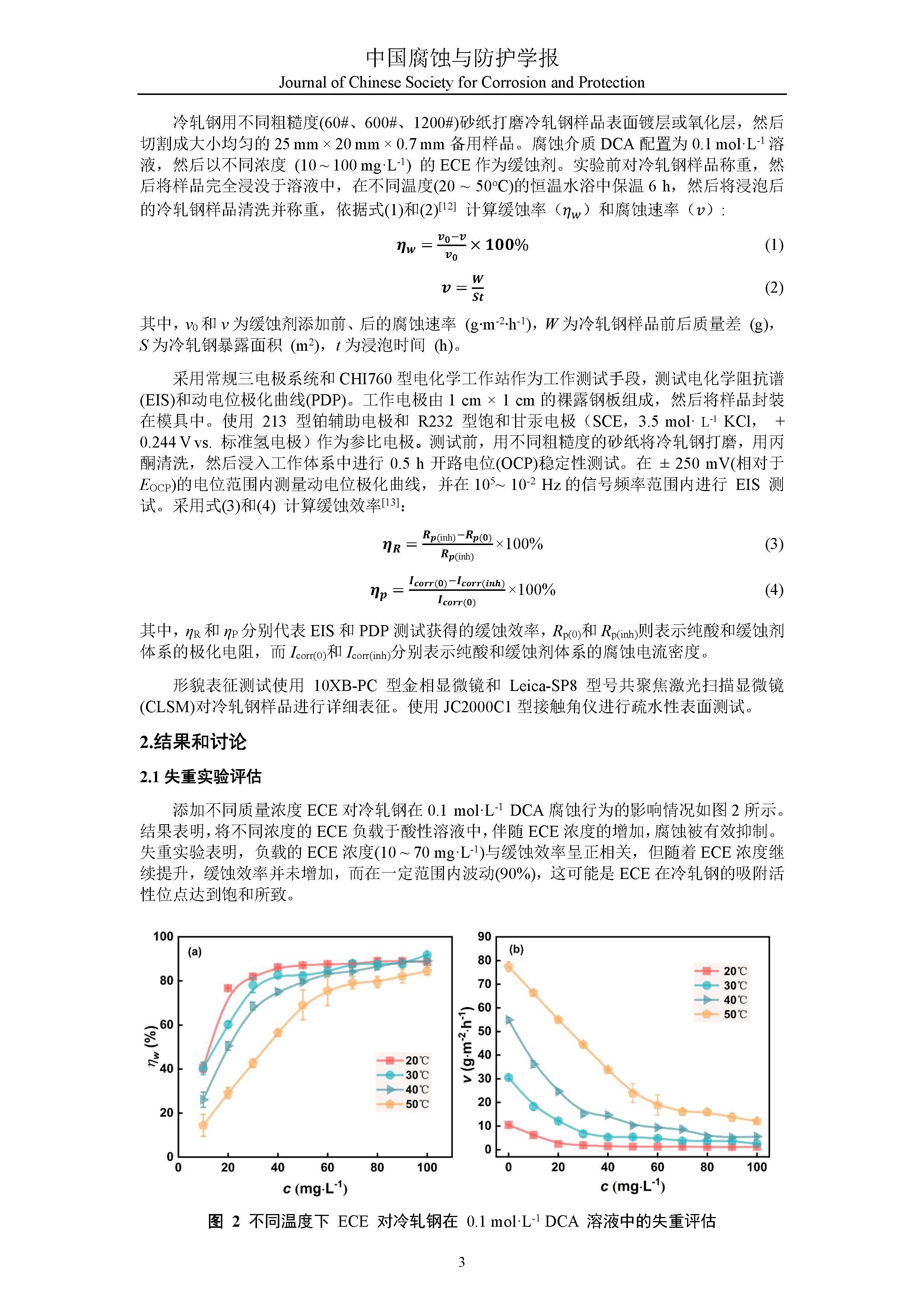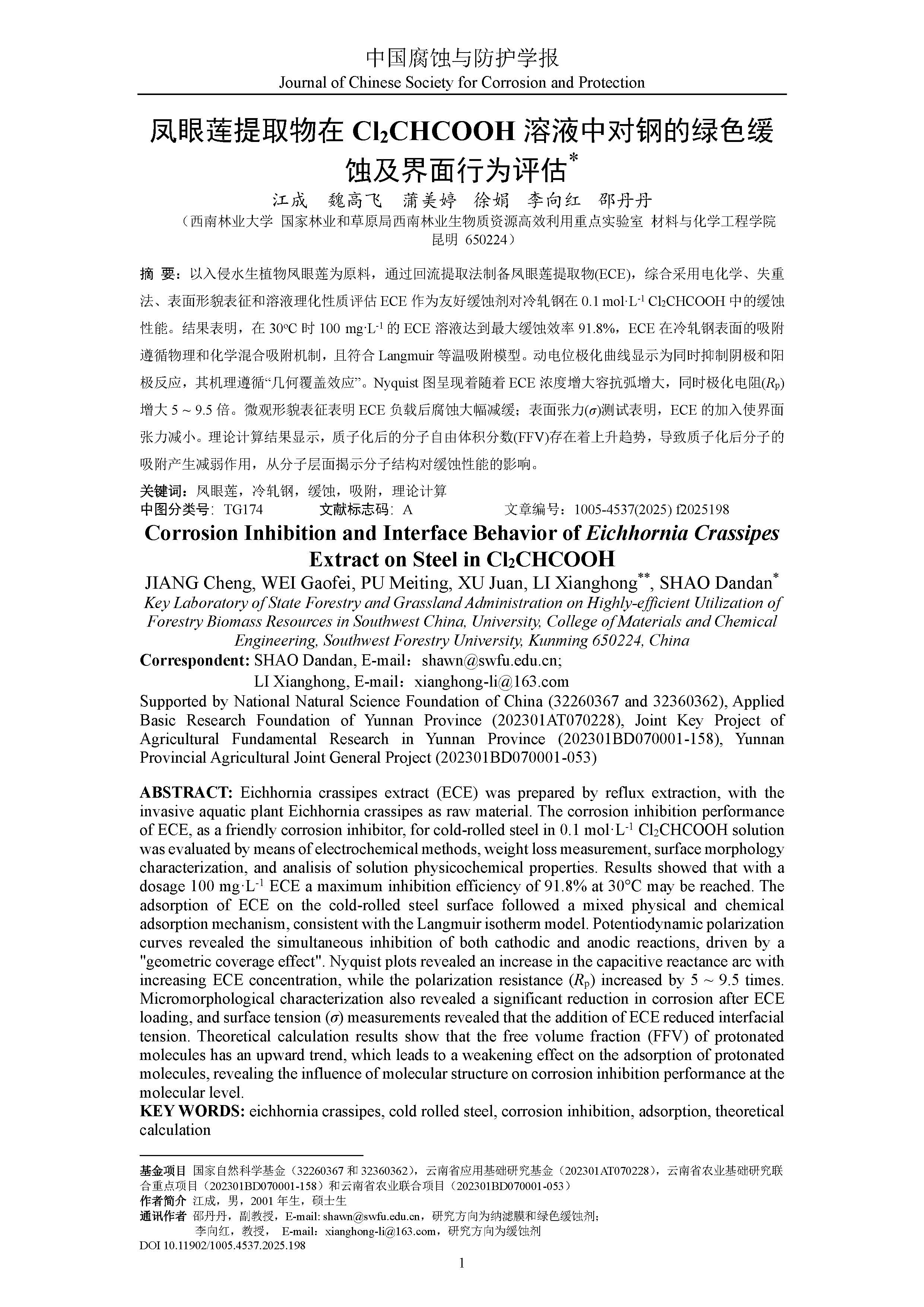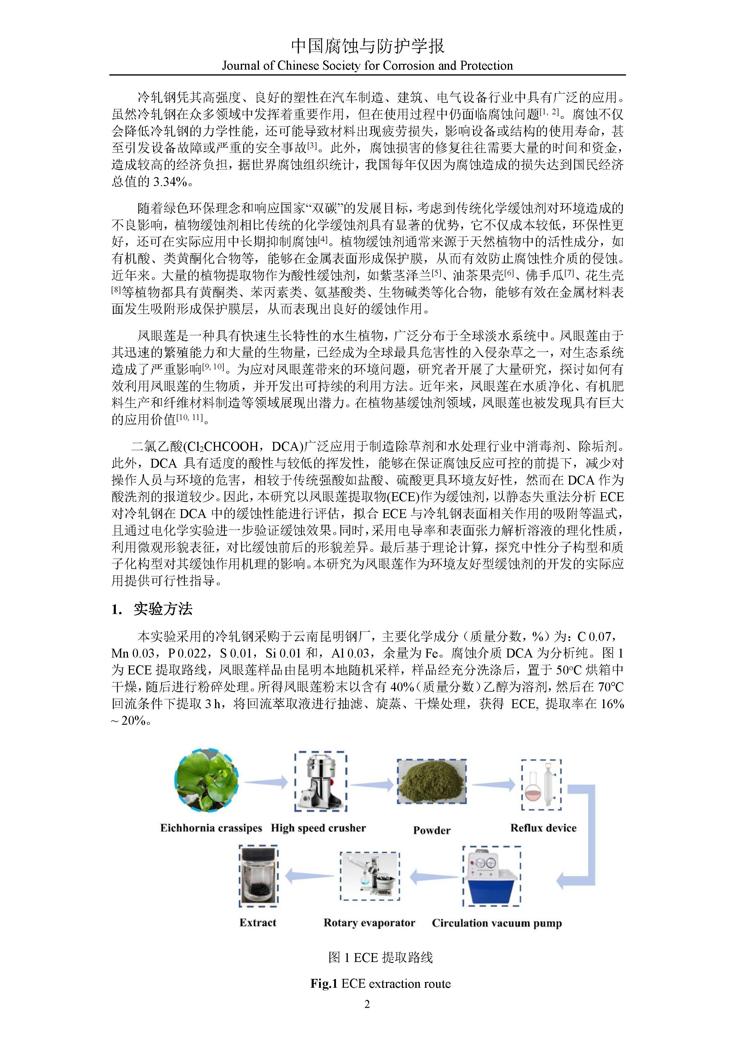 凤眼莲提取物对钢在Cl2CCOOH的抑制特性评估