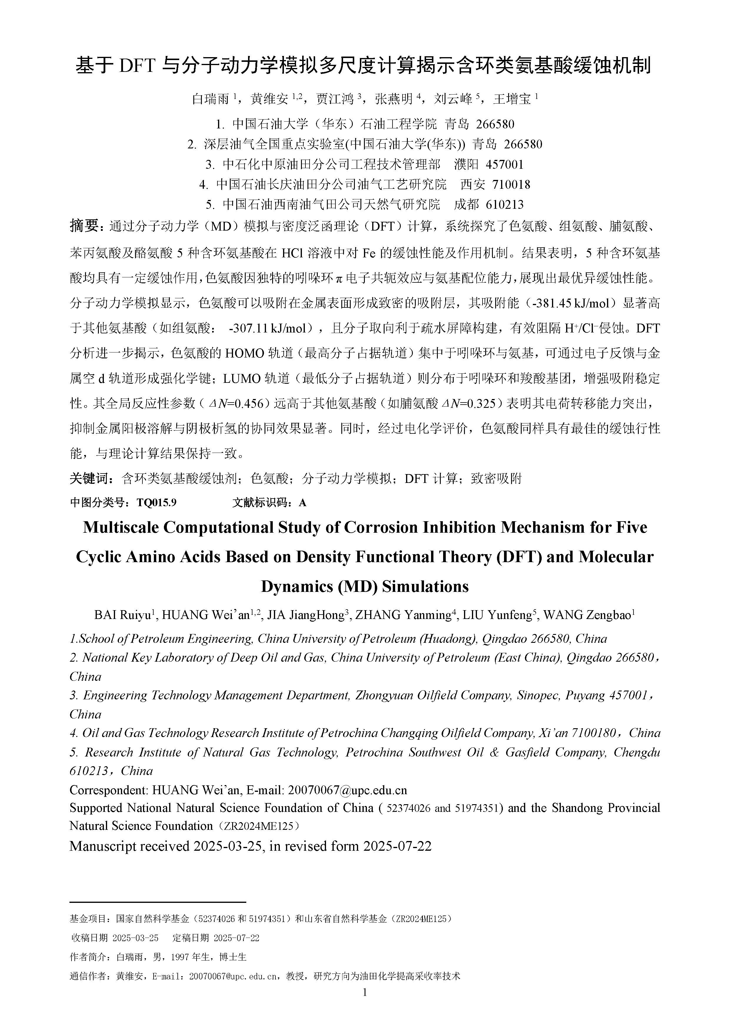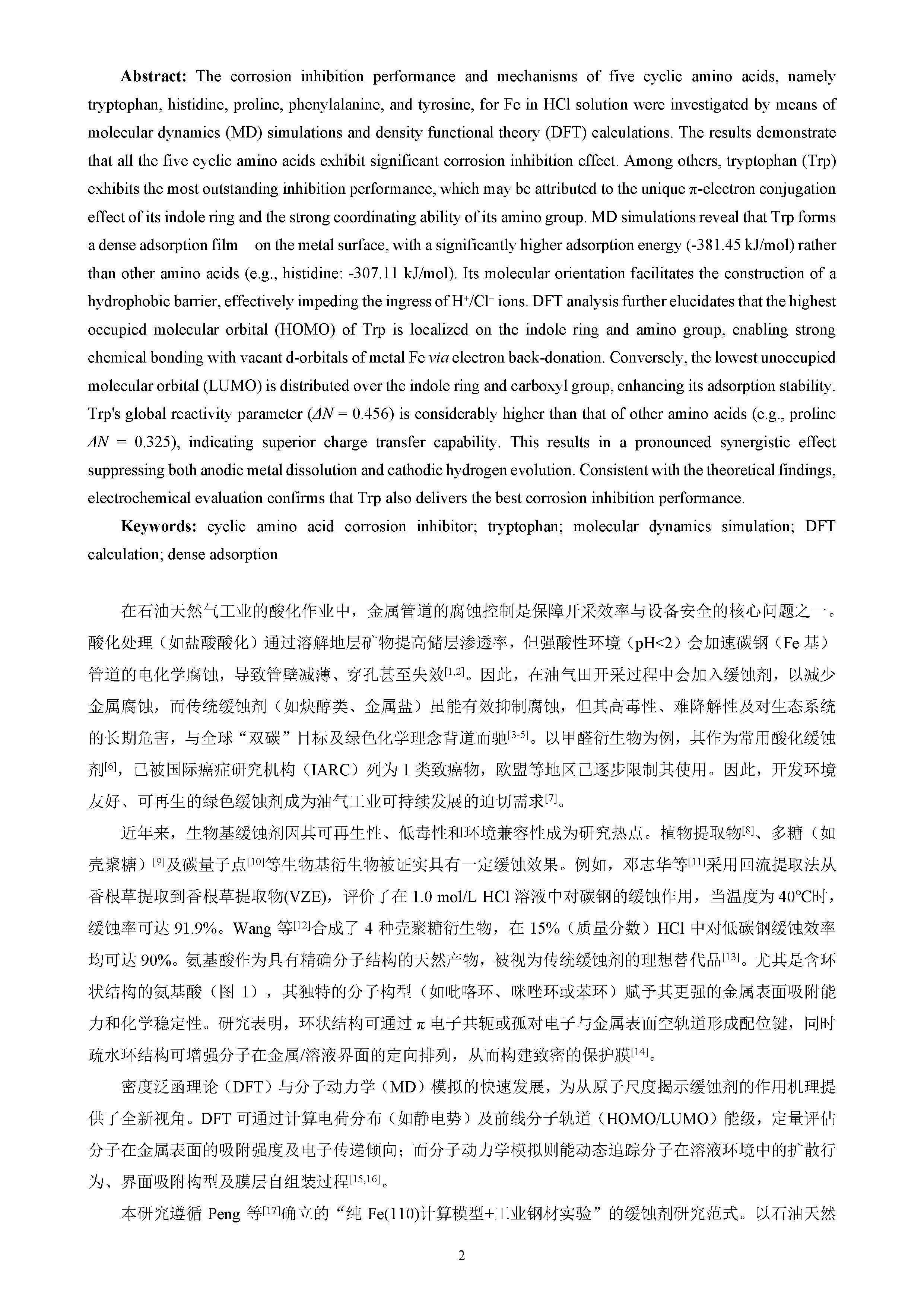 基于DFT与分子动力学模拟多尺度计算揭示含环类氨基酸缓蚀机制