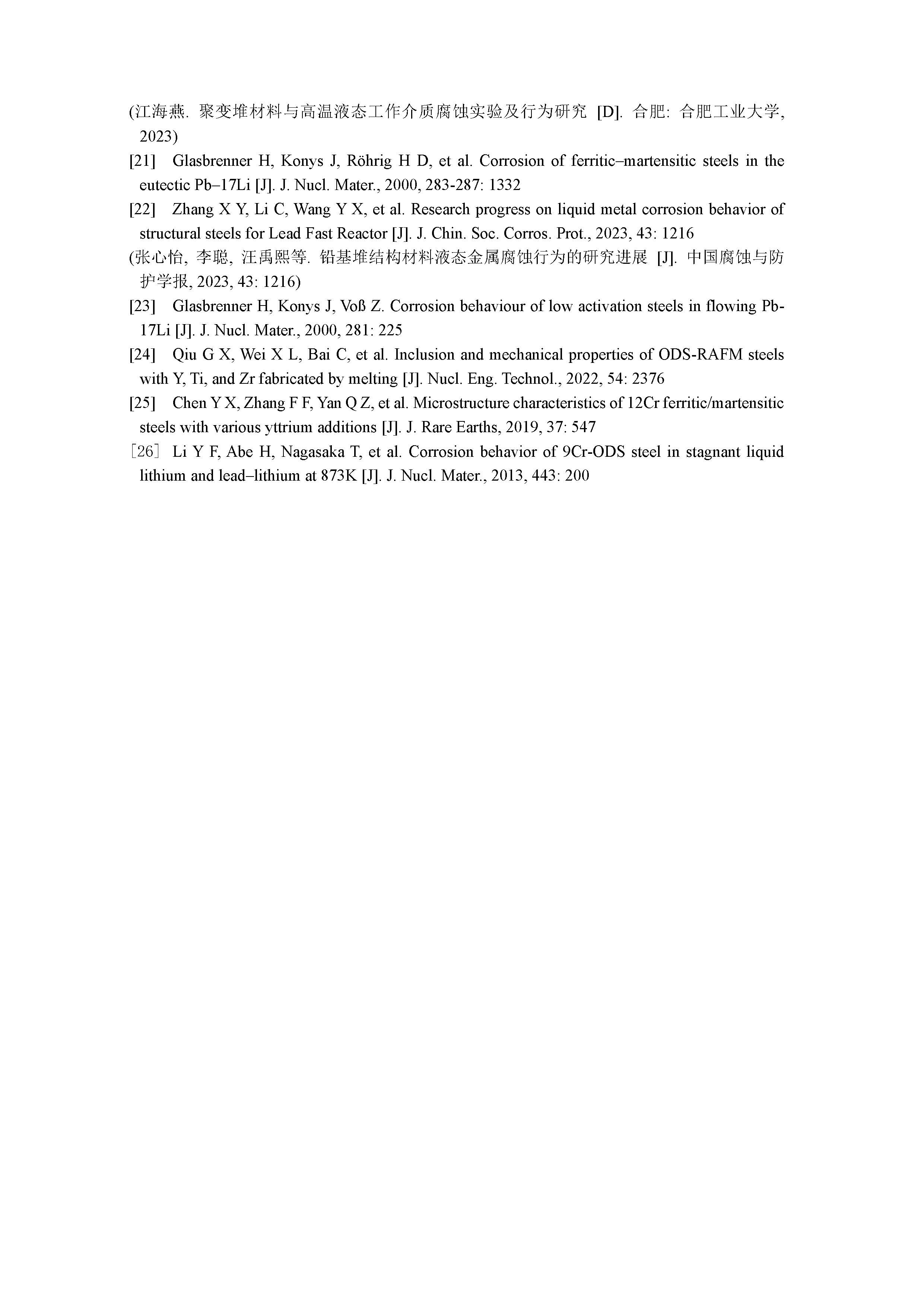 高温流动液态锂铅对氧化物弥散强化钢的长时间腐蚀行为研究