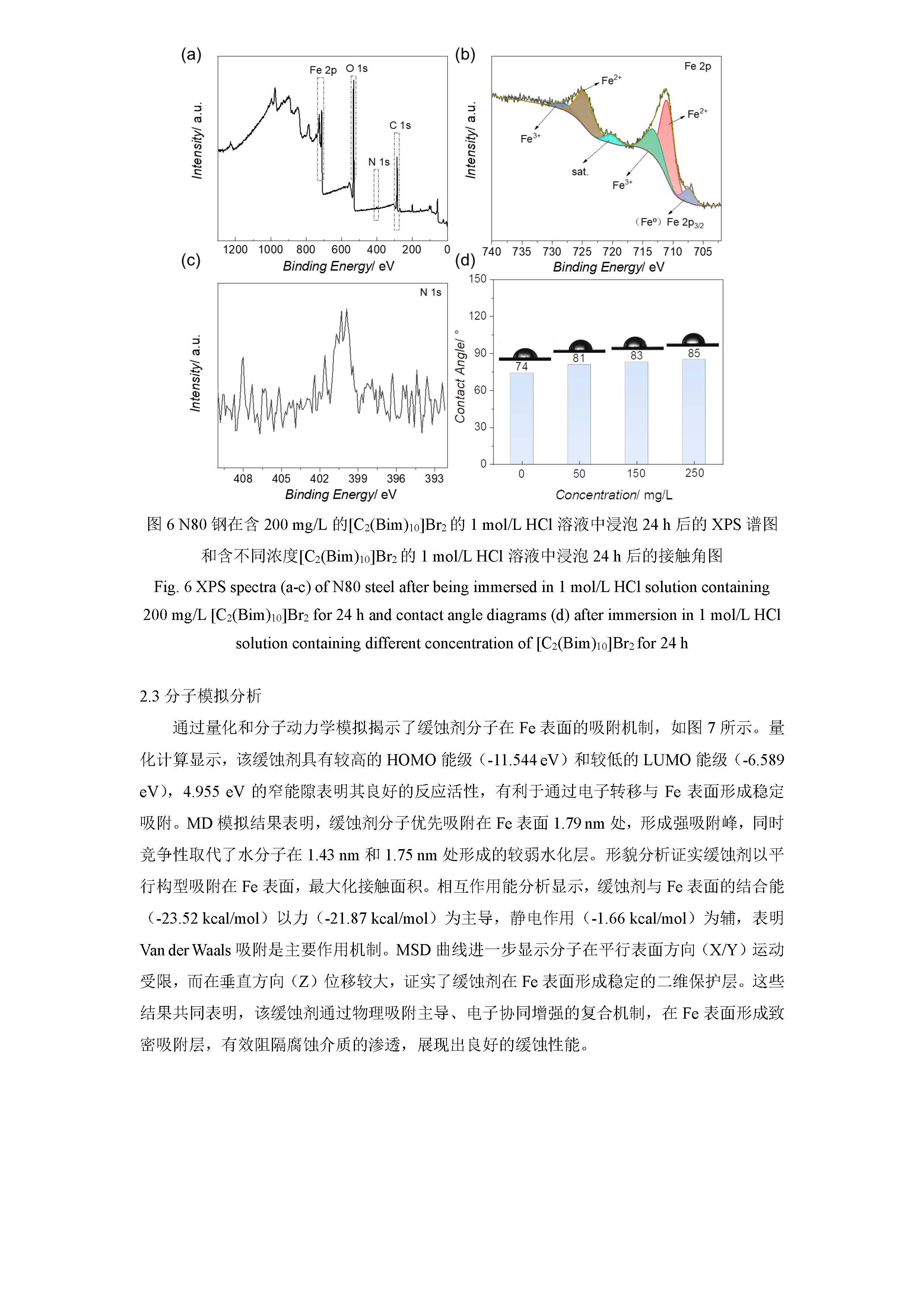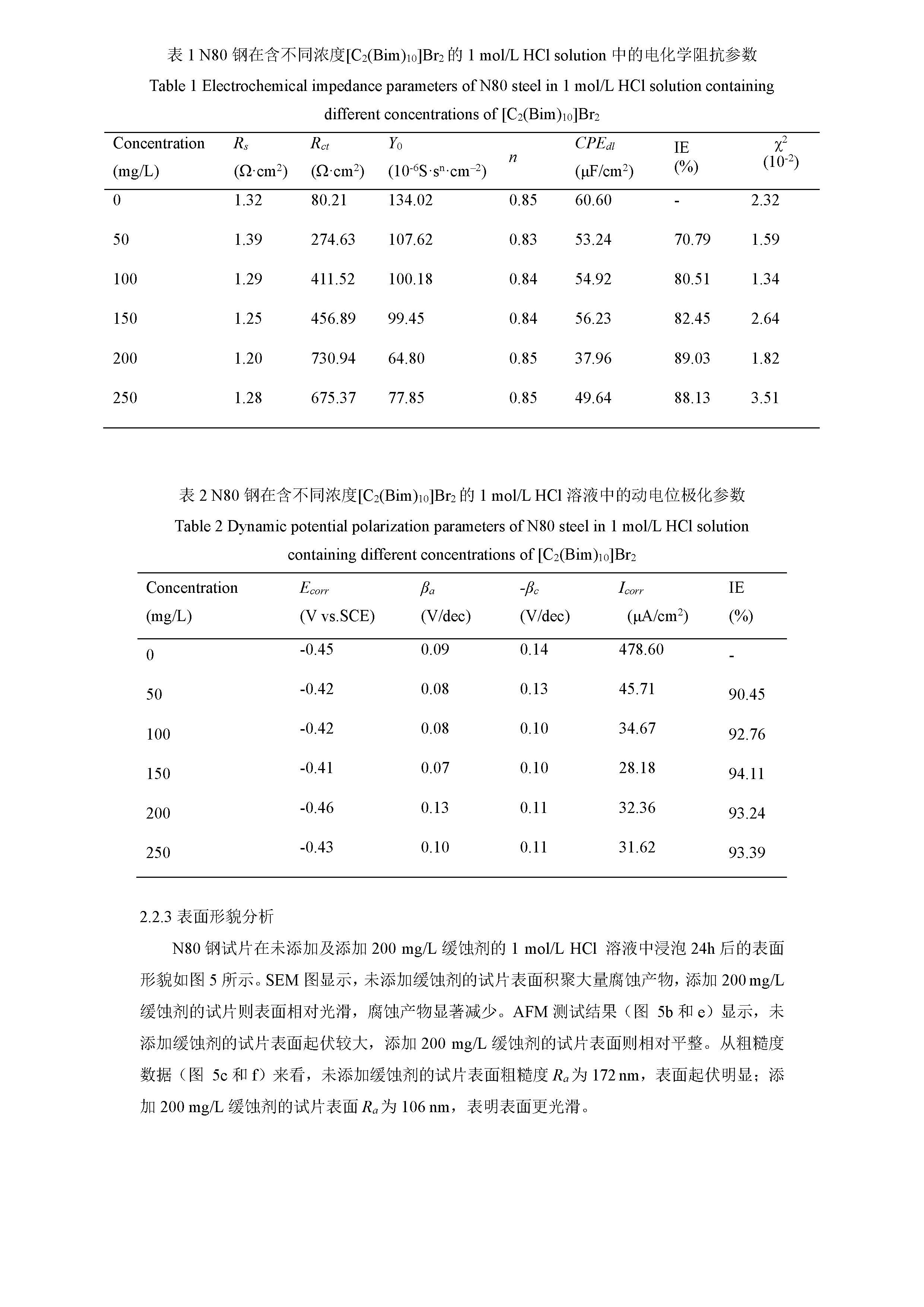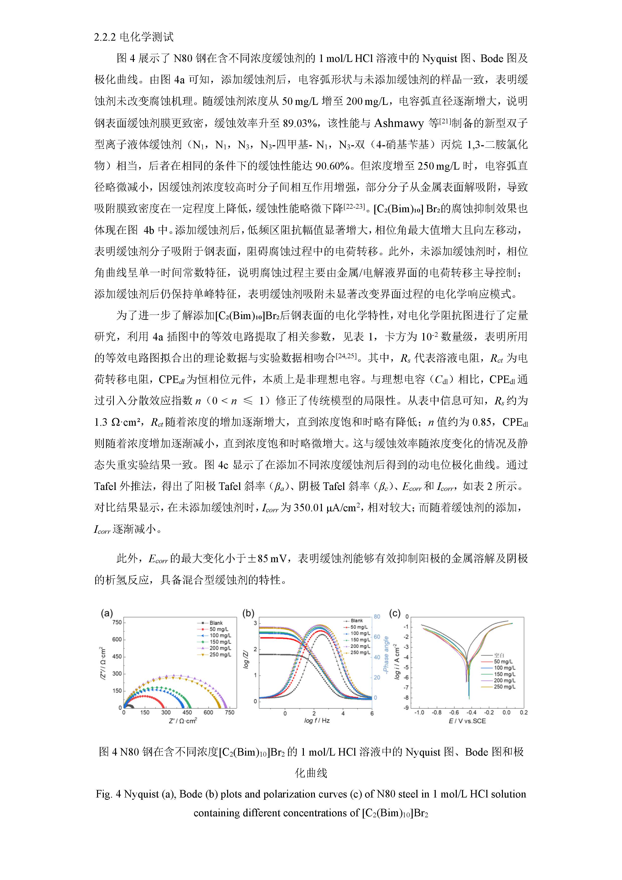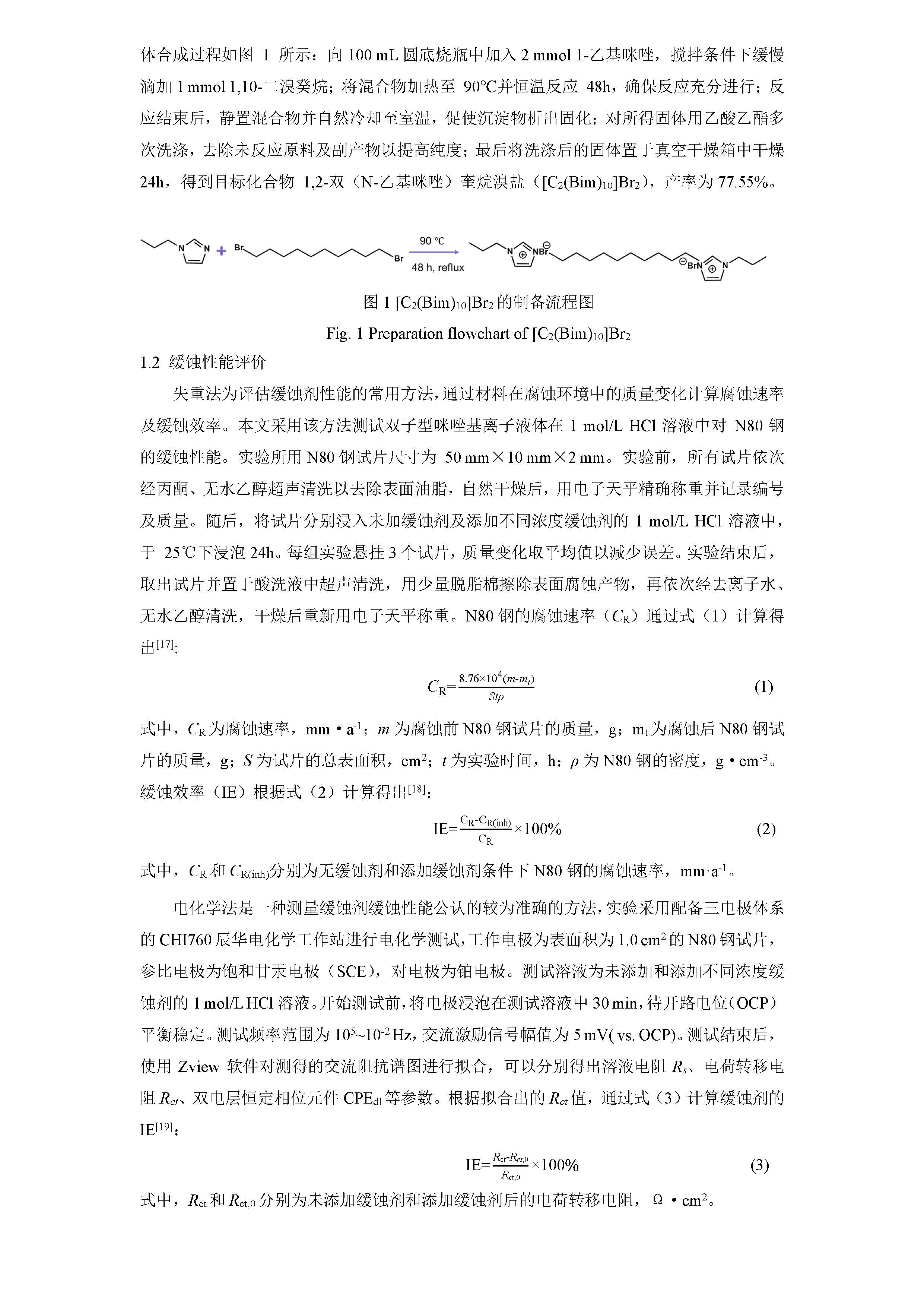 咪唑基双子型离子液体对 N80 钢在 1mol/L HCl 溶液中的缓蚀性能及机理研究