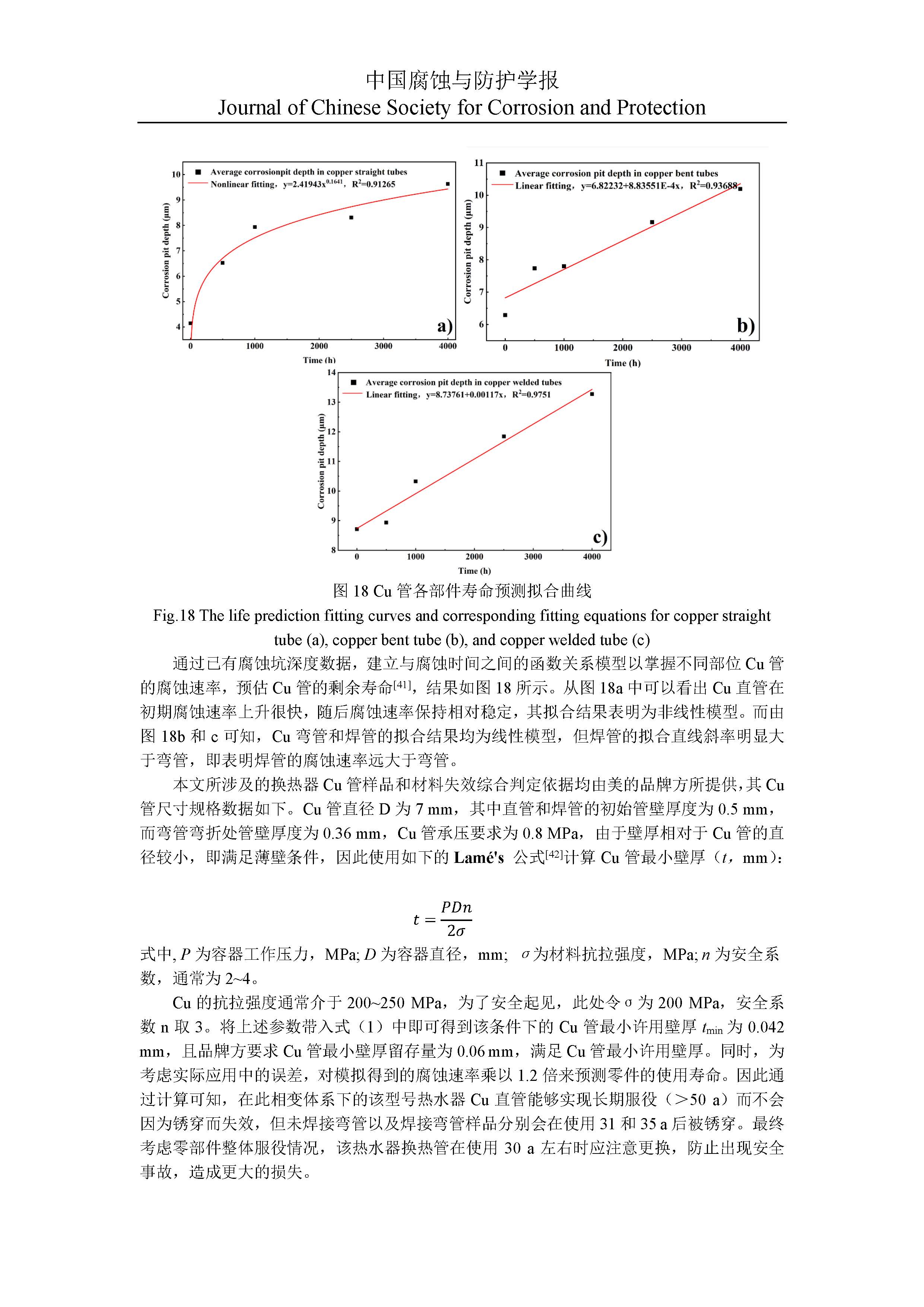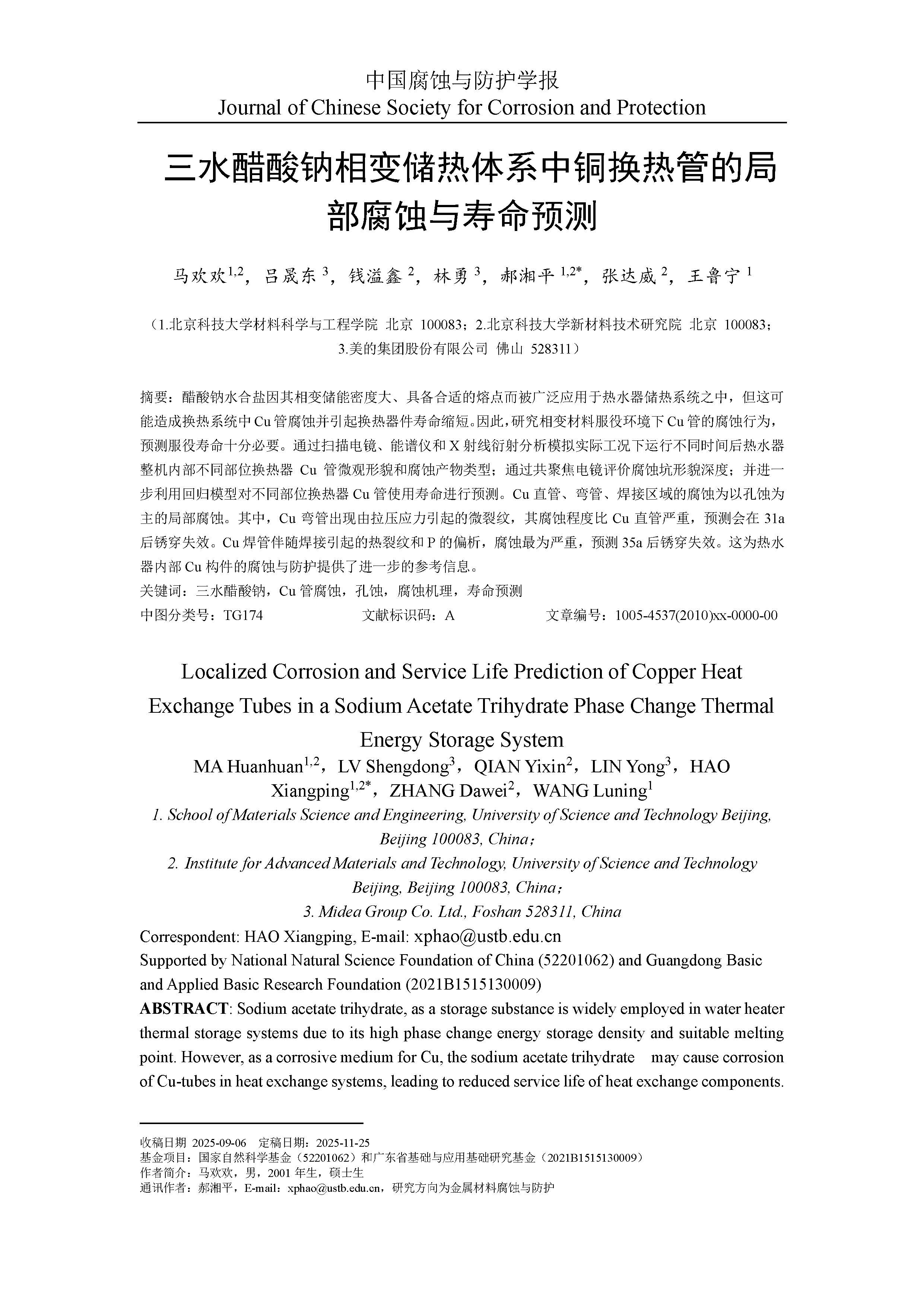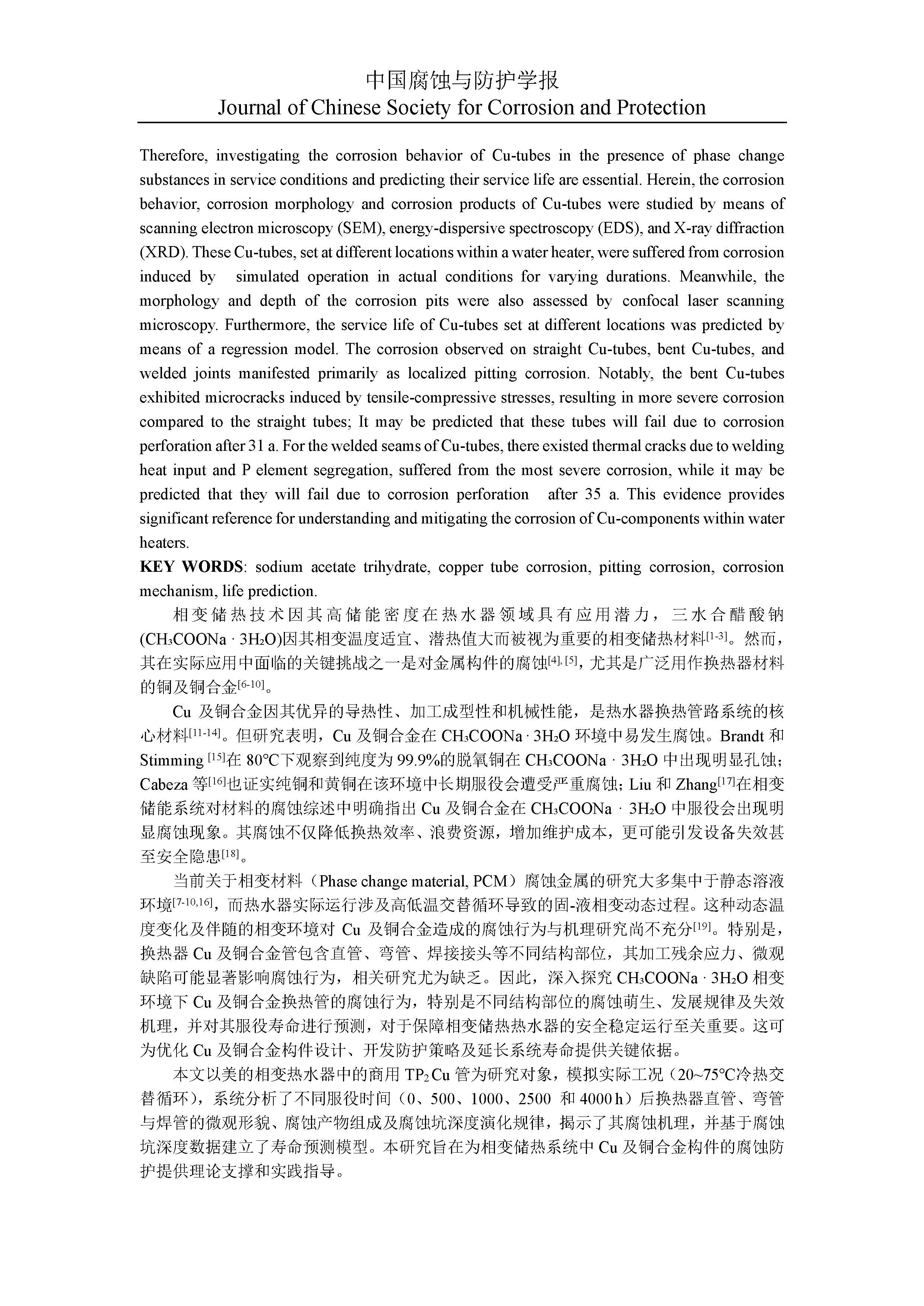 三水醋酸钠相变储热体系中铜换热管的局部腐蚀情况与寿命预测