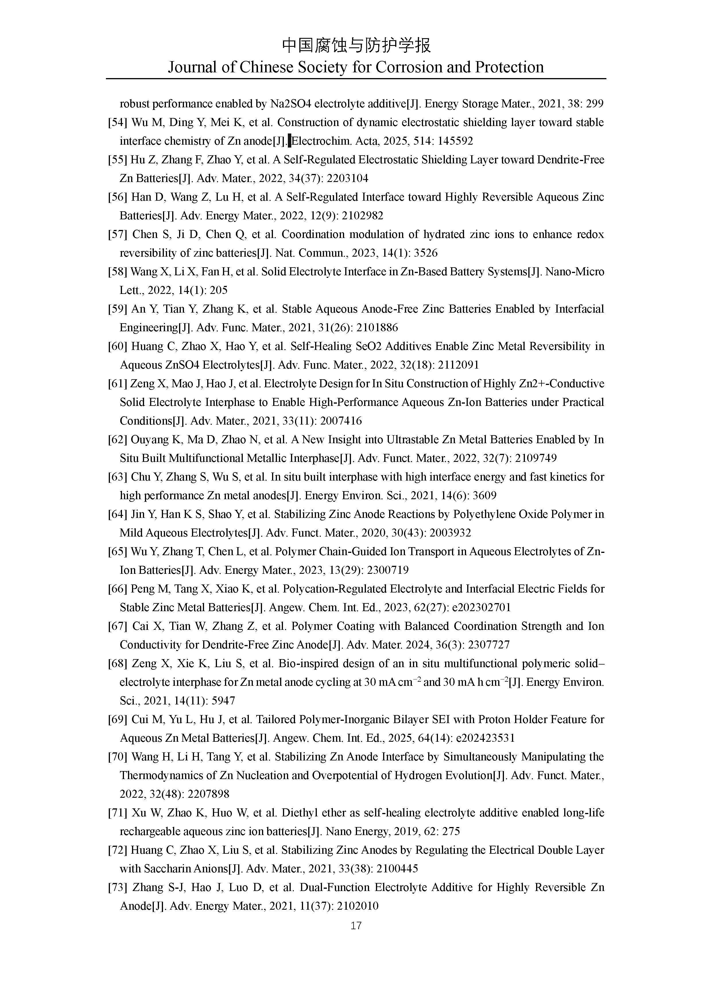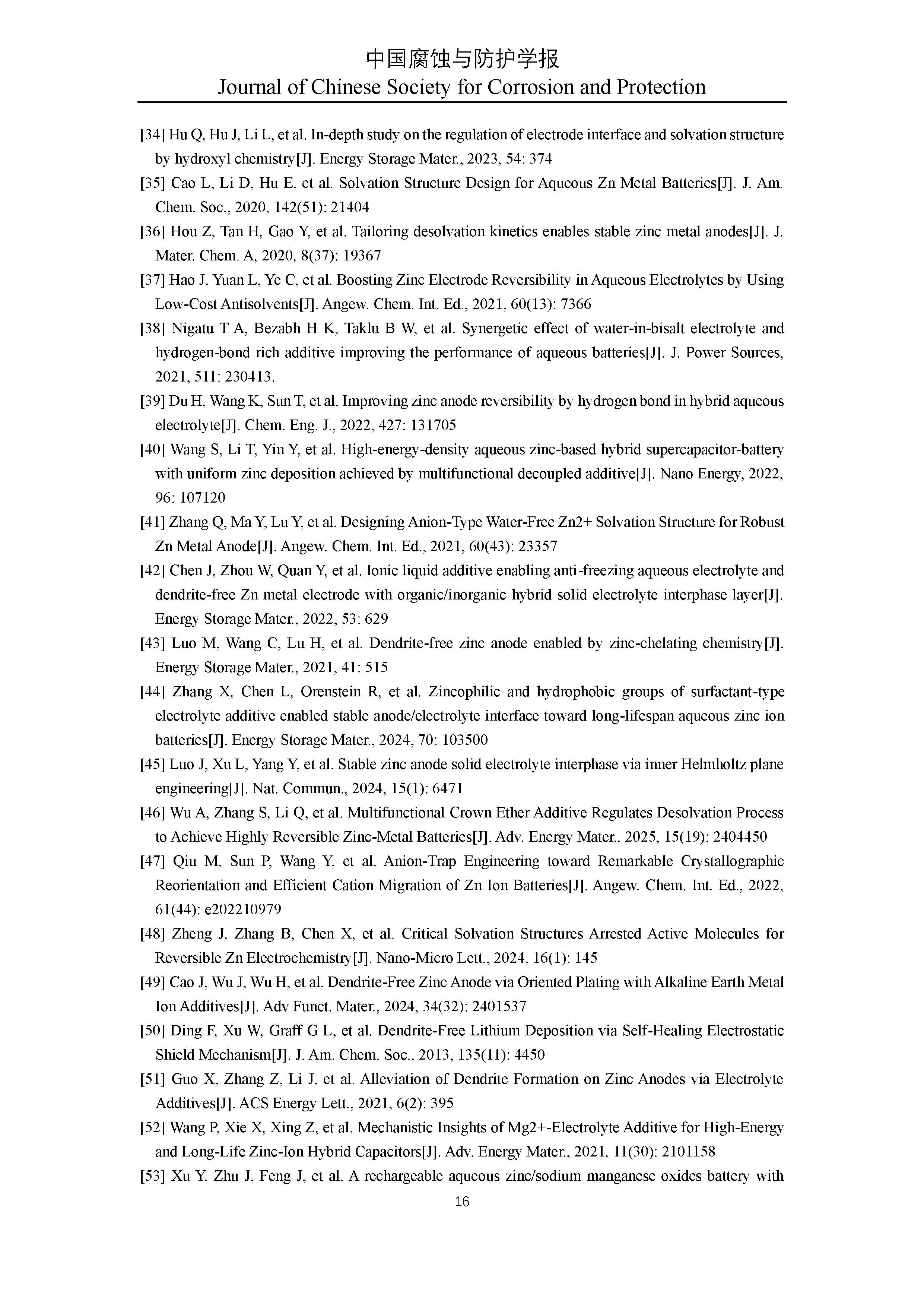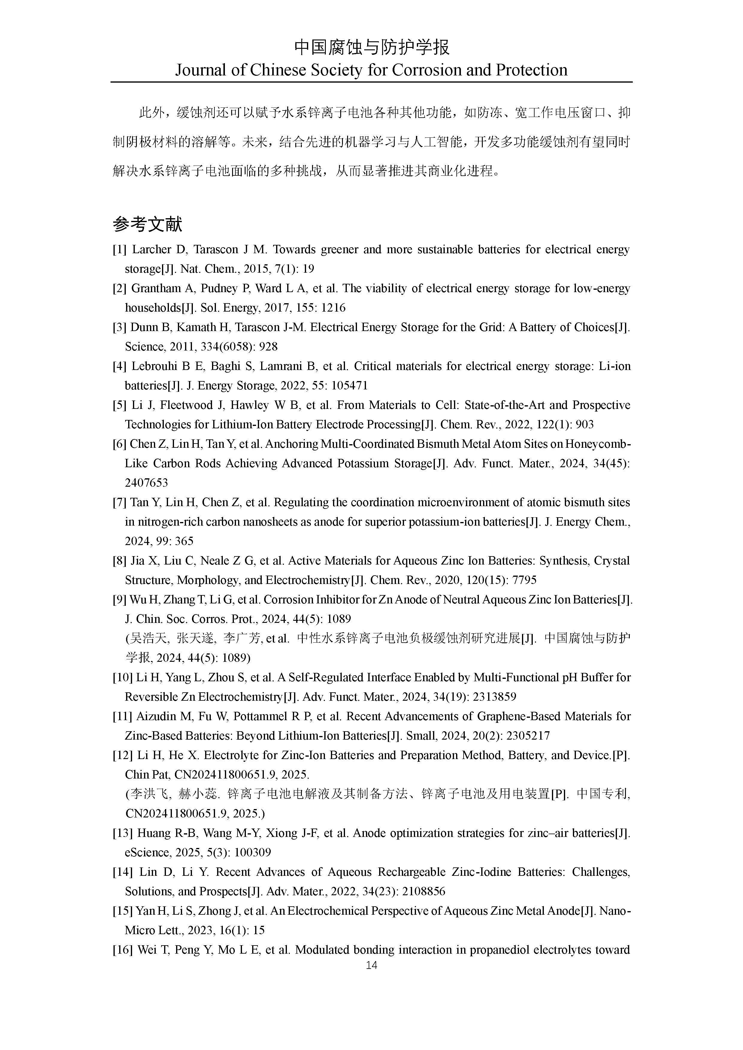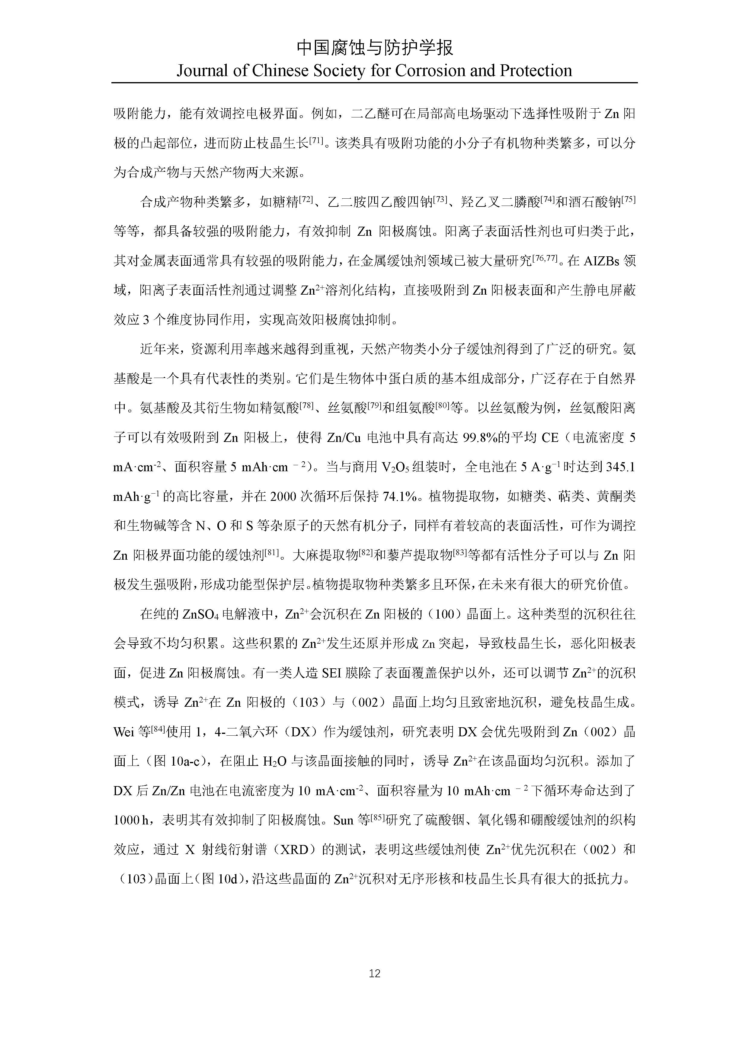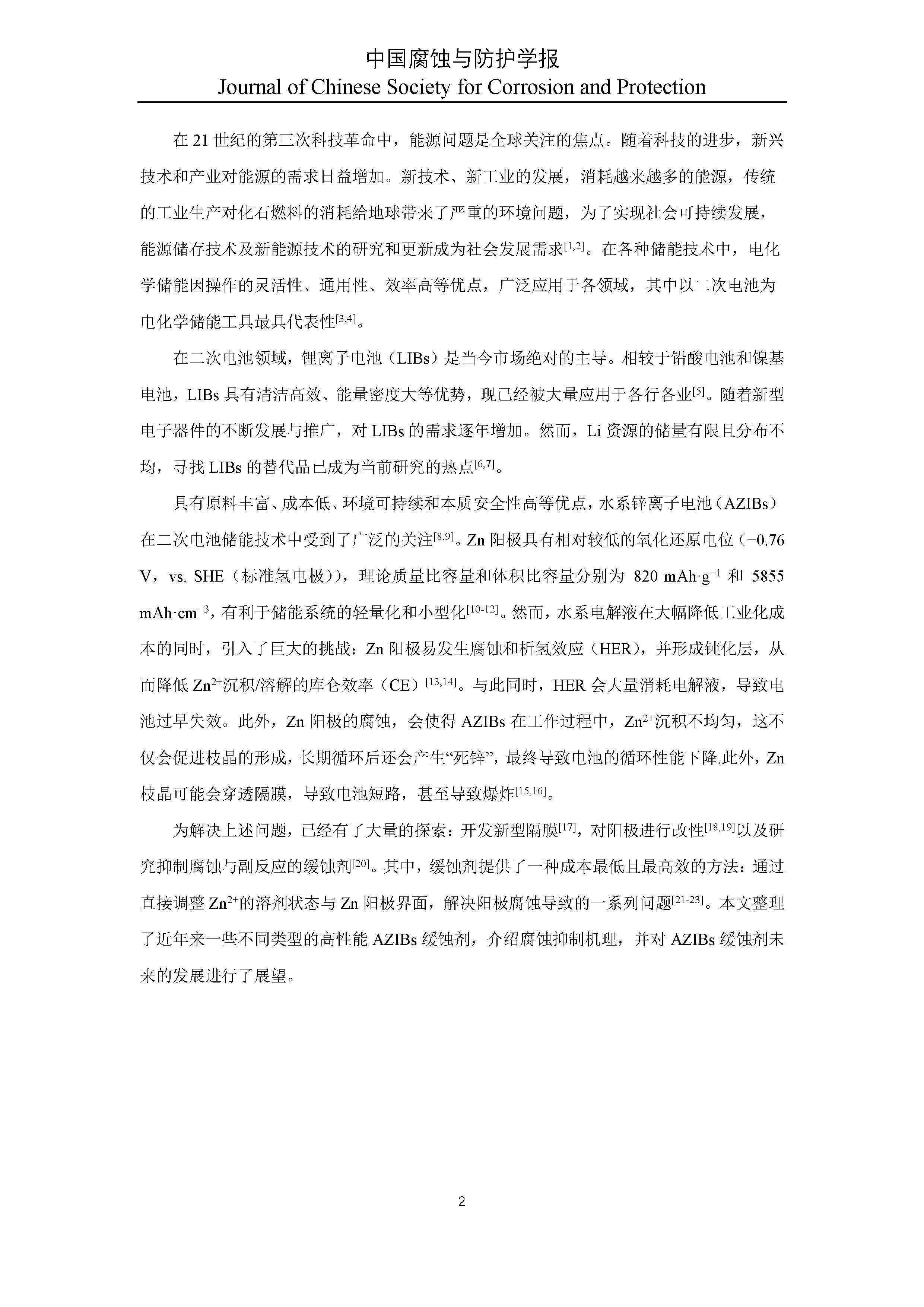 水系锌离子电池功能性缓蚀剂研究进展