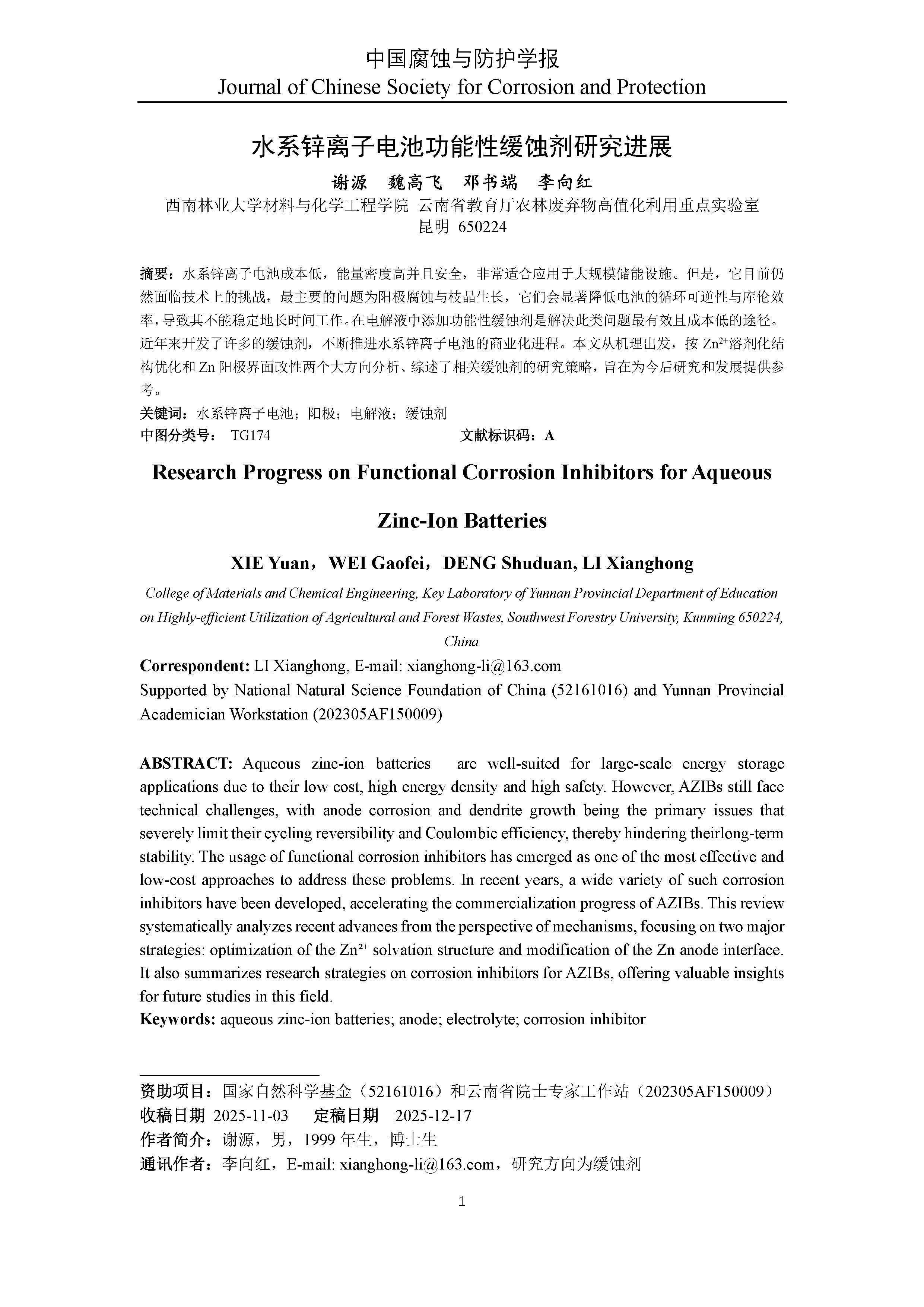 来源:中国腐蚀与防护学报