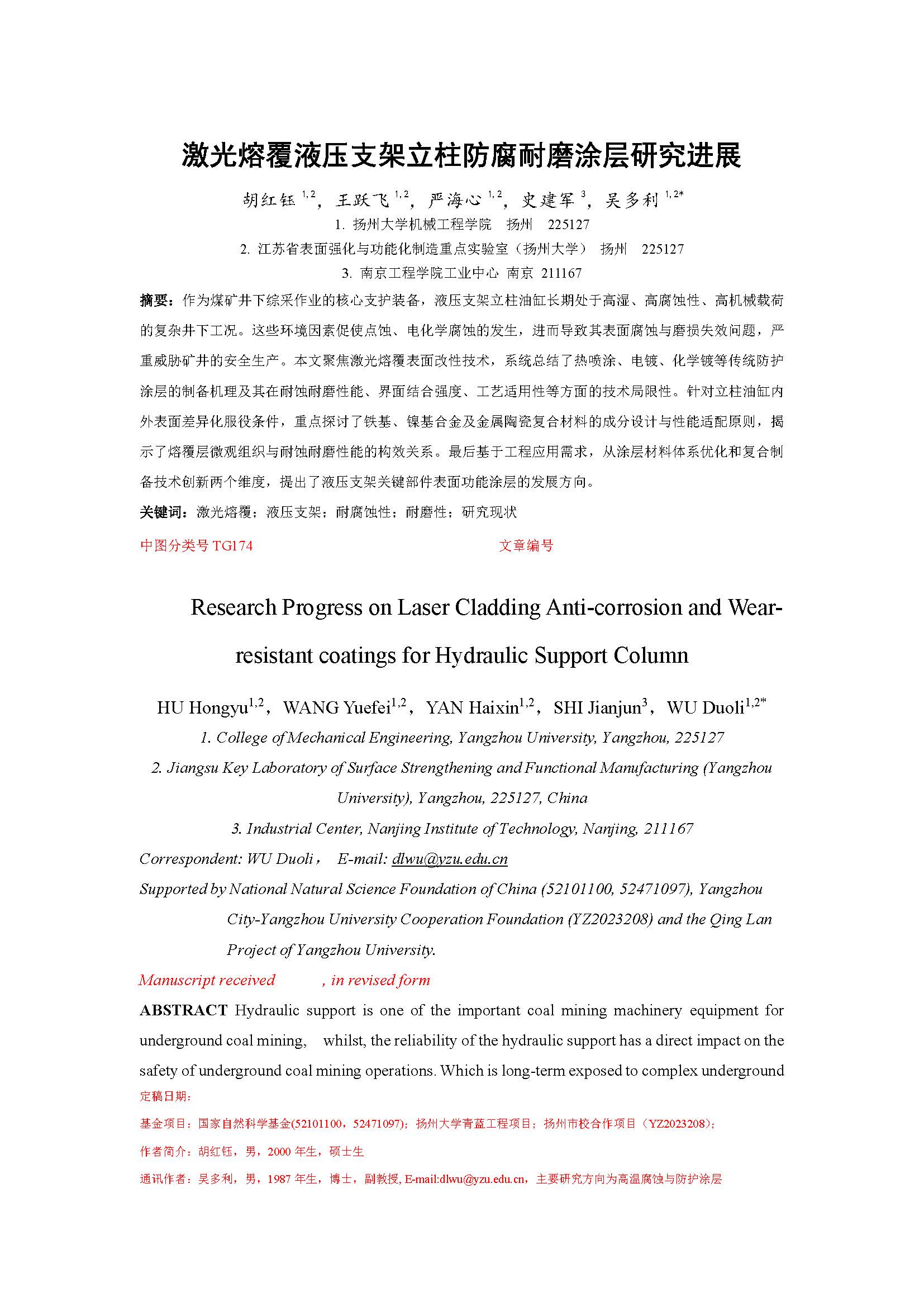 激光熔覆液压支架立柱防腐耐磨涂层研究进展