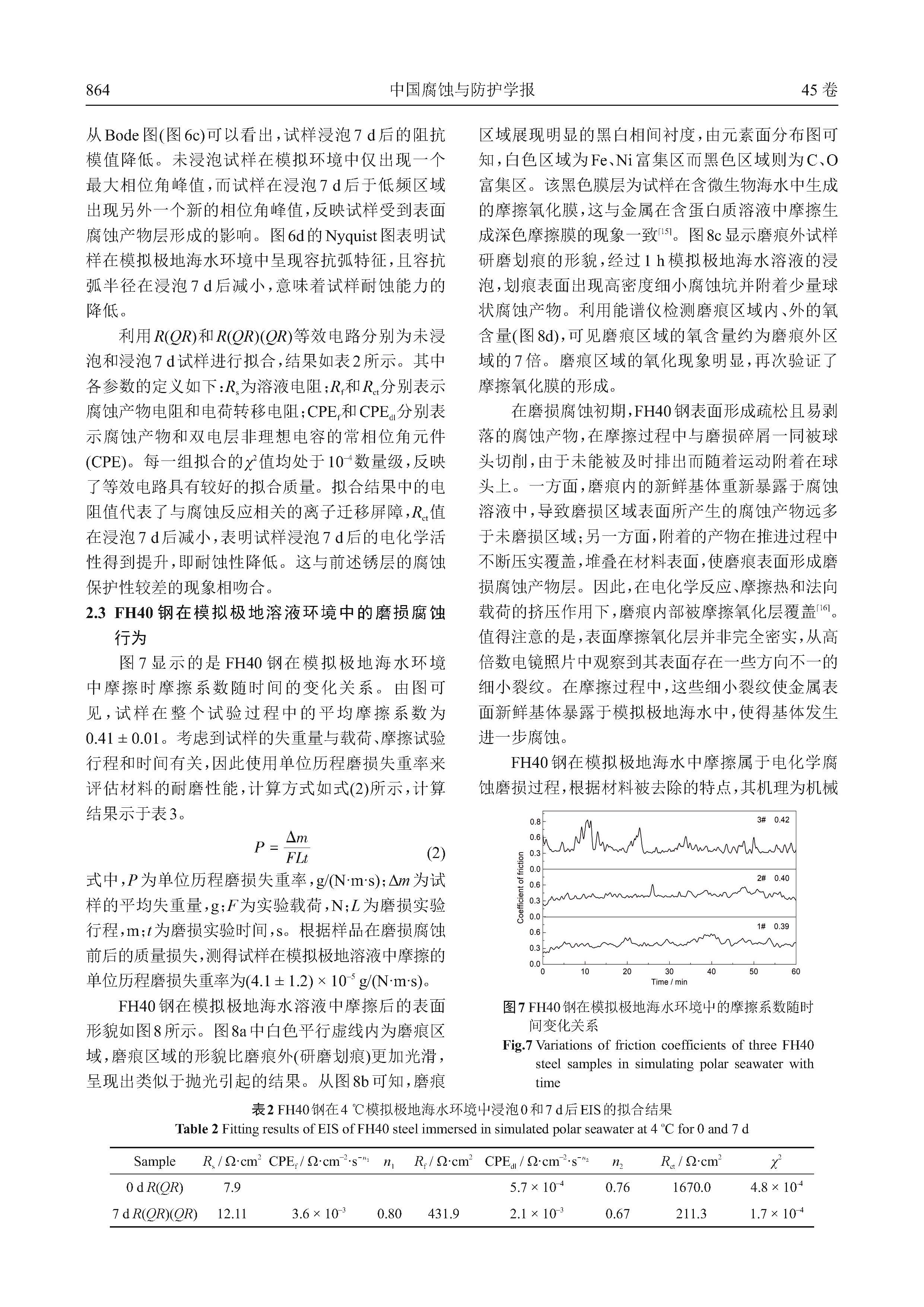 FH40船用钢在模拟极地海水环境中的腐蚀与磨蚀行为