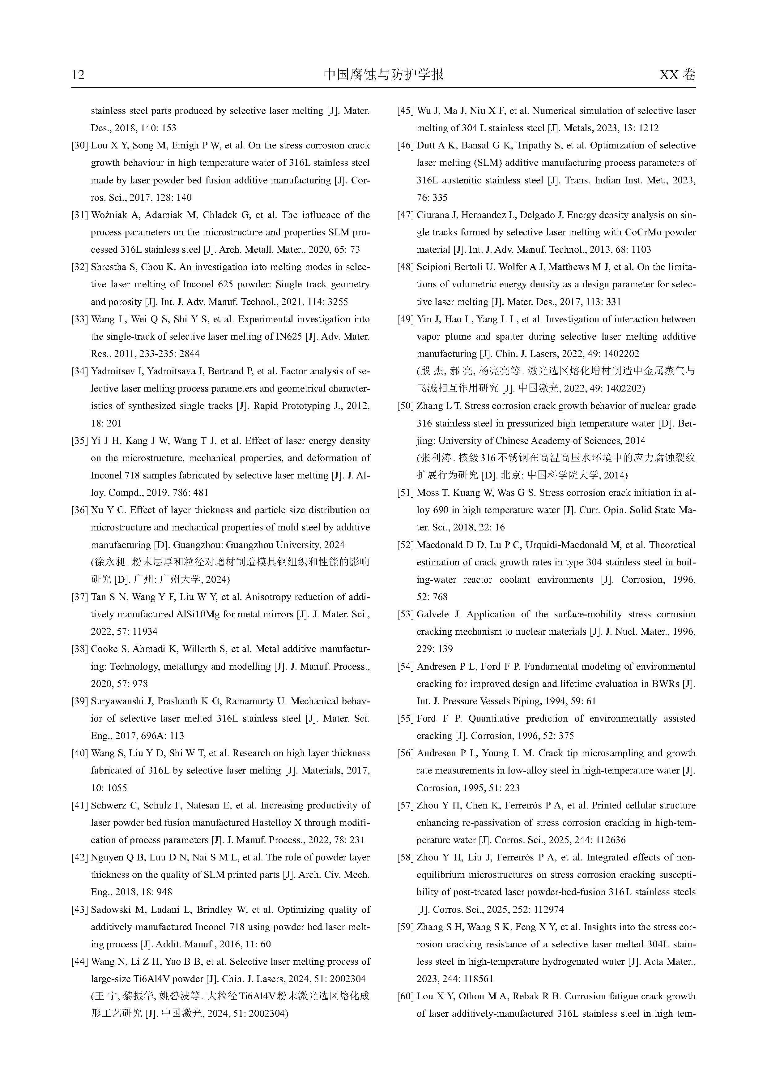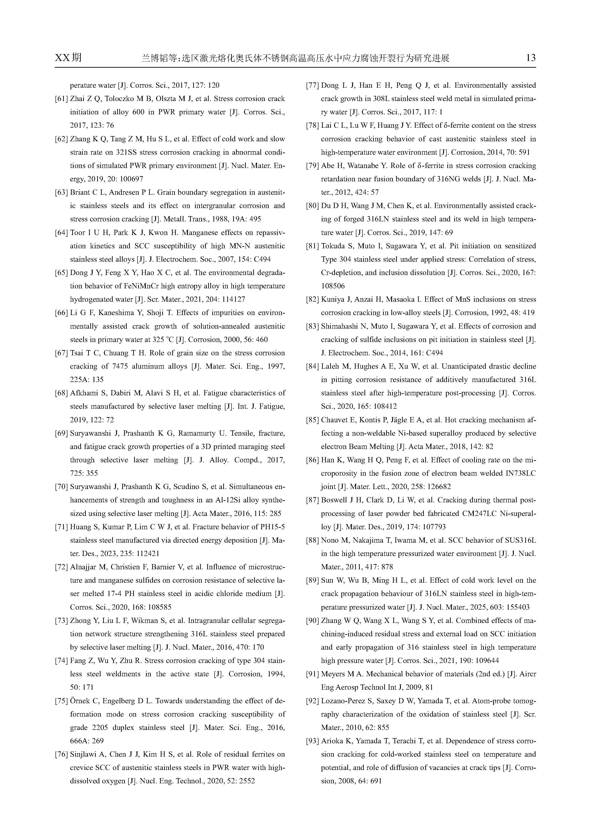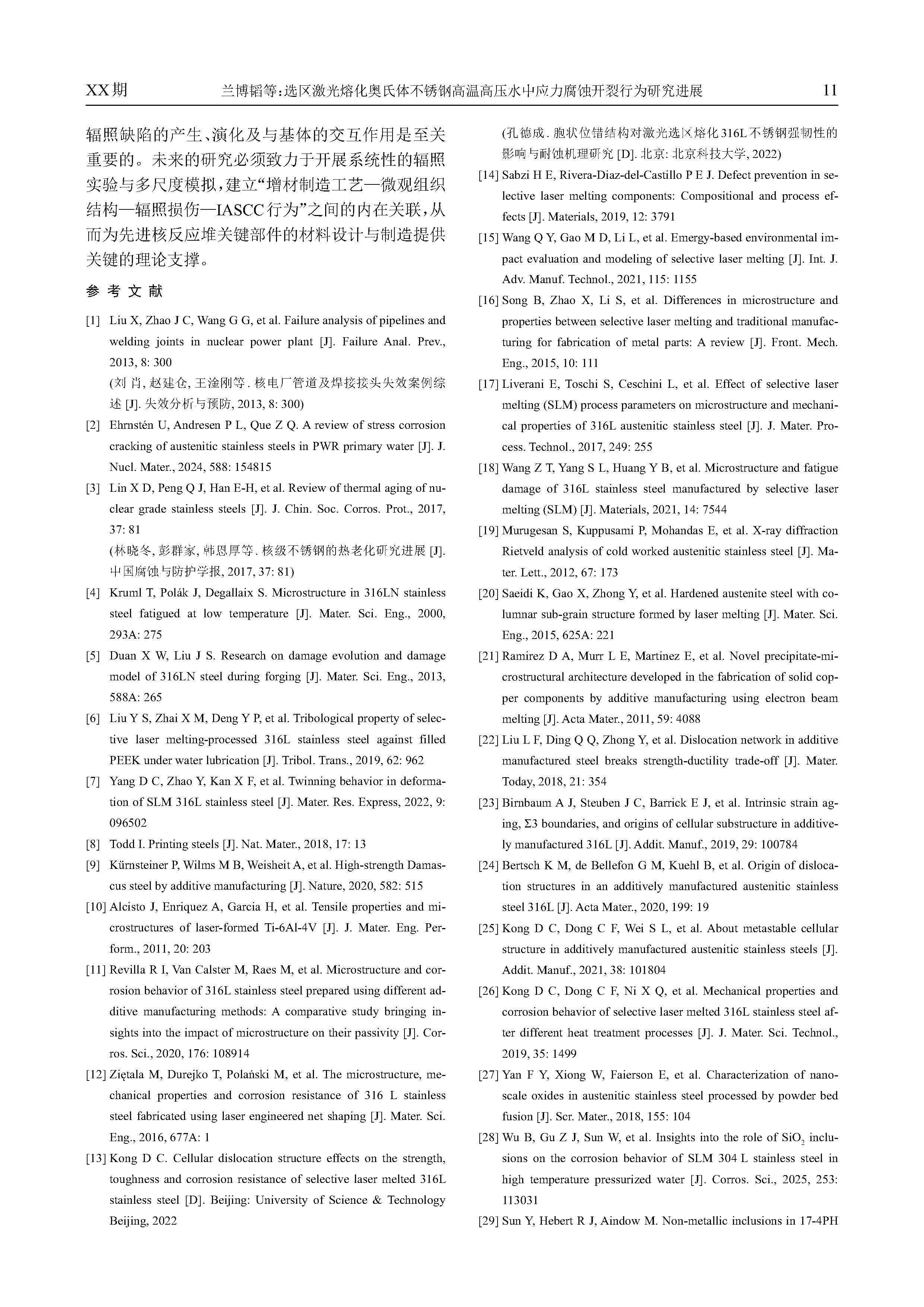 选区激光熔化奥氏体不锈钢高温高压水
