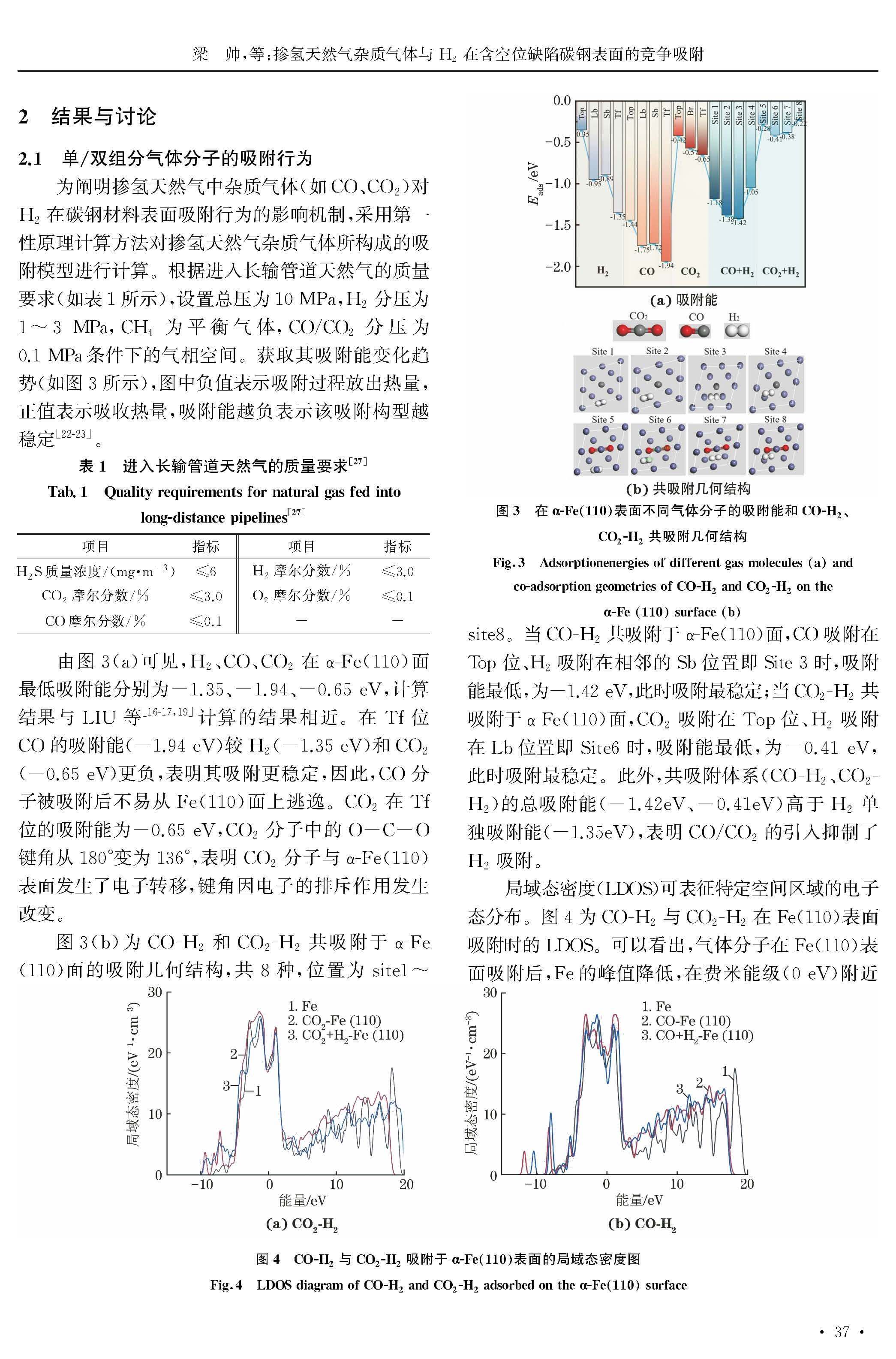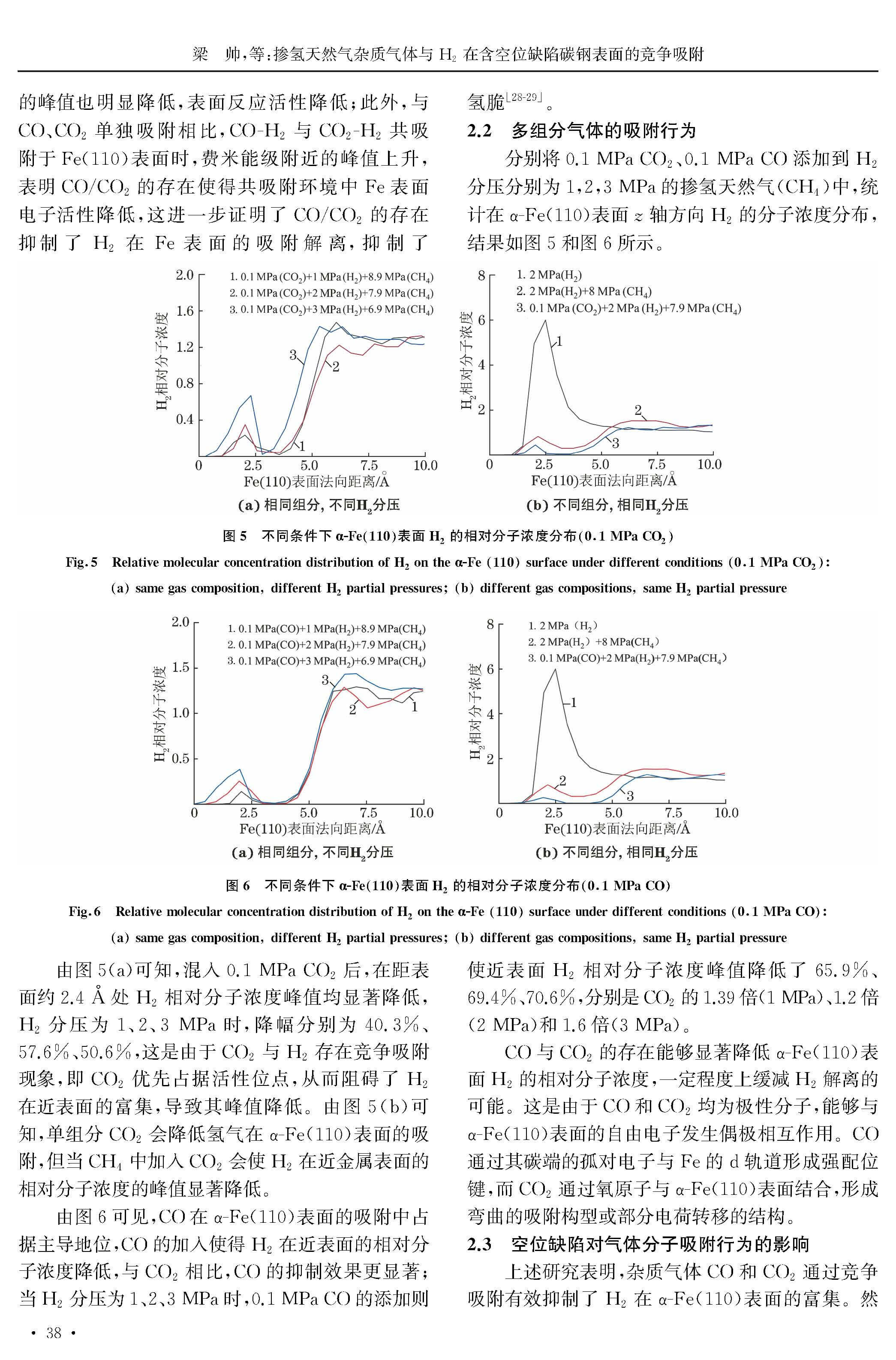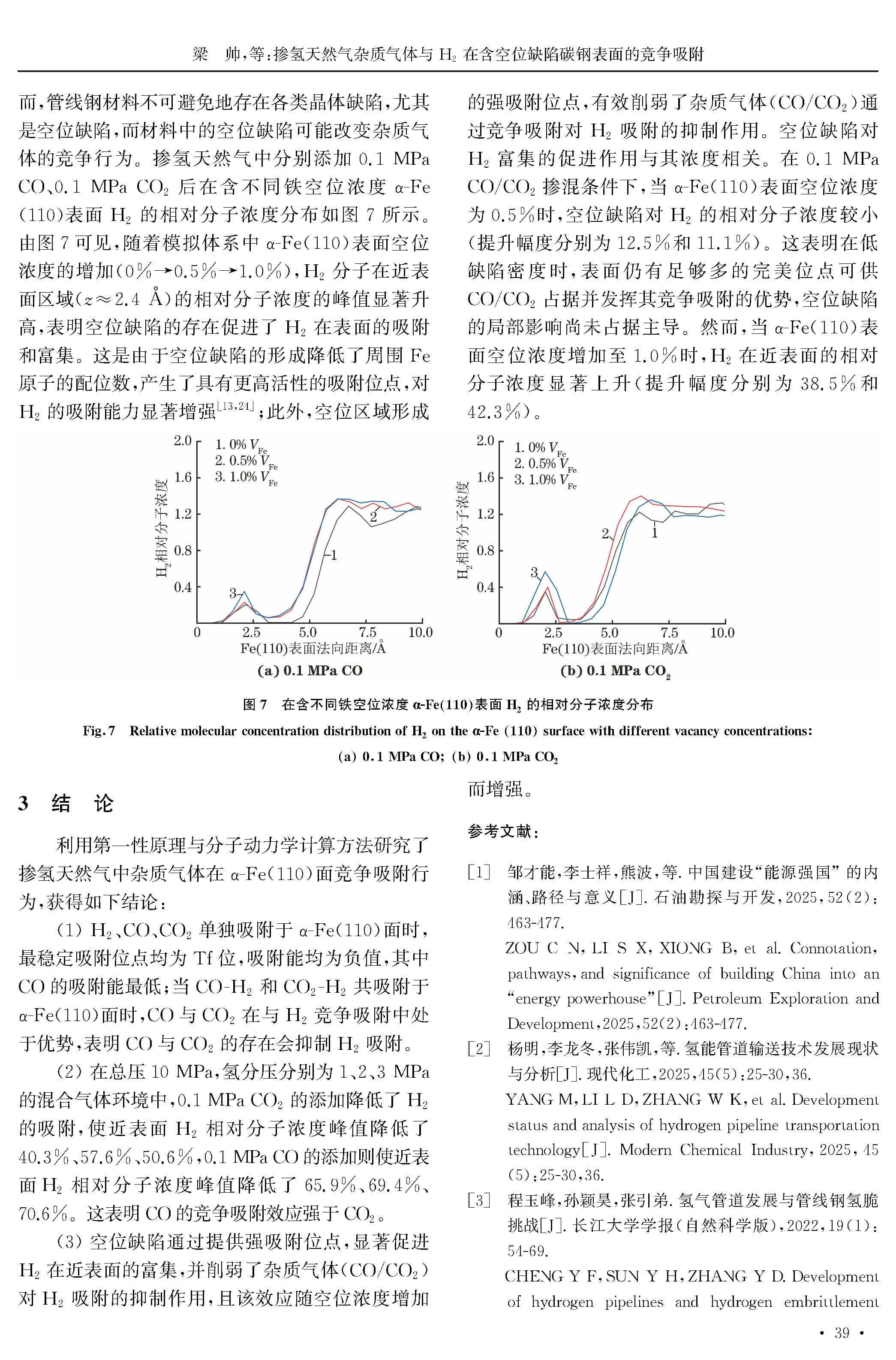 掺氢天然气杂质气体与 H2 在含空位缺陷碳钢表面的竞争吸附