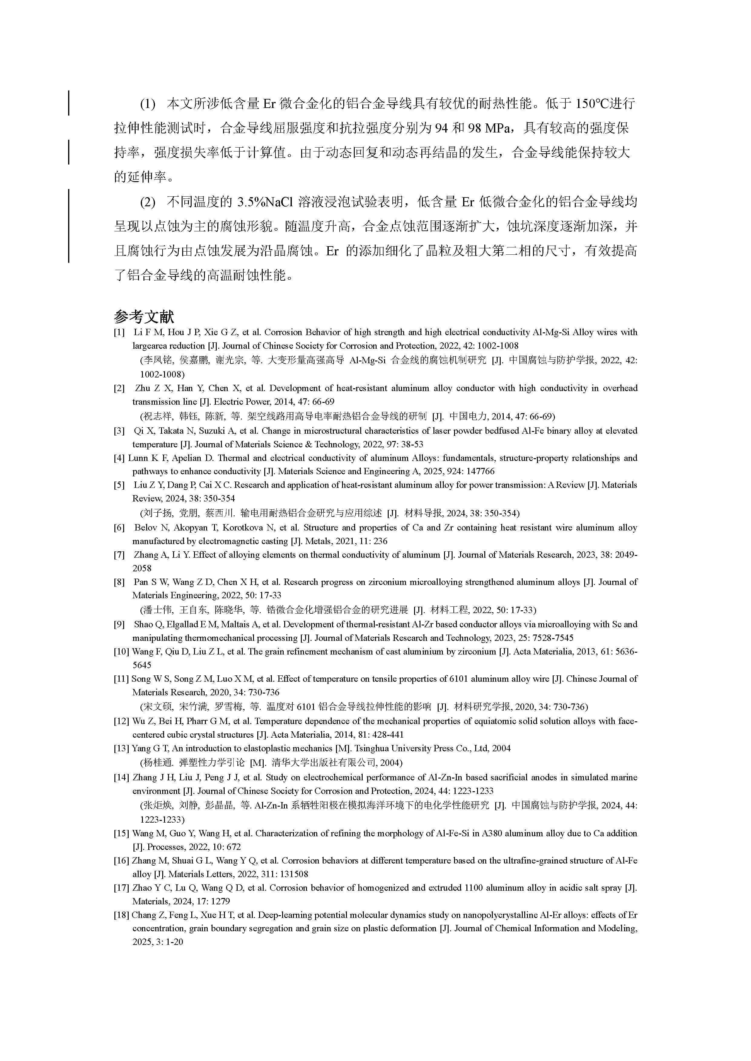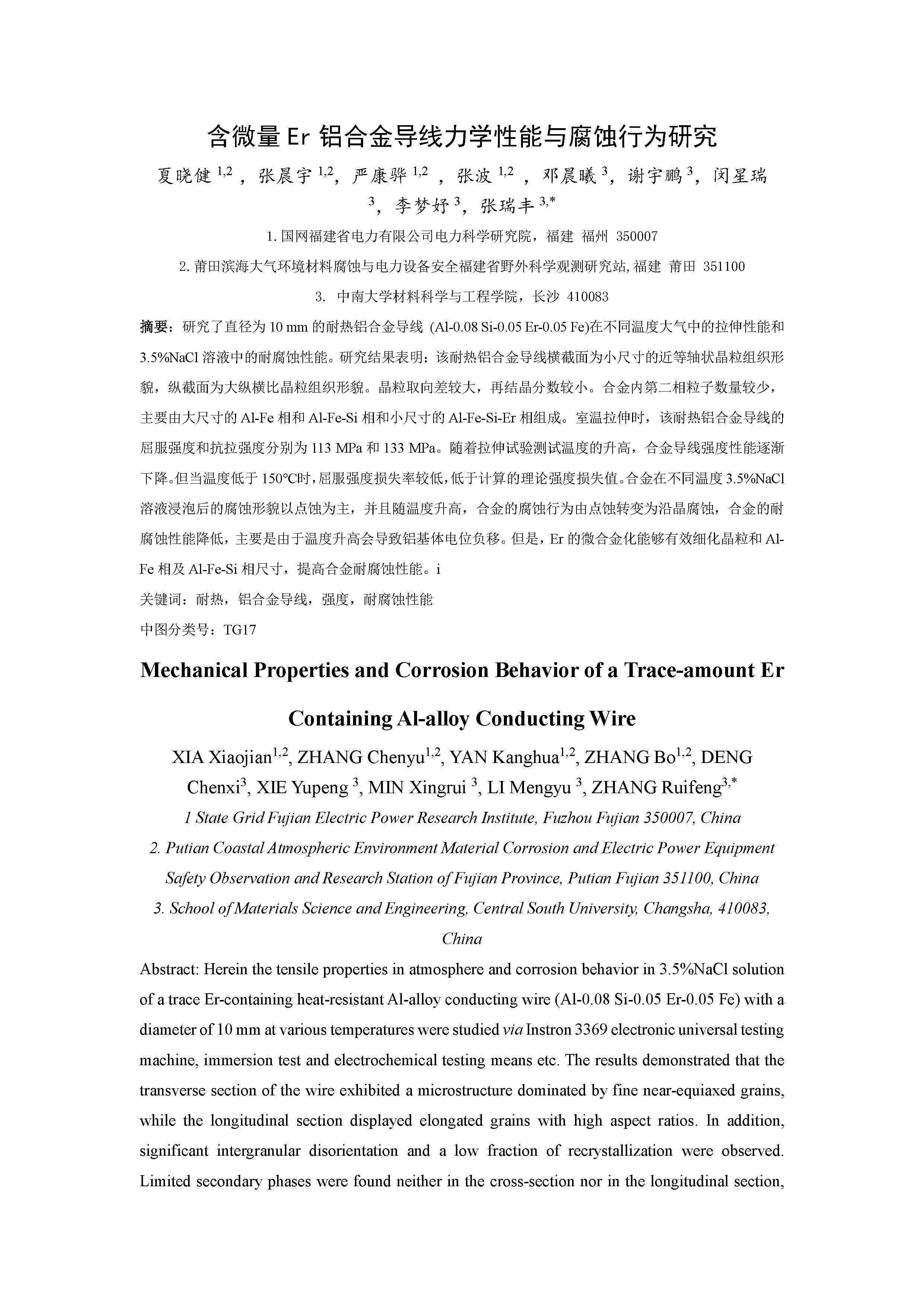 含微量 Er 铝合金导线力学性能与腐蚀行为研究