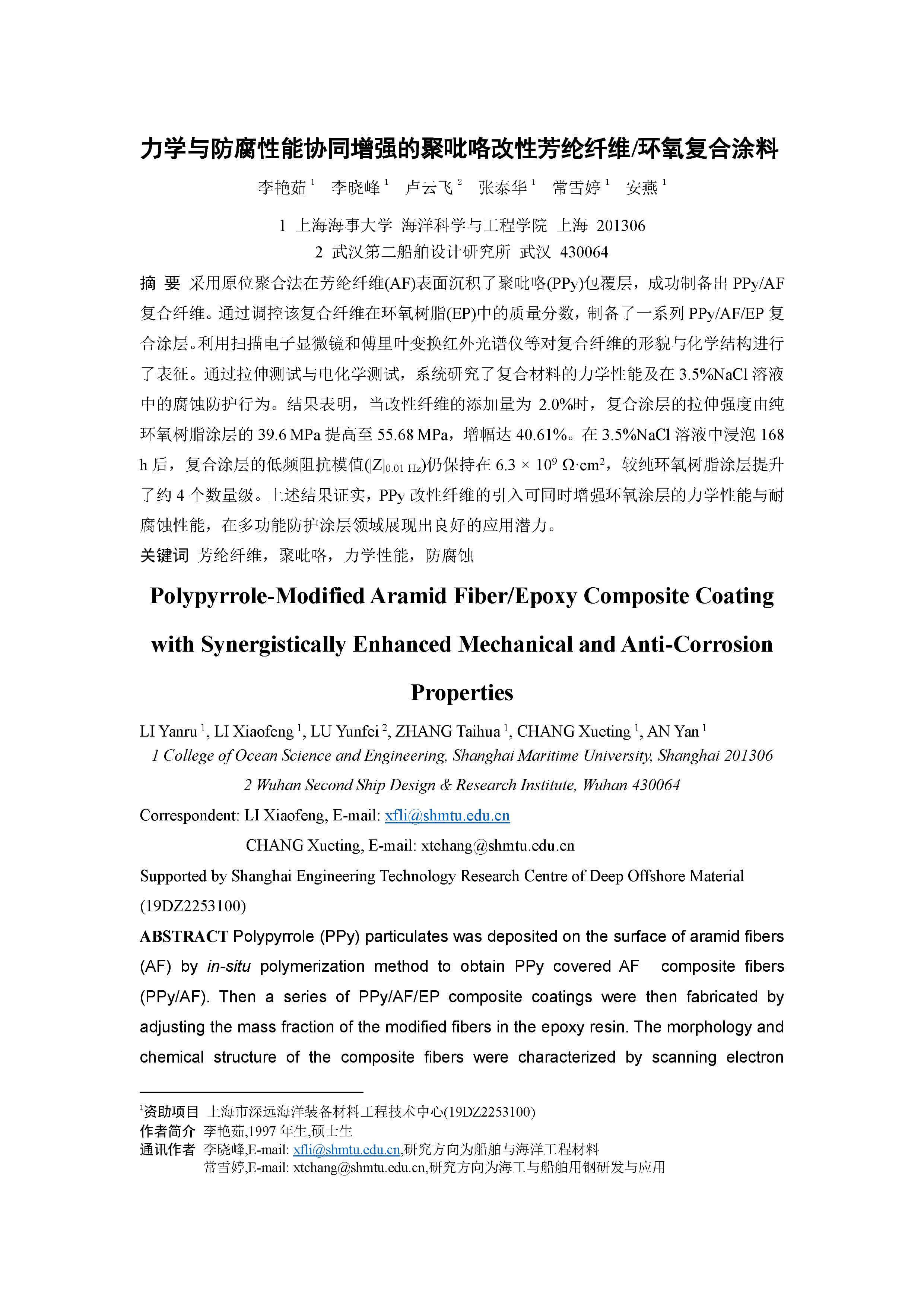 力学与防腐性能协同增强的聚吡咯改性芳纶纤维/环氧复合涂料
