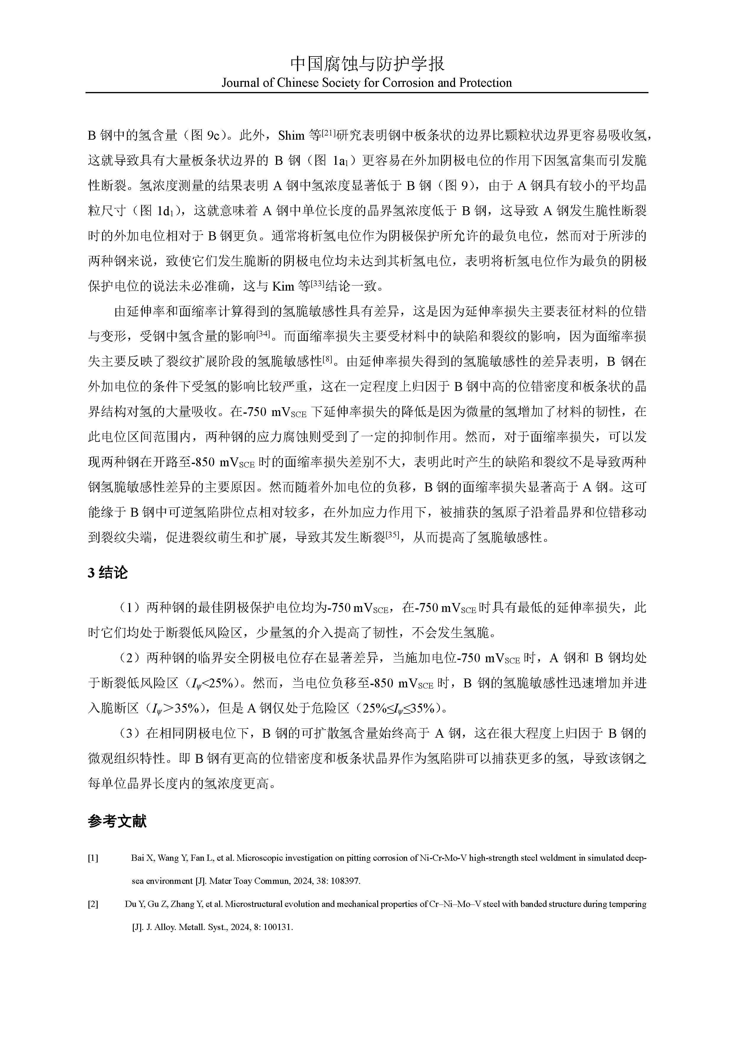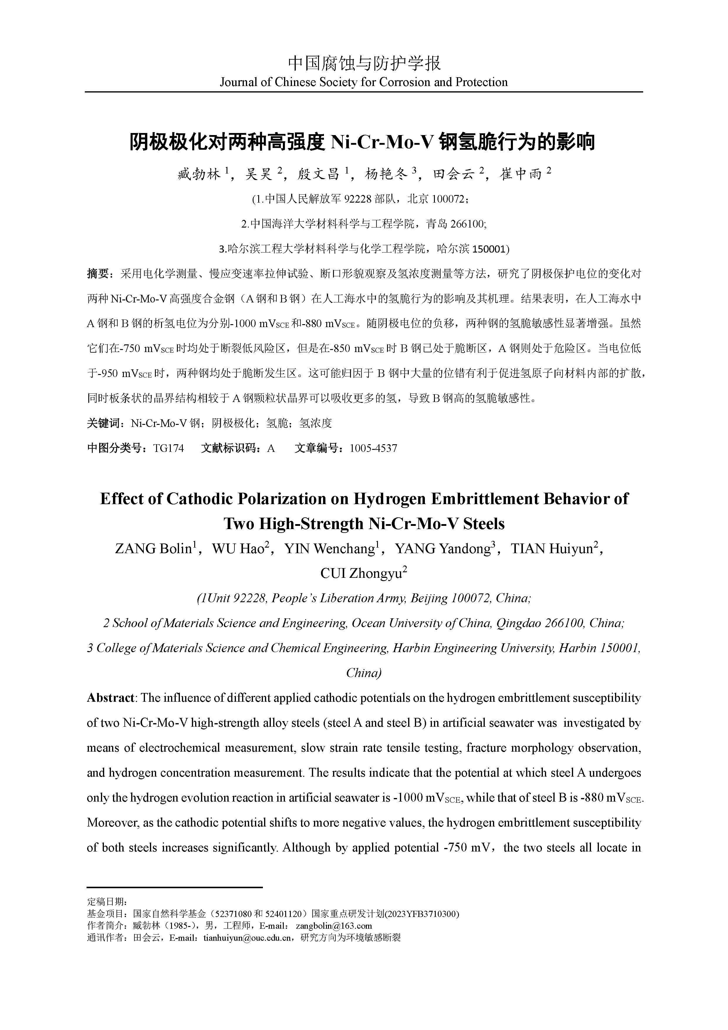 阴极极化对两种高强度 Ni-Cr-Mo-V 钢氢脆行为的影响