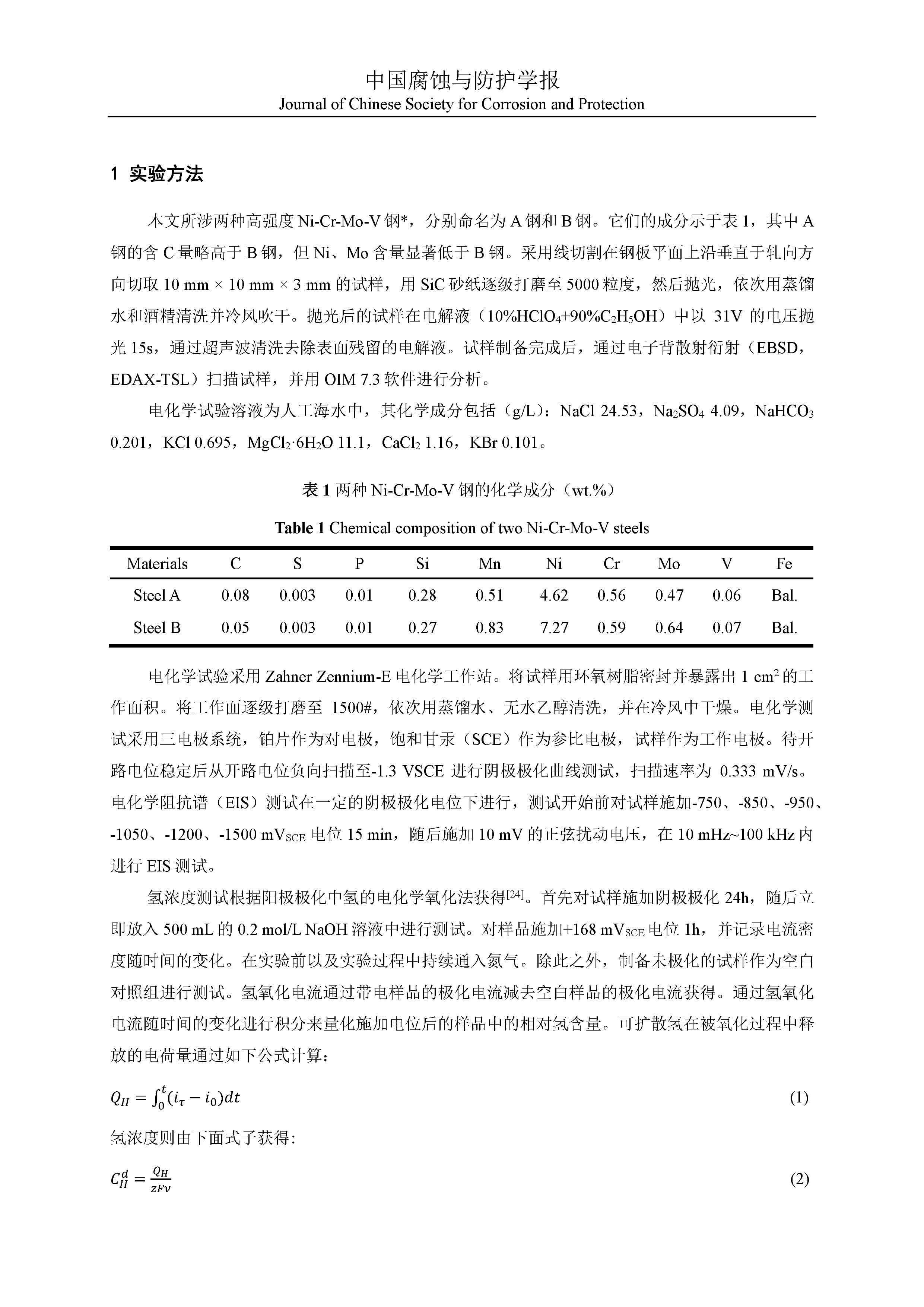 来源:中国腐蚀与防护学报