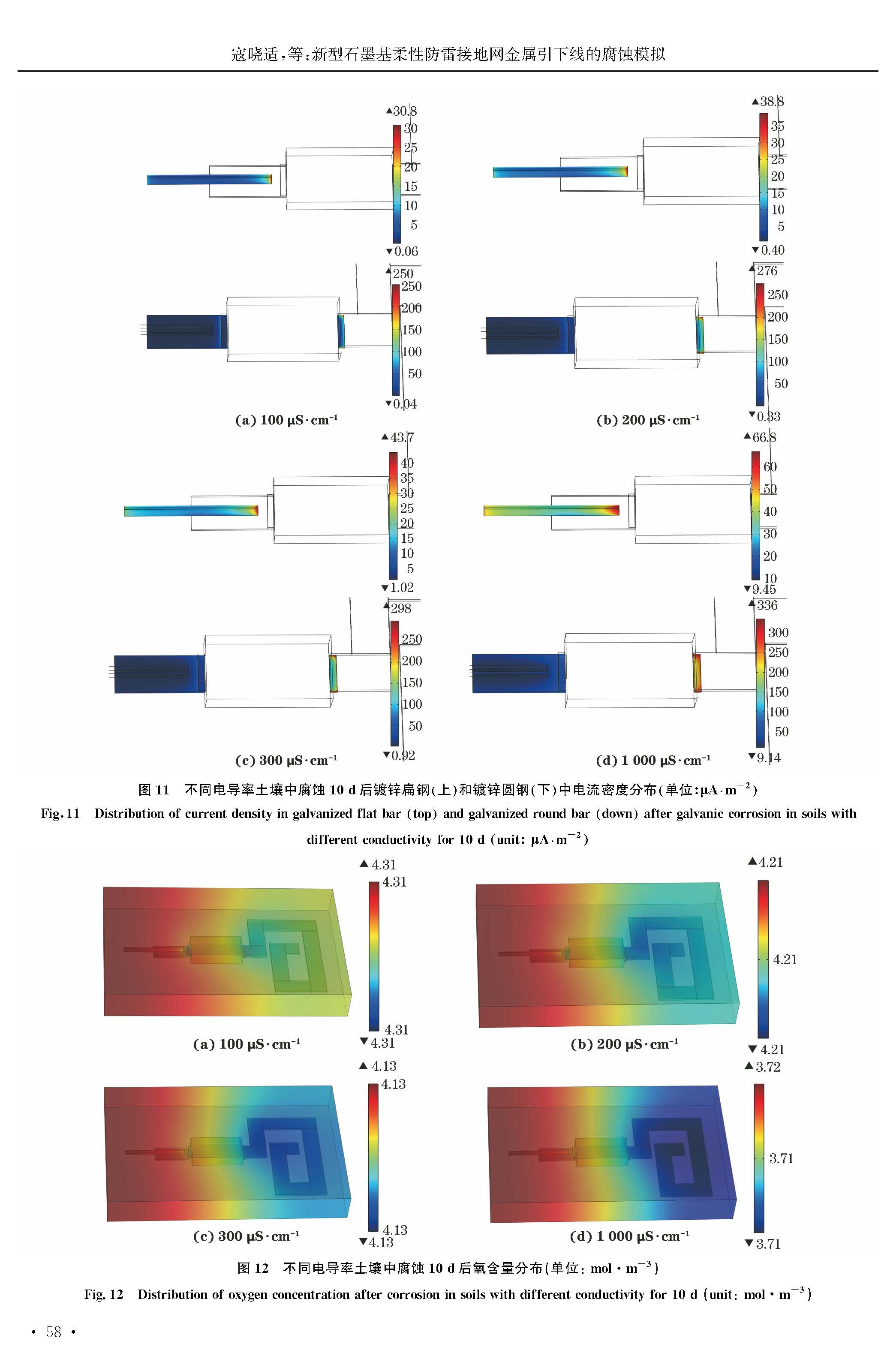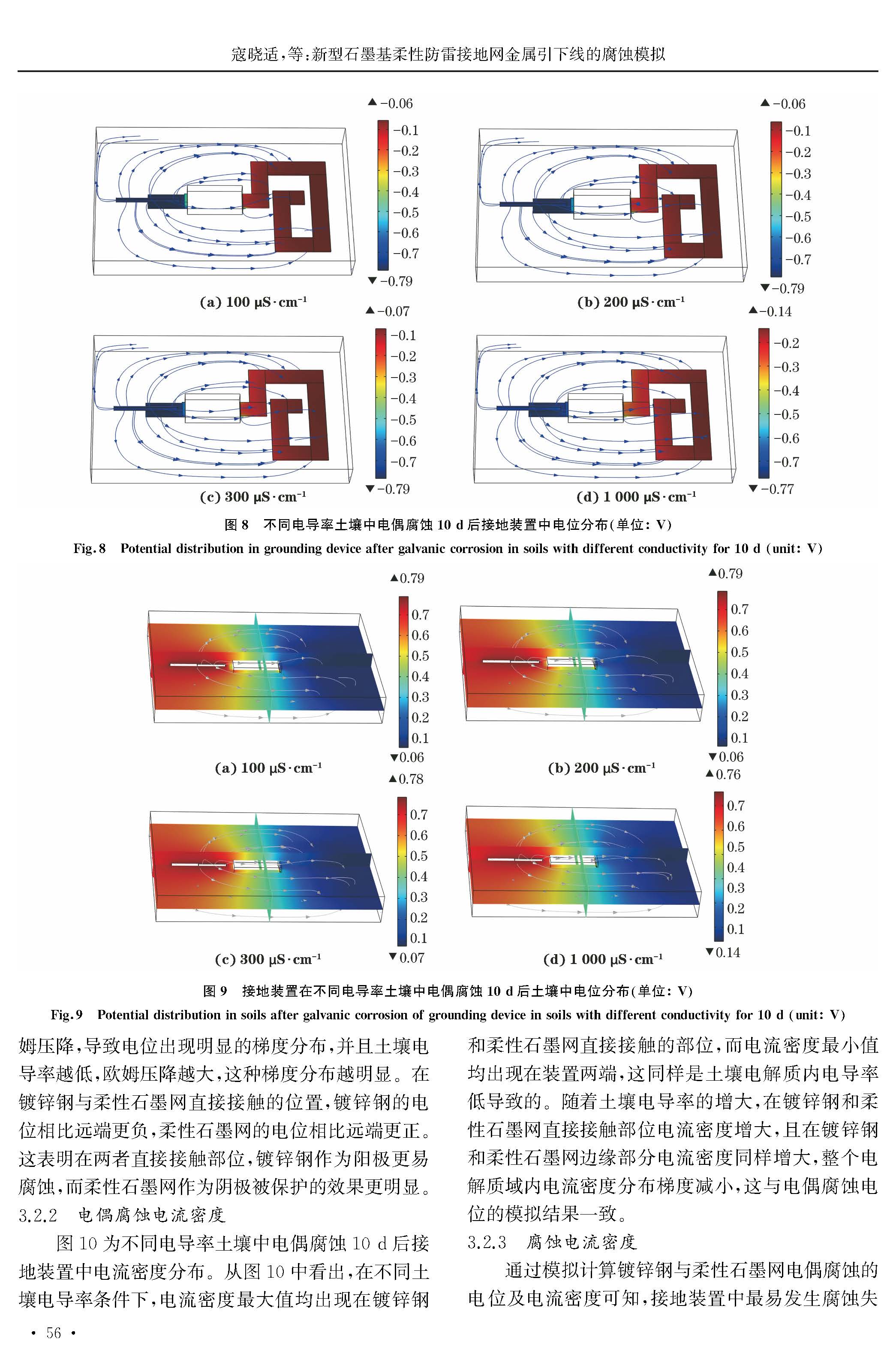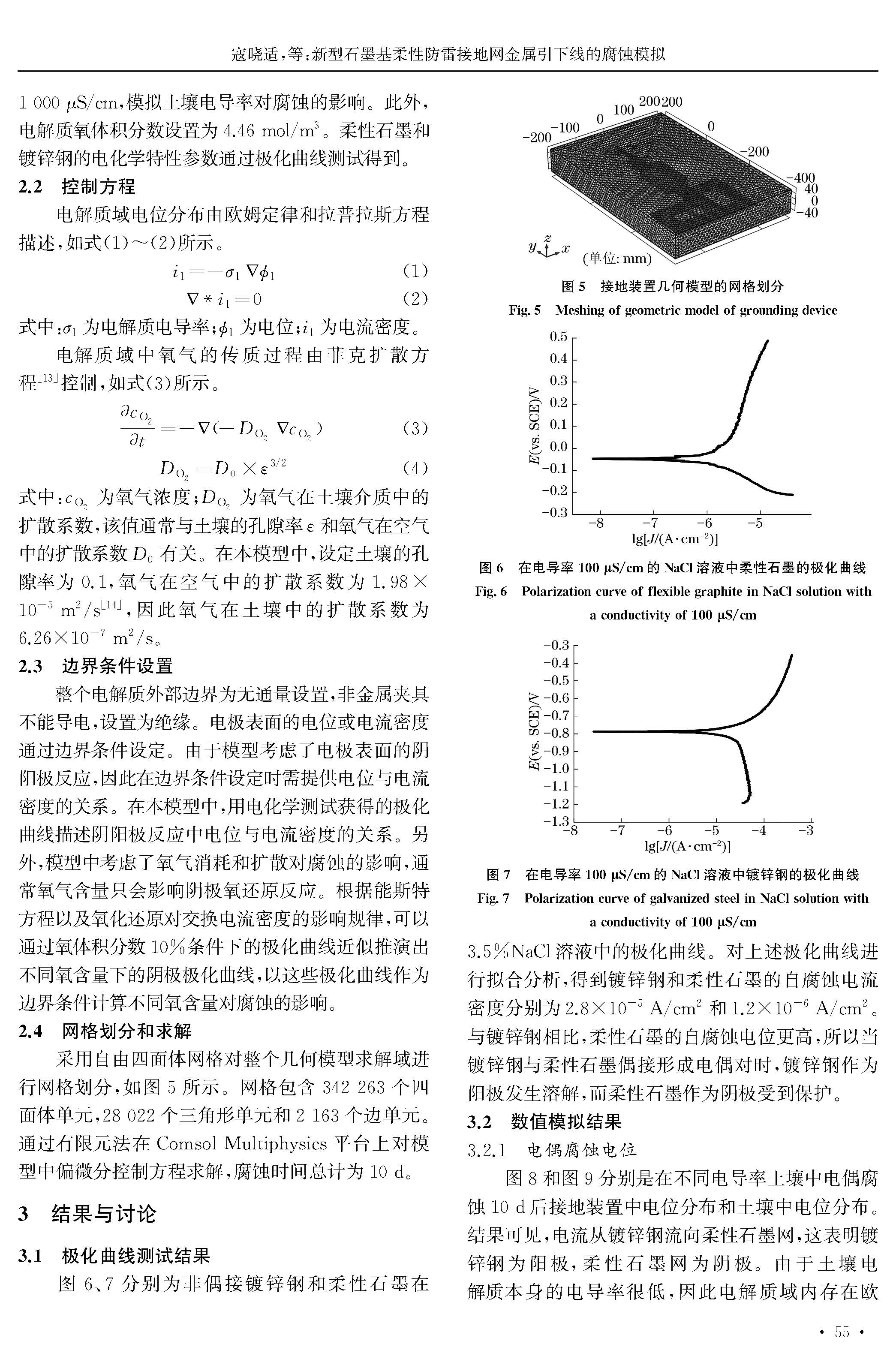 新型石墨基柔性防雷接地网金属引下线的腐蚀模拟