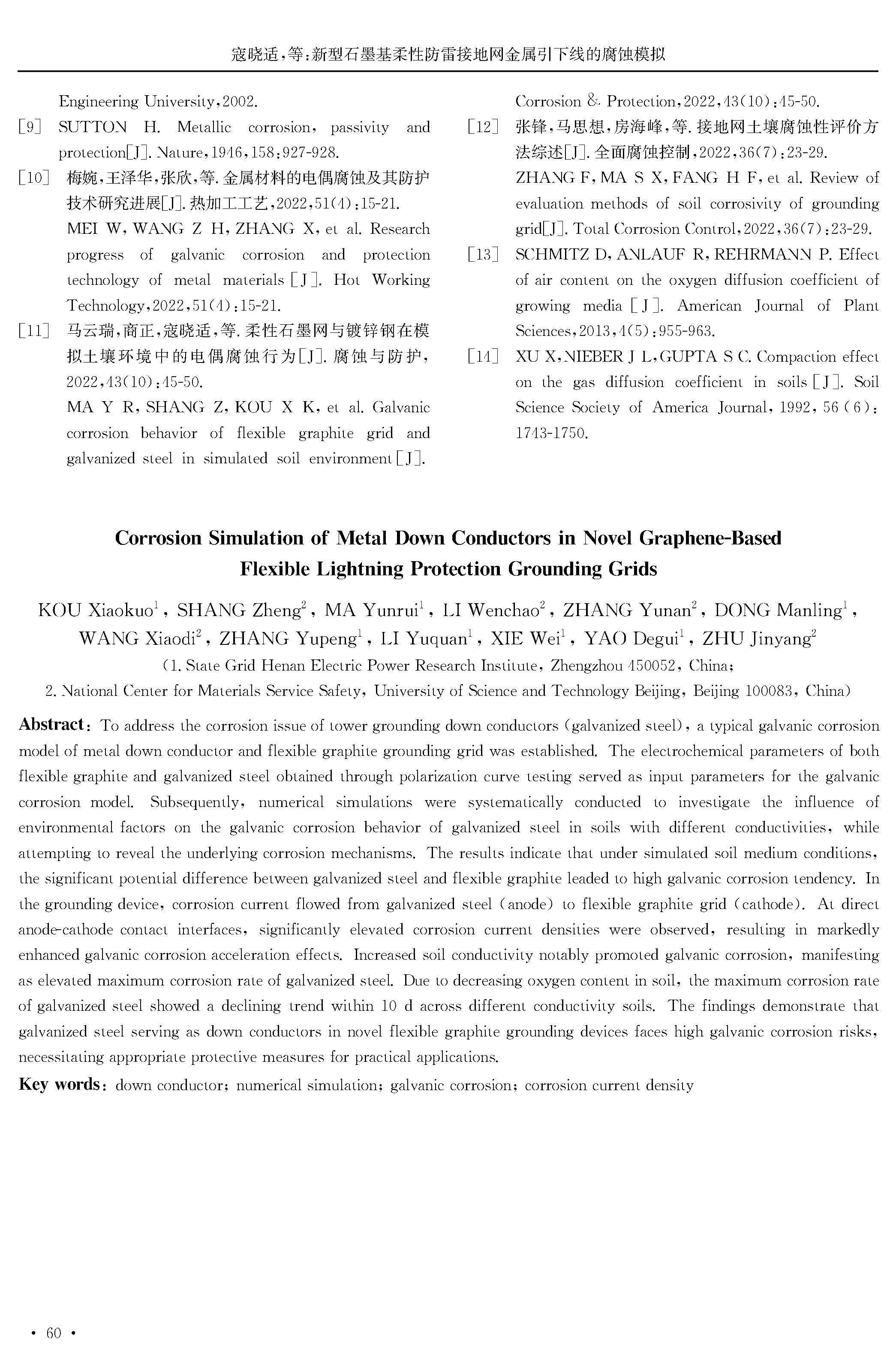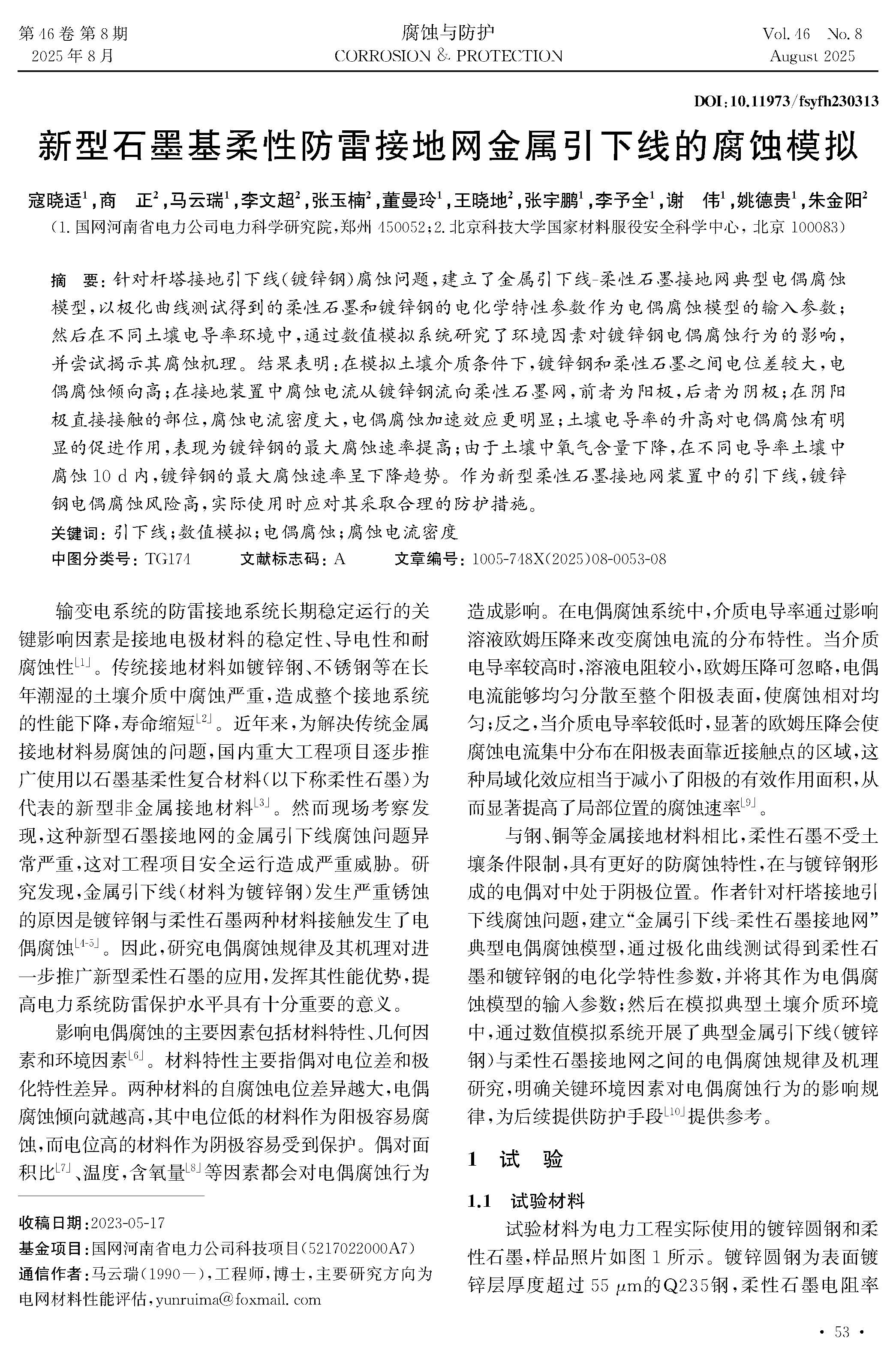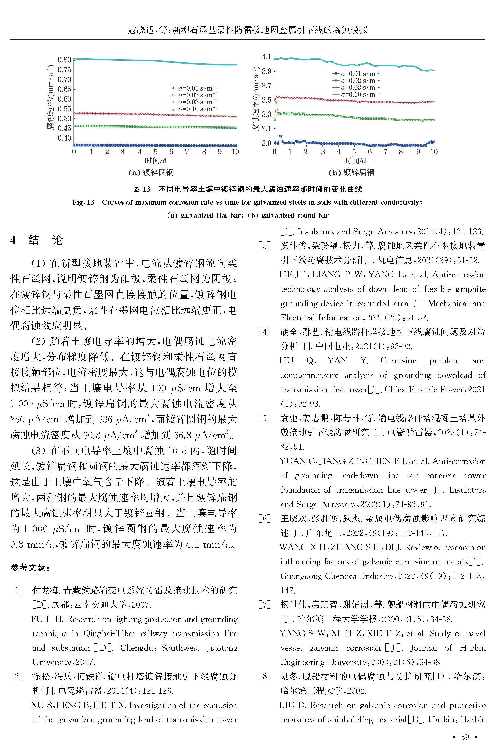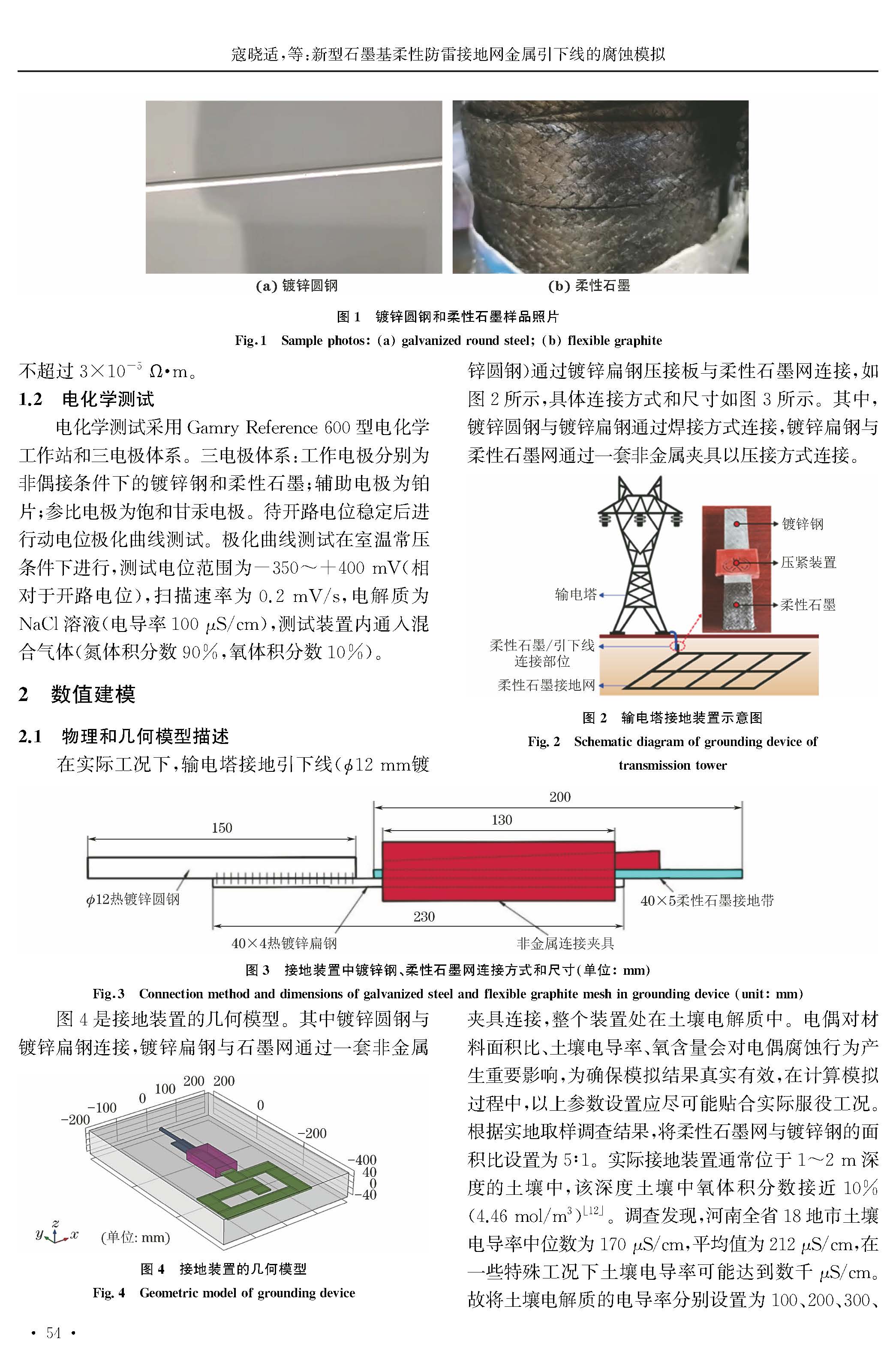 新型石墨基柔性防雷接地网金属引下线的腐蚀模拟