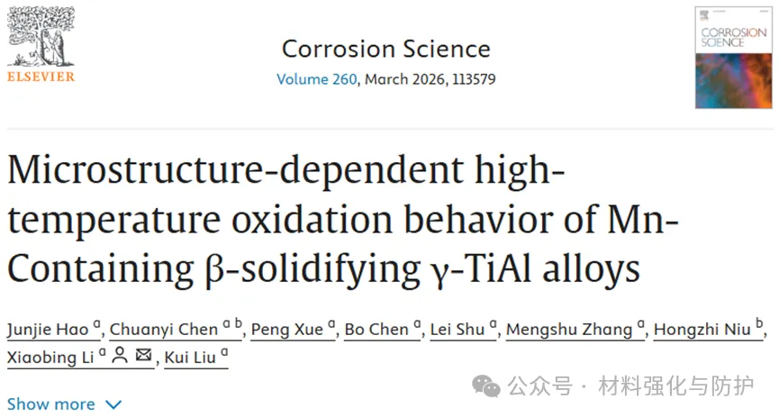 该研究明确了含Mn的β凝固型γ-TiAl合金的近层片(NL)和等轴(EQ)结构在高温氧化中表现出短期和长期性能的差异。其中NL结构因形成连续的Laves相过渡层和扩散区而表现出更好的长期抗氧化性,为合金微观结构优化提供关键依据。未来可以进一步完善该类合金的抗氧化机制以实现工程应用支撑。