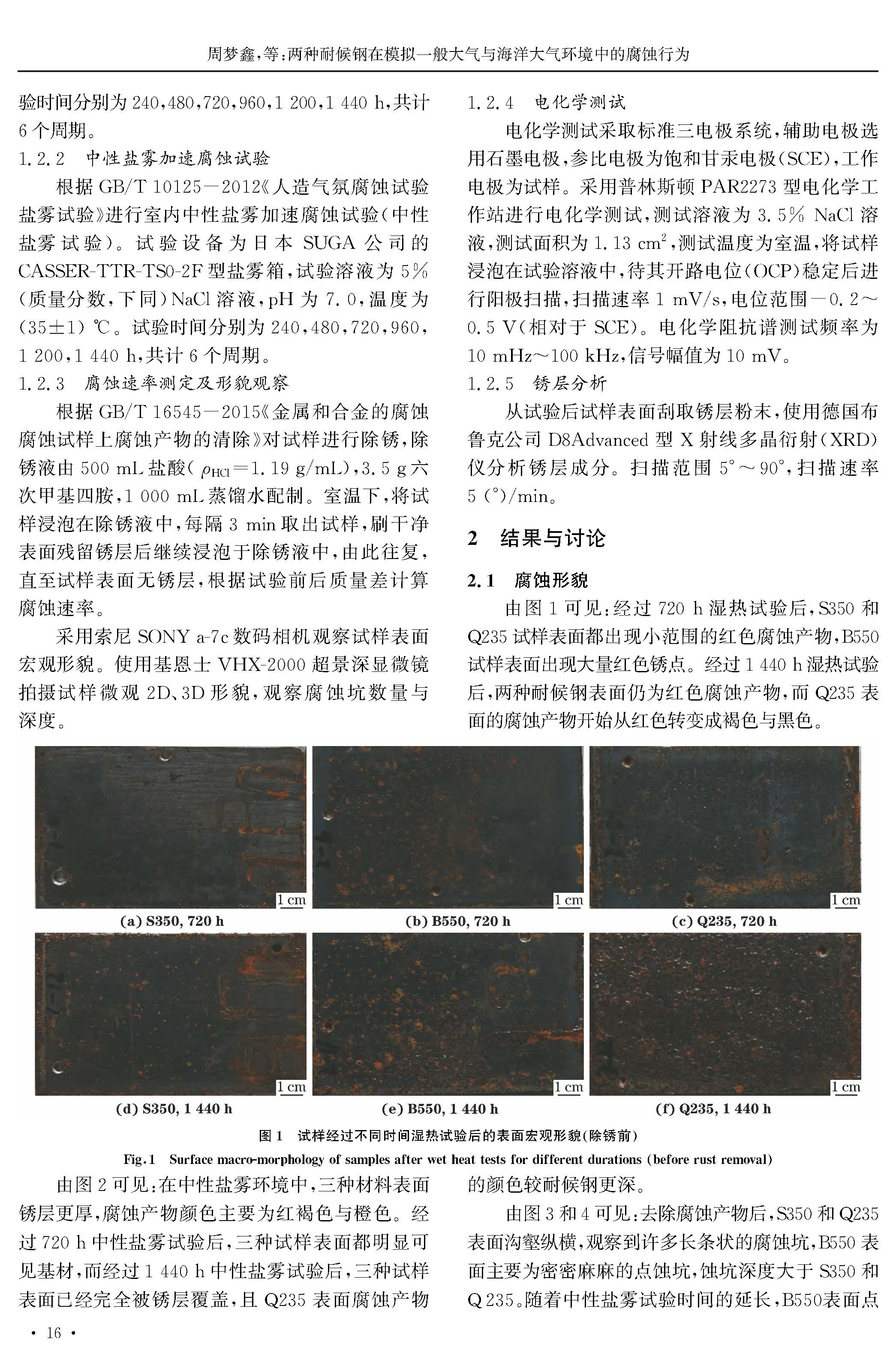 两种耐候钢在模拟一般大气与海洋大气环境中的腐蚀行为