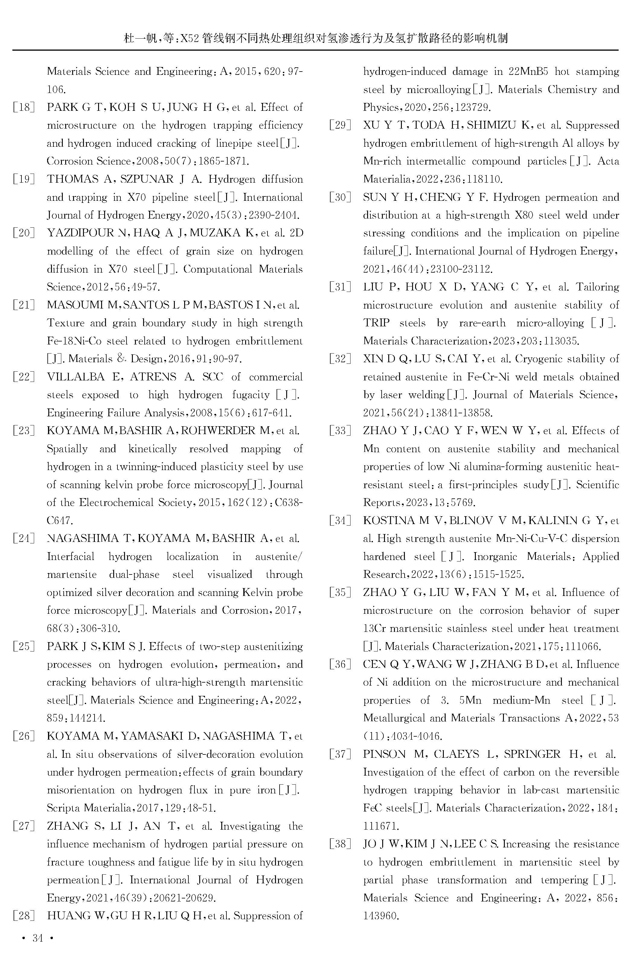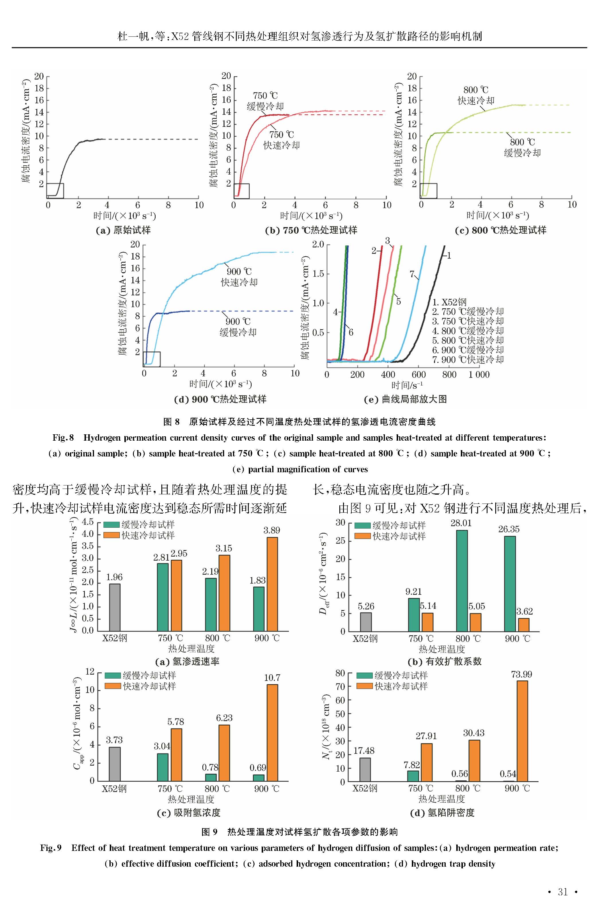 X52管线钢不同热处理组织对氢渗透行为及氢扩散路径的影响机制