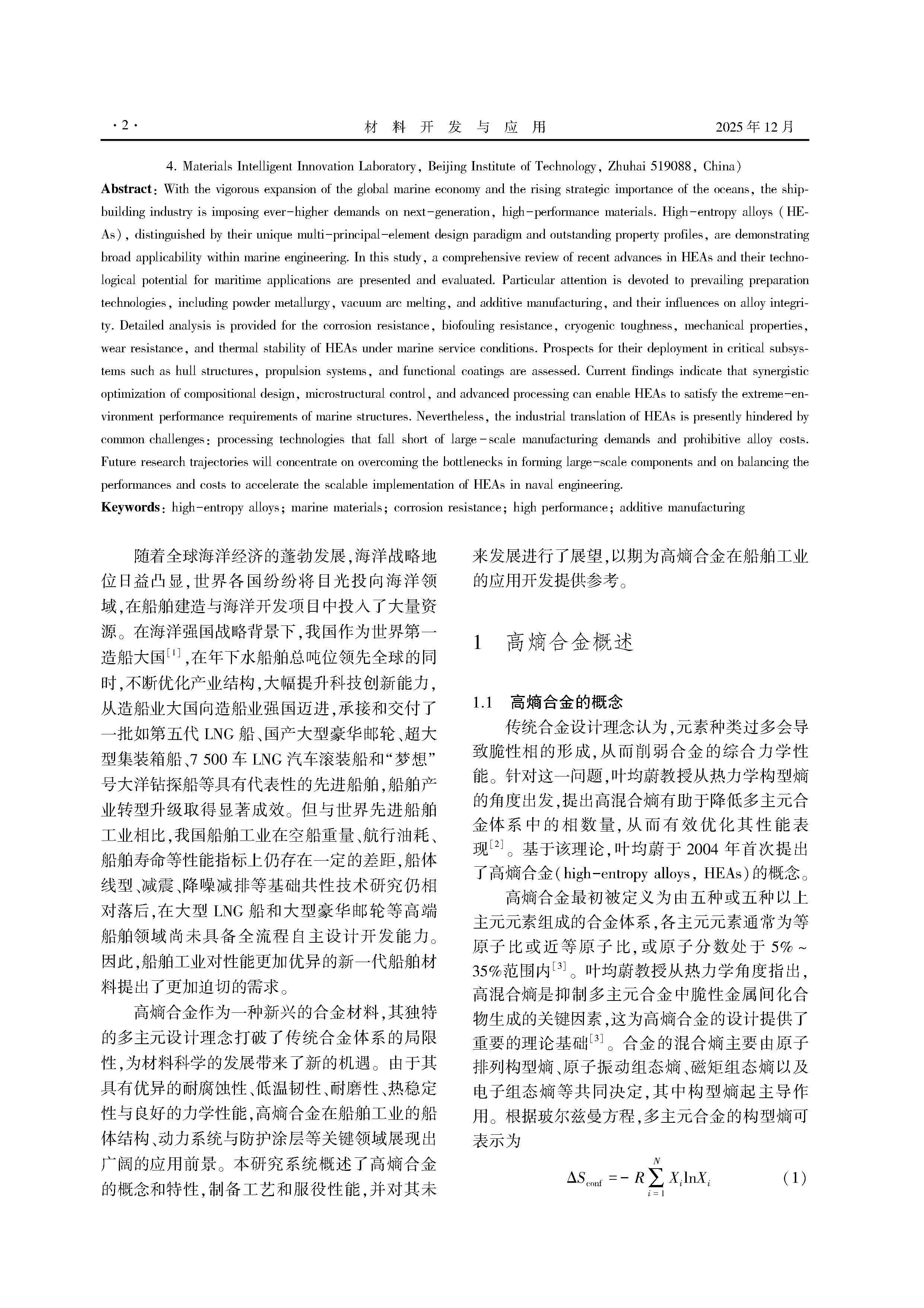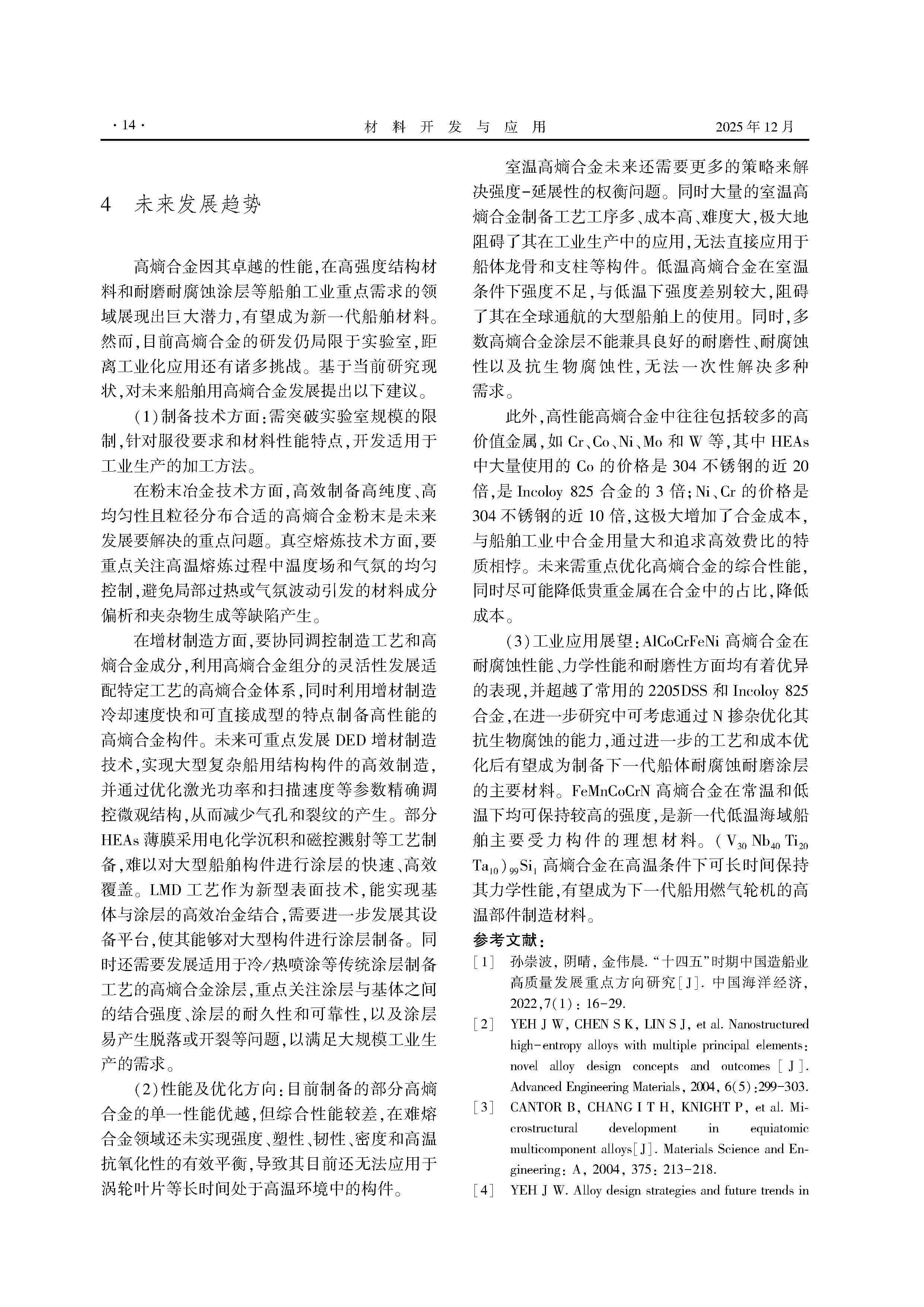 船舶用高熵合金的发展与应用展望