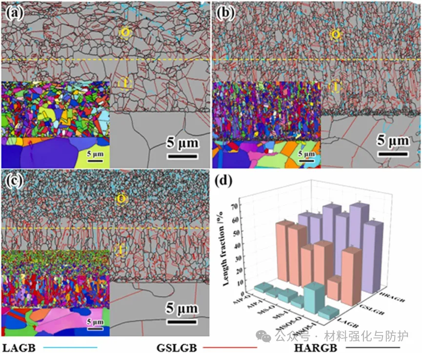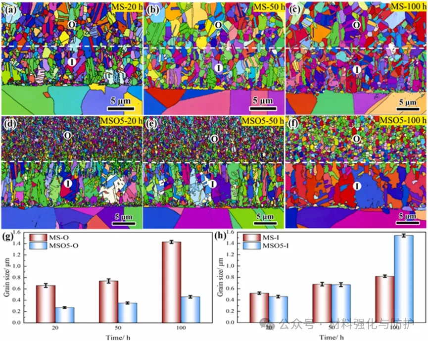 在800°C氧化后,MS和MSO5涂层的EBSD表征和晶粒尺寸统计