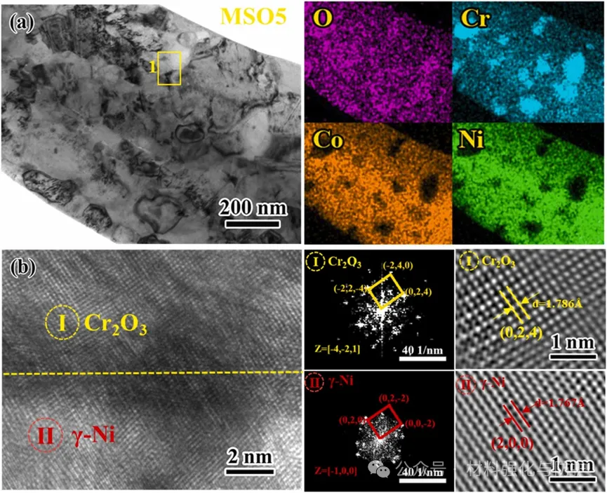 涂层外层氧掺杂细晶层和内层柱状层,形成功能分区。同时,外层生成了特定取向Cr2O3纳米弥散相,实现“溶解-扩散-再生”的动态补Cr。其晶粒细化、弥散相补Cr和内层异常晶粒生长三重协同,使涂层兼顾抗氧化性与界面稳定性。