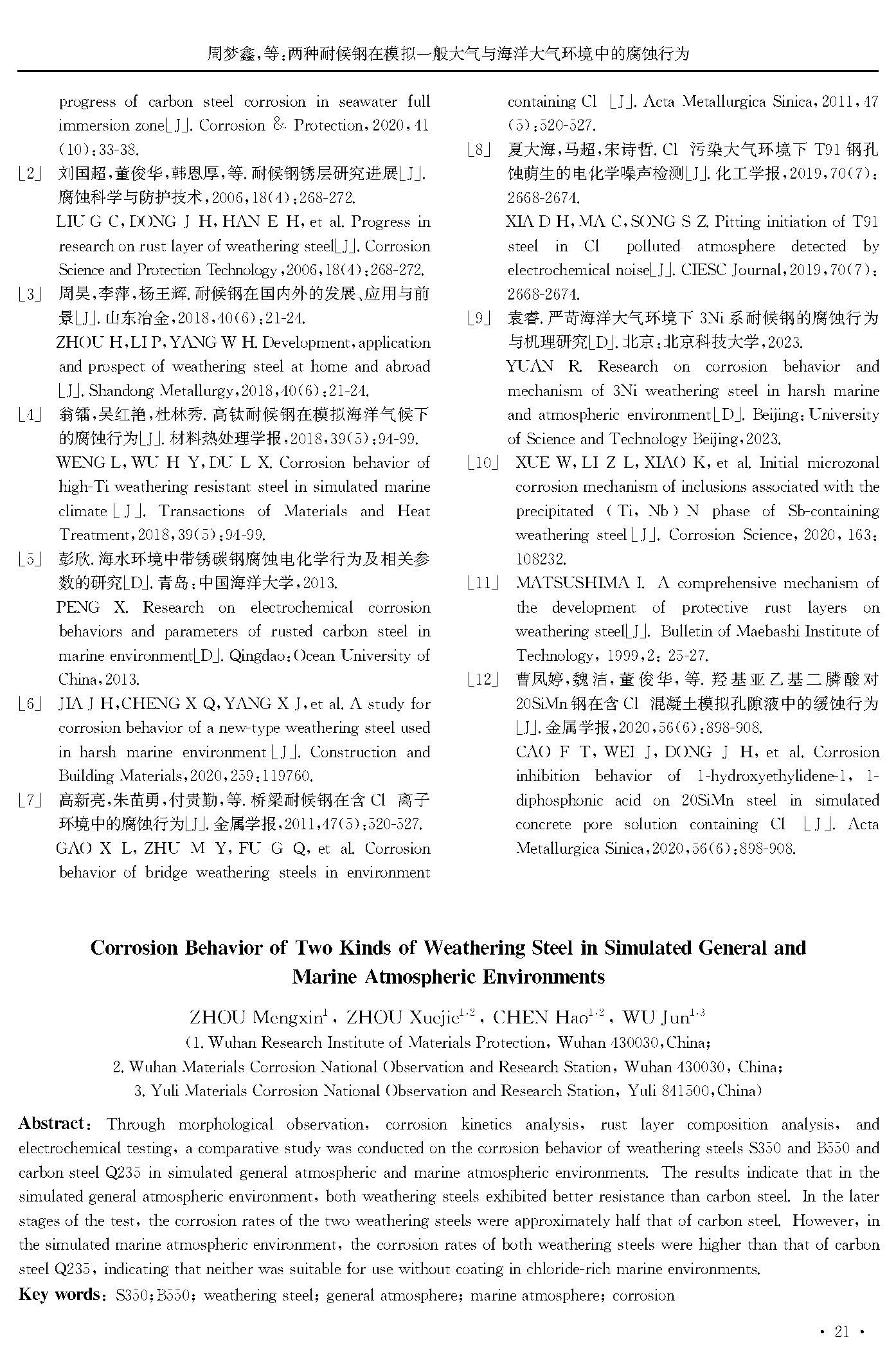 两种耐候钢在模拟一般大气与海洋大气环境中的腐蚀行为