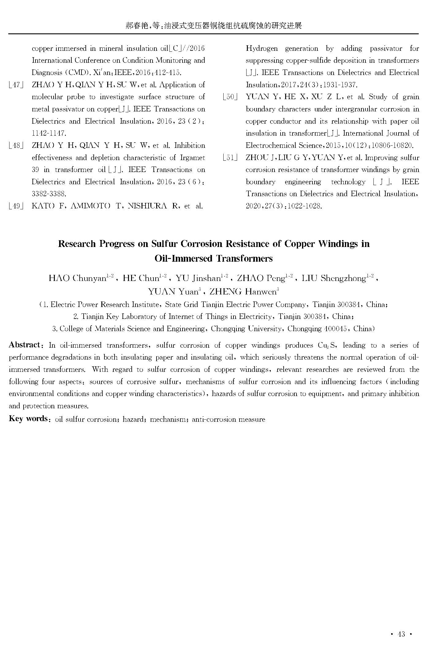 油浸式变压器铜绕组抗硫腐蚀的研究进展