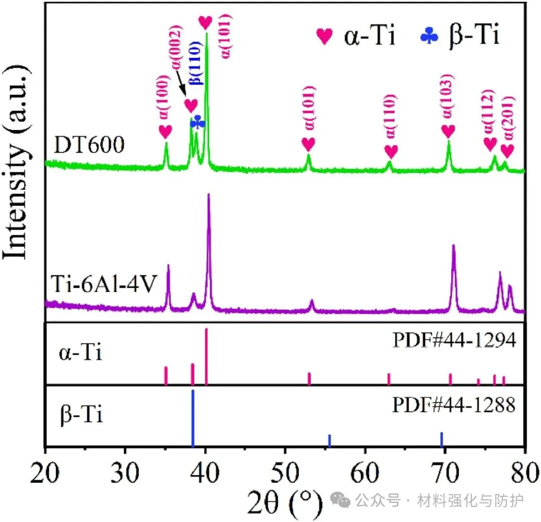 DT600与Ti-6Al-4V的X射线衍射图谱对比