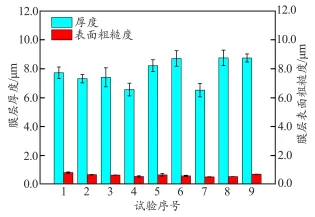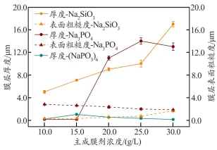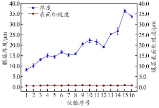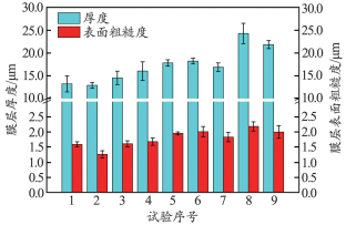 稀土镁合金微弧氧化工艺 设计及其耐蚀性能研究 周 洋1, 王腾达1,2, 赵延飞1, 李龙博1 (1. 中国船舶集团有限公司第七二五研究所, 河南 洛阳 471023; 2. 海洋腐蚀与防护全国重点实验室, 河南 洛阳 471023) 摘 要:通过探究微弧氧化过程中电解液成分及电参数对VW63稀土镁合金表面氧化膜层的组织形貌、元素成分、厚度及粗糙度、硬度、耐蚀性能等的影响规律,揭示微弧氧化过程中膜层的生长特点,系统分析影响膜层综合性能的因素。结果表明,微弧氧化工艺的最佳电解液成分为25.0 g/L的硅酸钠、15.0g/L的氟化钠、15.0 g/L的氢氧化钠和15.0 g/L的三乙醇胺,最佳电参数为电压450 V、频率500 Hz、占空比20%、时间20 min。采用优化后的微弧氧化处理工艺制得的膜层厚度均匀,硬度可达到472HV0.01,膜层与基体的界面结合强度可达到50.0 MPa。与未经处理的镁合金相比,经微弧氧化处理的镁合金其耐蚀性能明显提高。 关键词:微弧氧化; 稀土镁合金; 耐蚀性能 文中主要图表 (序号为文中序号) 图1 不同主成膜剂制得膜层的 宏观形貌 图2 主成膜剂浓度与膜层厚度及 表面粗糙度的关系 表1 配方1成分正交试验因素 水平表 g/L 表2 配方1成分正交试验方案 图3 配方1成分正交试验样品的 膜层厚度及表面粗糙度 图4 配方1成分正交试验样品的 宏观形貌 图5 配方1成分正交试验样品的 微观形貌 表3 配方1成分正交试验样品的 化学成分(w) % 表4 配方2成分正交试验因素 水平表 g/L 表5 配方2成分正交试验方案 图6 配方2成分与膜层厚度及表面 粗糙度的关系 图7 配方2成分正交试验样品的 宏观形貌 图8 配方1成分、配方2成分正交 试验样品的膜层厚度及表面粗糙度 图9 配方1、配方2制得典型样品 截面的SEM图像 表6 优选配方2电参数正交试验 因素水平表 表7 优选配方2电参数正交试验方案 图10 优选配方2电参数正交试验 样品的膜层厚度及表面粗糙度 图11 优化后微弧氧化工艺制得 膜层的厚度 表8 优化后微弧氧化工艺制得 膜层的硬度 表9 优化后微弧氧化工艺制得膜层 与基体的界面结合强度 MPa 图12 微弧氧化处理前后试样经盐雾 试验后的表面形貌 图13 微弧氧化处理前后试样的 动电位极化曲线 图14 微弧氧化处理前后试样的 Nyquist图 结 论 (1)采用单因素控制变量法及多组正交试验,研究主成膜剂、添加剂和电参数对VW63镁合金微弧氧化膜层性能的影响。以膜层厚度为试验指数,表面粗糙度为参考试验指数,同时兼顾电解液试验寿命及工艺适应性窗口宽度,得出微弧氧化工艺的最佳电解液成分为25.0 g/L的硅酸钠、15.0 g/L的氟化钠、15.0 g/L的氢氧化钠和15.0 g/L 的三乙醇胺,最佳电参数为电压450 V、频率500 Hz、占空比20%、时间20 min。 (2)经过最佳微弧氧化工艺处理后,制得膜层的厚度为23.0~27.0 μm,且分布均匀;膜层的硬度平均值为472HV0.01,与镁合金基体的112HV0.01相比显著提高;膜层与基体间的界面结合强度平均值为50.0 MPa,结合情况良好。 (3)微弧氧化处理能显著降低镁合金基体的整体腐蚀速率,提高其耐蚀性能。这是由于微弧氧化在高温等离子放电状态下原位生成致密氧化层,能有效阻挡腐蚀介质与基体的接触。但在盐雾试验中,微弧氧化处理后的镁合金表面仍发生轻微腐蚀,且在长期浸泡条件下膜层会由于破损失去对基体的保护作用,这是因为微弧氧化膜层为多孔结构,腐蚀介质可通过贯穿孔接触镁合金基体,其本身的工艺特征决定了表面膜层残留较多缺陷,需继续对该多孔结构进行封孔处理,从而进一步提高膜层的腐蚀防护性能。