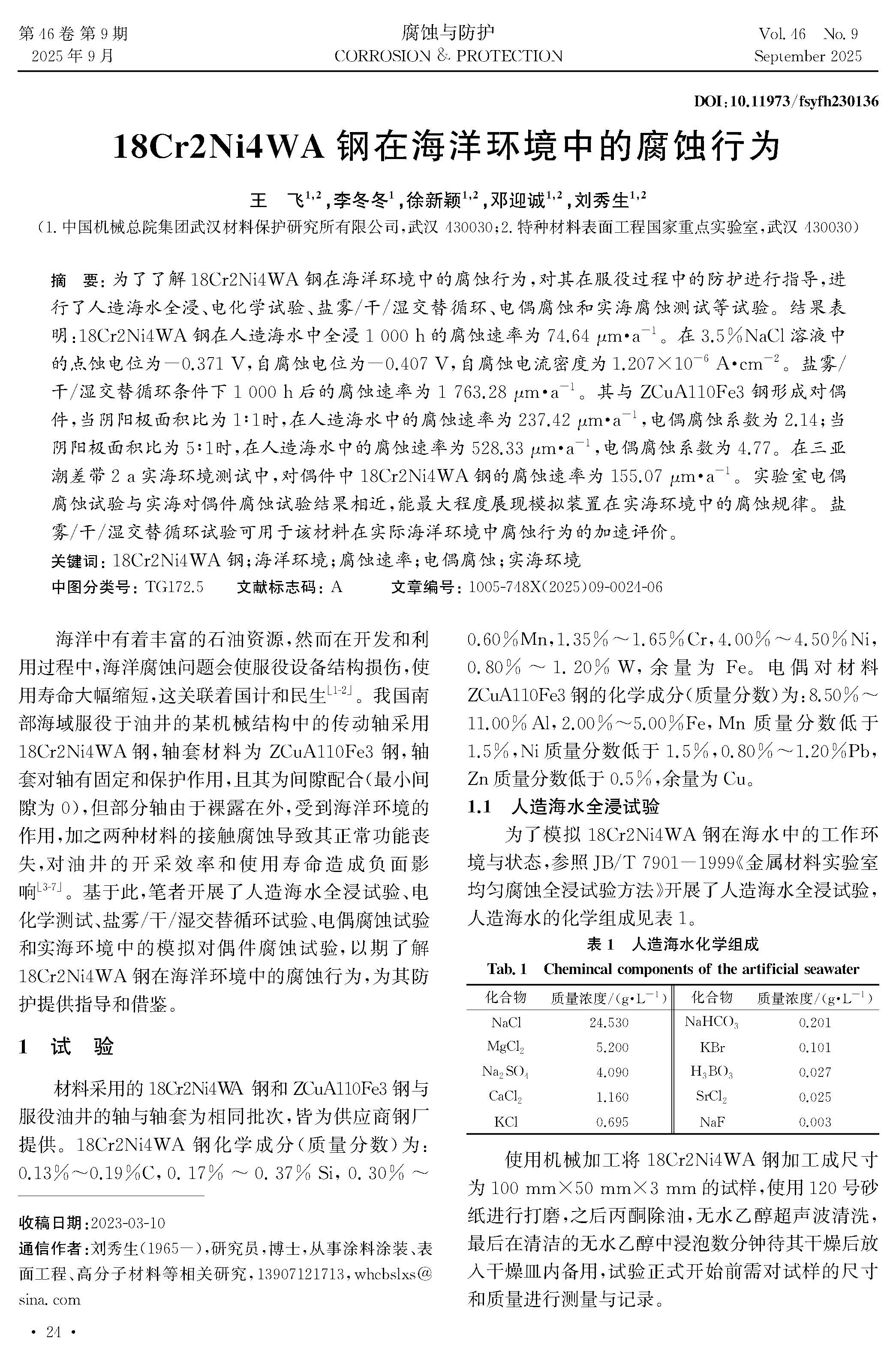 18Cr2Ni4WA钢在海洋环境中的腐蚀行为