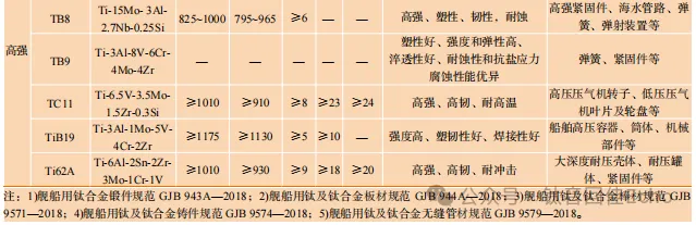 图 船舰用钛及钛合金牌号、体系、性能及应用