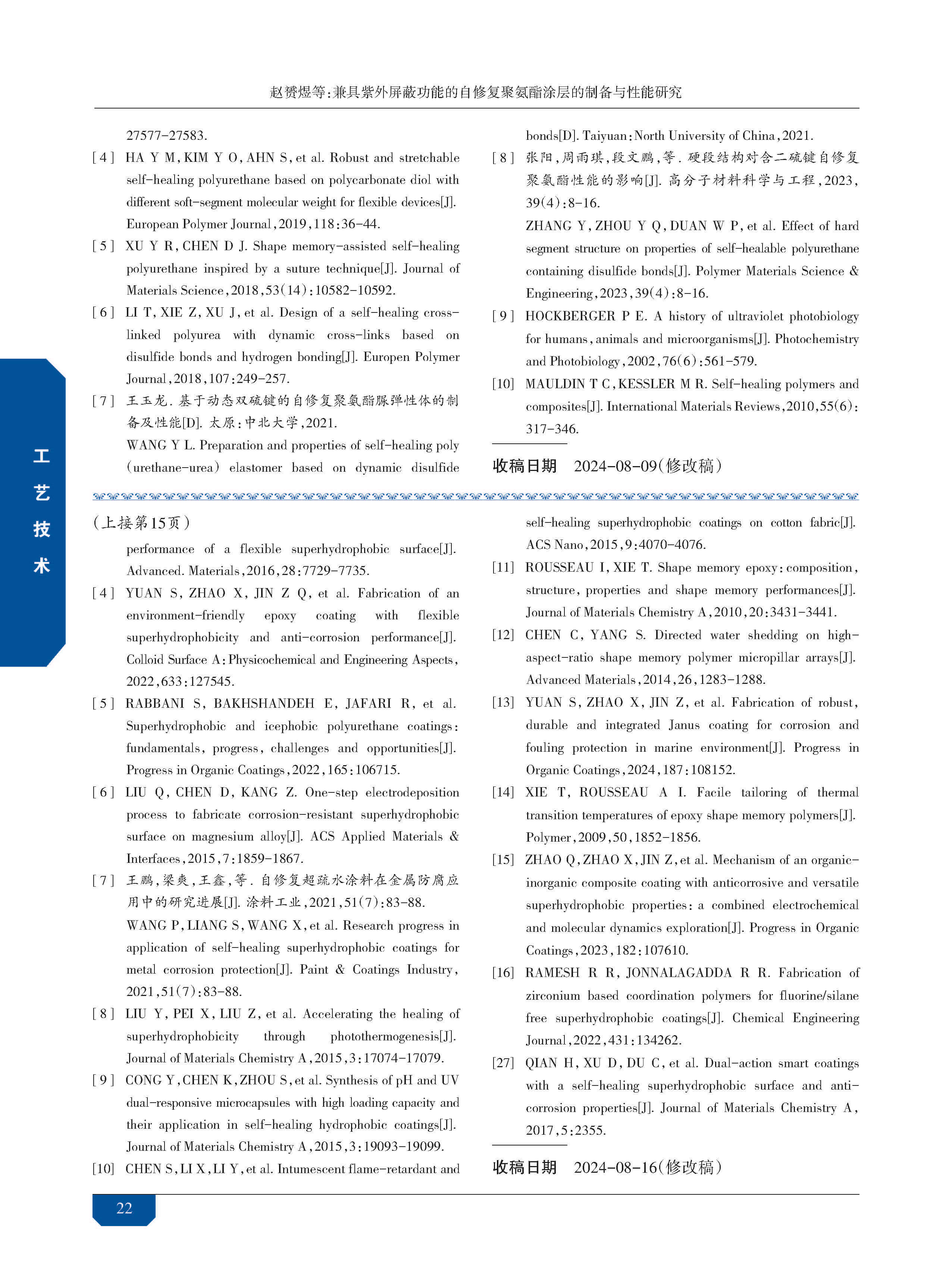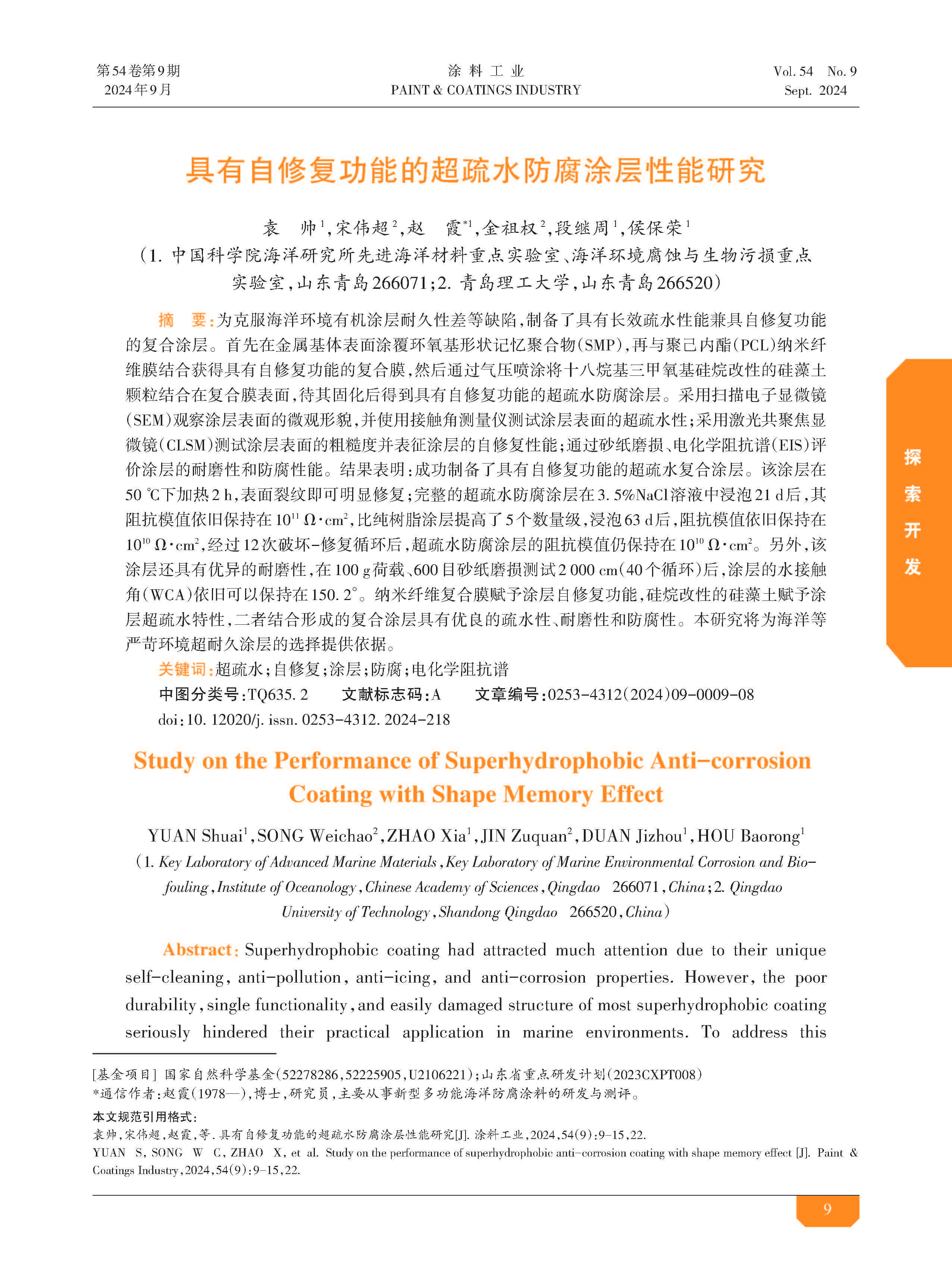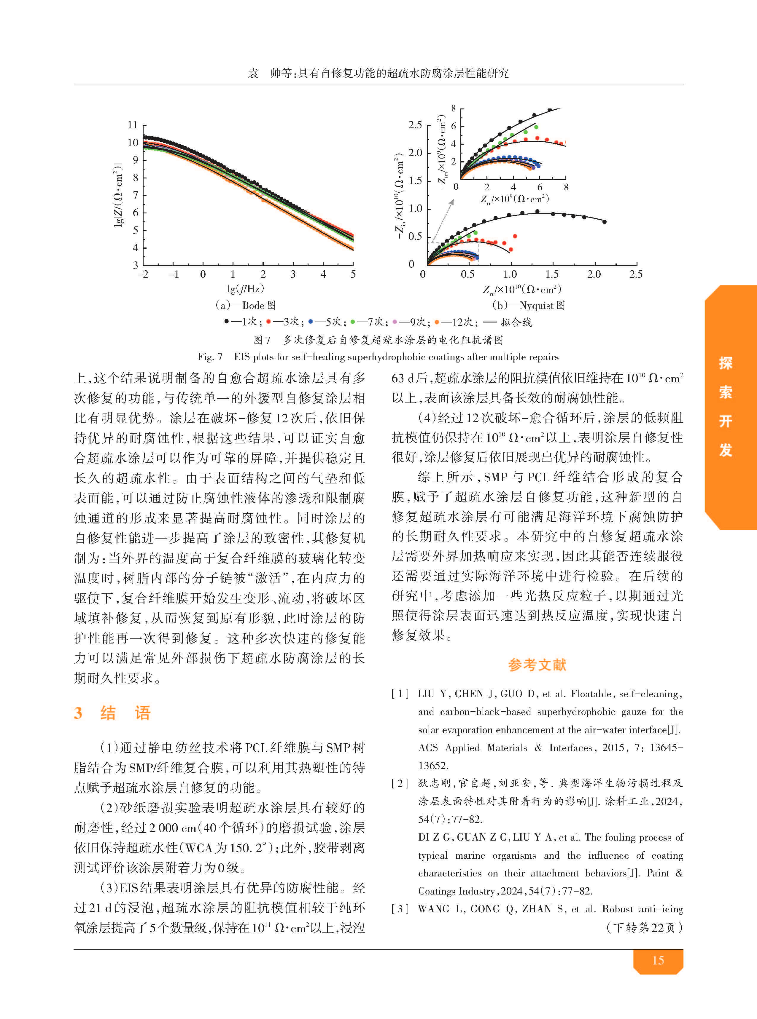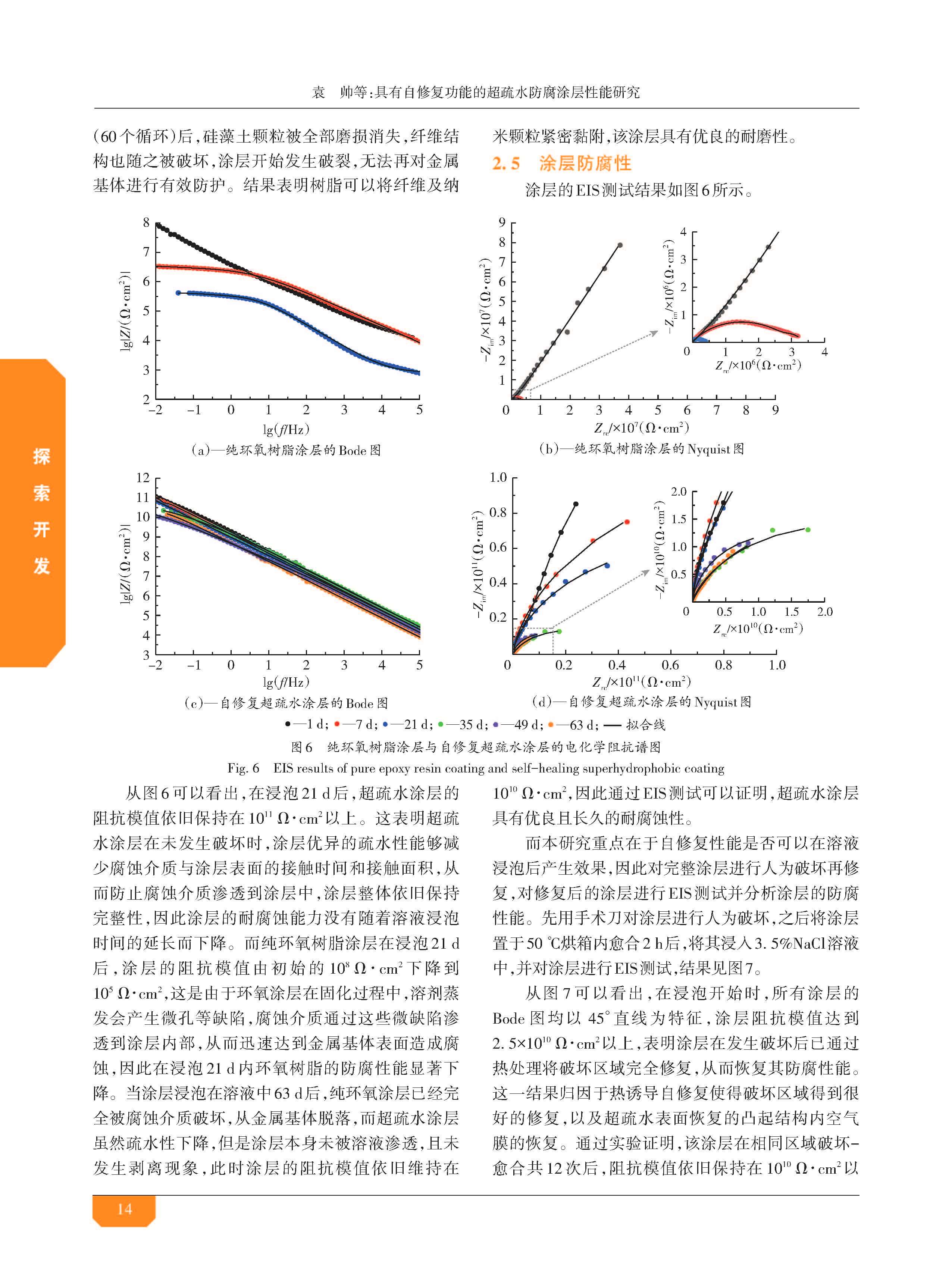 具有自修复功能的超疏水防腐涂层性能研究