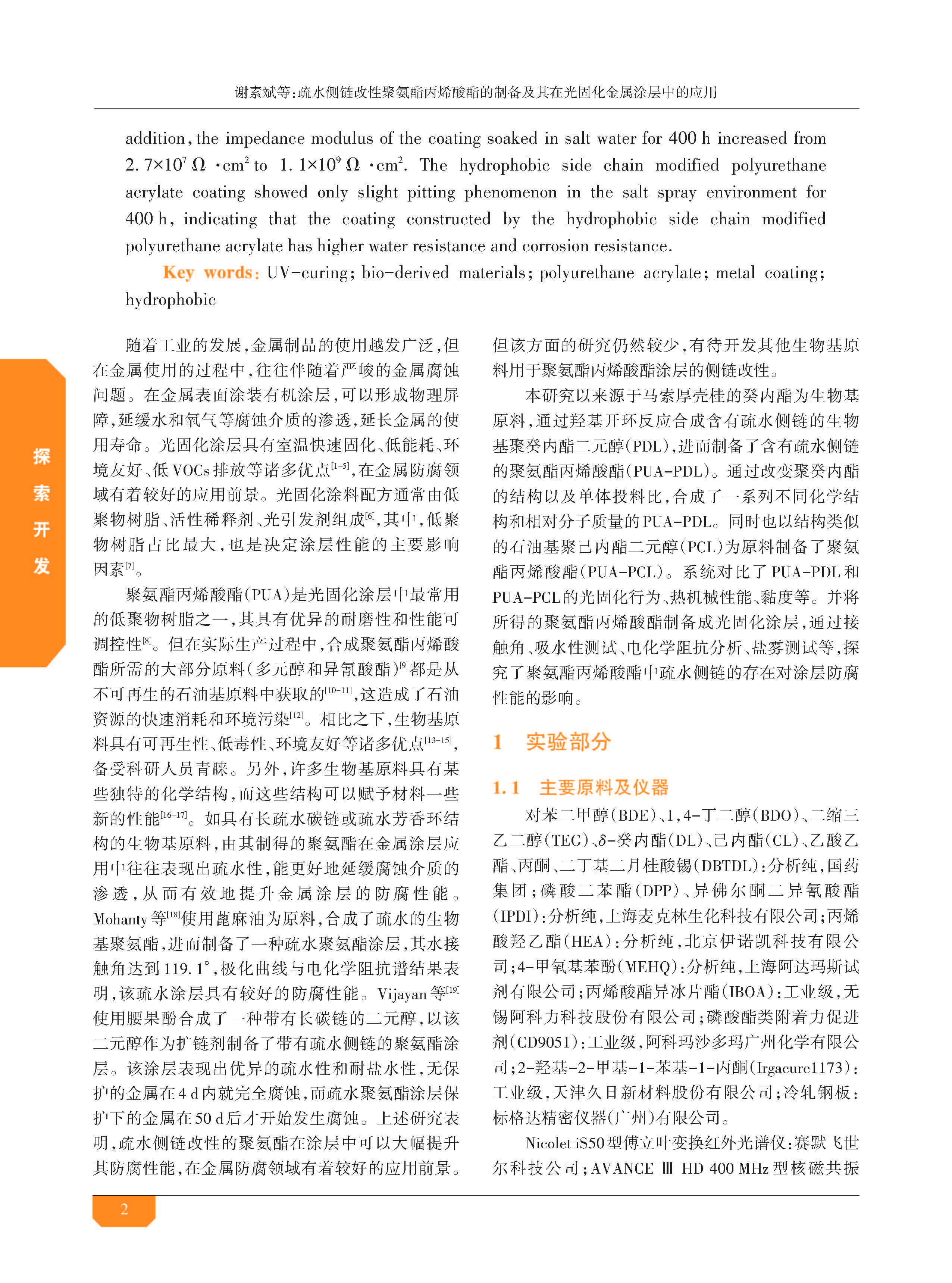 疏水侧链改性聚氨酯丙烯酸酯的制备及其在光固化金属涂层中的应用
