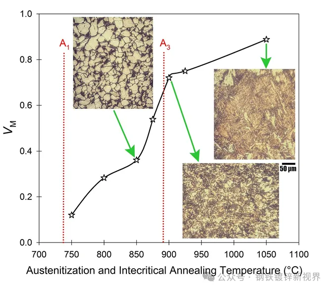 图7 奥氏体化温度和临界区退火温度对St12钢中VM的影响