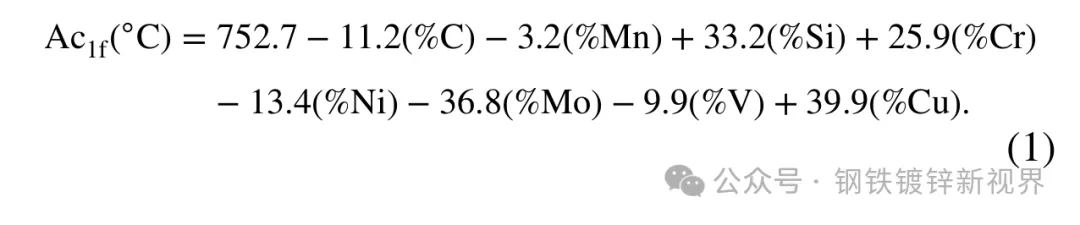 最近,研究了临界区退火(IA路线)过程中珠光体的溶解,其中珠光体溶解的终了温度(AC1f)起着关键作用。研究发现,在较低的临界区退火温度下,珠光体的存在是不可避免的,因此会得到铁素体-珠光体-马氏体显微组织(图10)。某些合金元素如铬的存在可以显著提高AC1f温度,如公式(1)所示:
