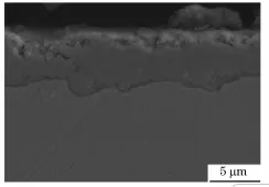 由图1可见 :表面氧化铁皮厚度为5~7μm,氧化铁皮整体致密性较好,没有观察到裂纹和内部孔洞。致密的氧化铁皮能够起到物理屏障作用,阻挡了钢基体的腐蚀。