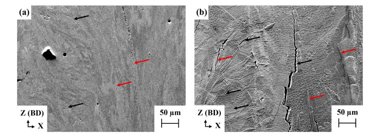 高 γ' 相镍基高温合金因具备优异的蠕变性能和疲劳强度,同时在高温下拥有良好的抗氧化性和耐腐蚀性,成为研究热点。这类合金在激光粉末床熔融成形过程中,快速凝固阶段的微裂纹敏感性较高,导致其成形加工难度大。现有关于增材制造高温合金裂纹问题的研究成果存在诸多分歧,如微裂纹主导机制不同、合金元素的作用效应相悖、第二相对微裂纹的影响认知不一等。多数研究仅针对单一合金、特定激光工艺参数,且部分研究采用电子束熔融等不同的增材制造技术,这些因素均可能导致研究结论的差异。本研究在相同的激光粉末床熔融成形工艺参数下,对 RENÉ 65 和 RENÉ 108 两种不同的高 γ' 相镍基高温合金的微裂纹形成机制展开研究。采用电子显微技术,探究 γ' 相、第二相及晶界元素偏聚对微裂纹形成的影响;结合原子探针层析成像测试与热力学模拟结果,分析激光粉末床熔融过程中的元素微偏析行为;并通过研究结果明确各合金元素对激光粉末床熔融成形高 γ' 相镍基高温合金主导微裂纹机制的作用规律。