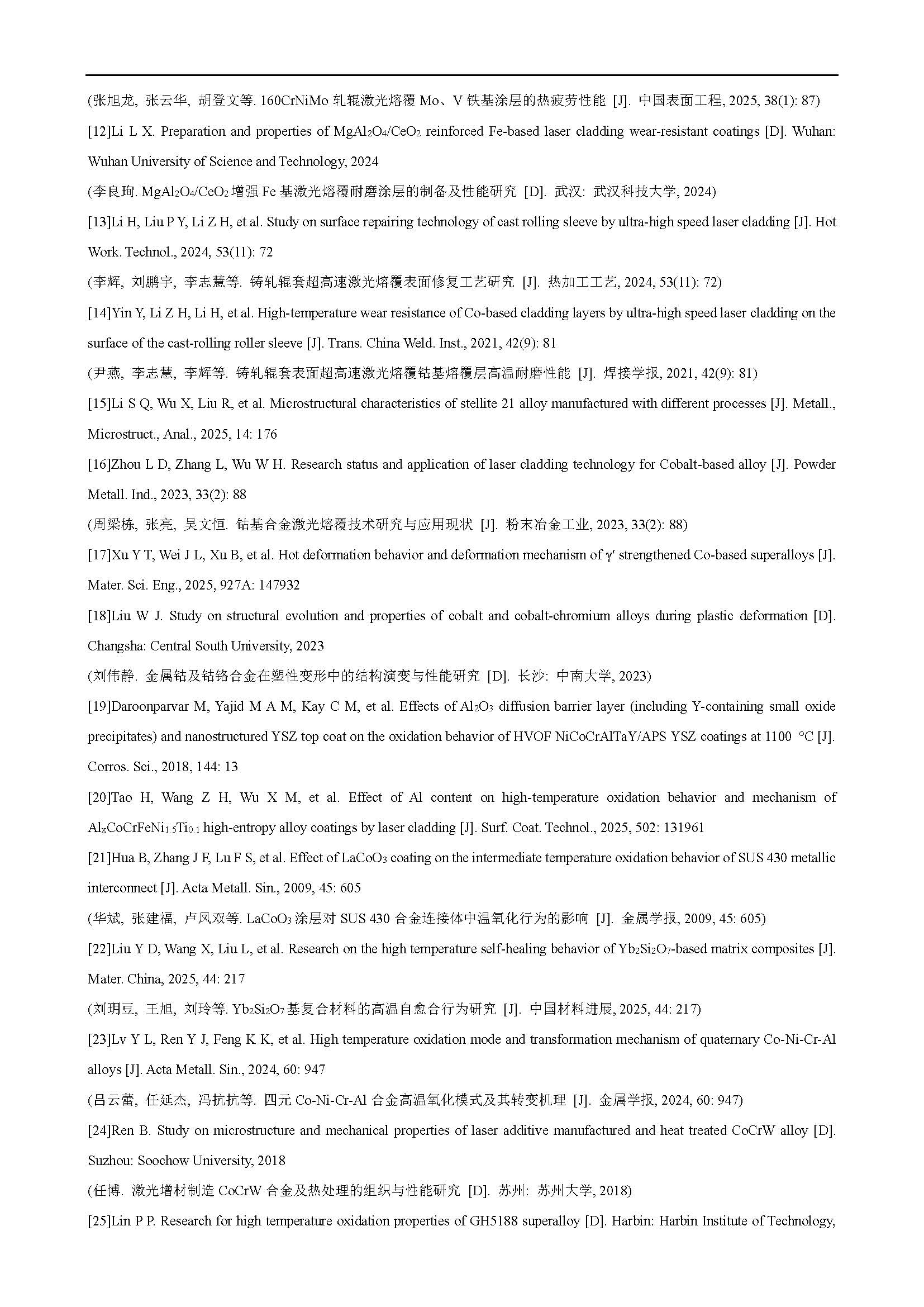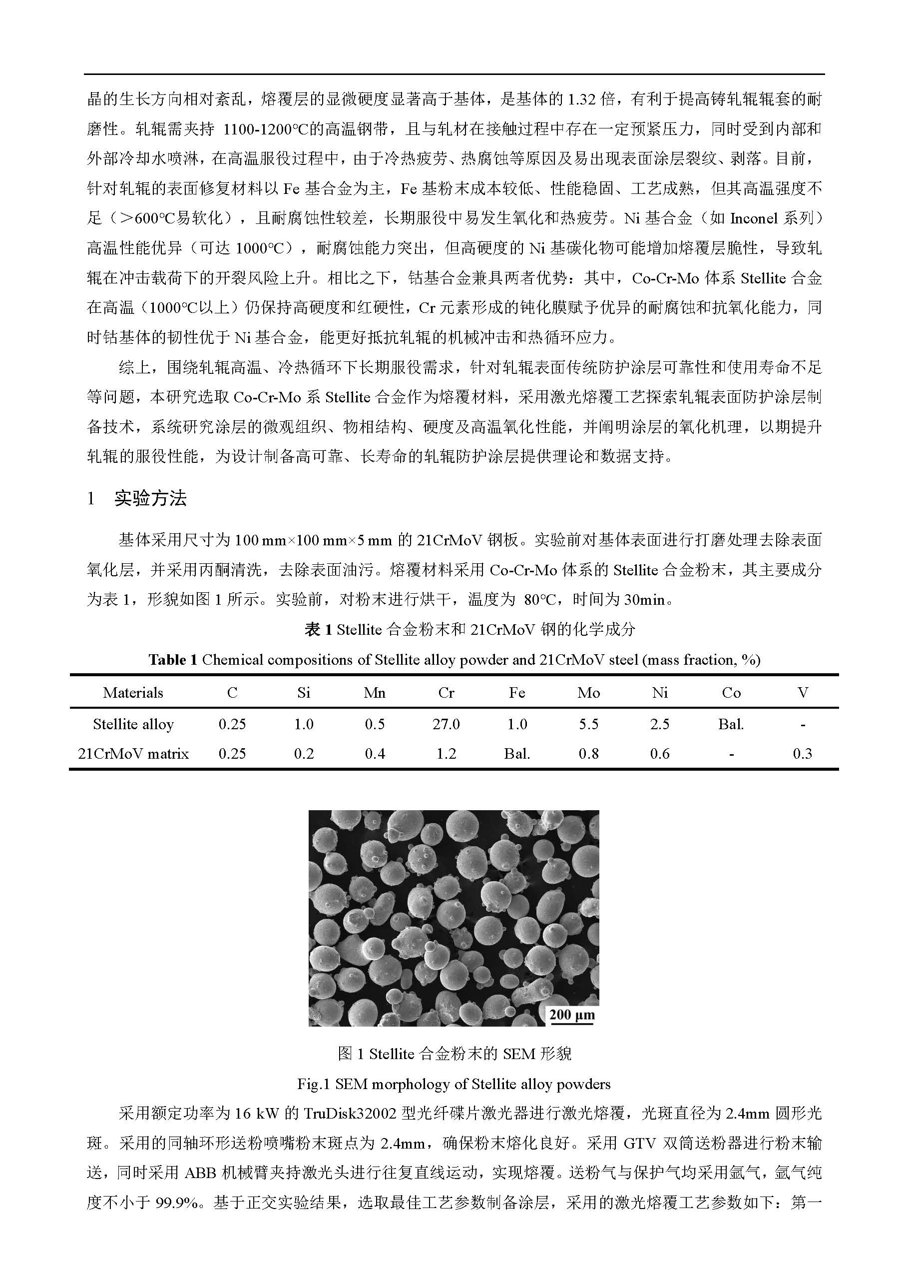 热轧关键备件表面激光熔覆Stellite合金涂层组织及高温氧化性能