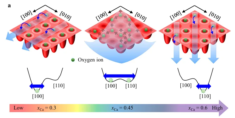 图9. 离子输运与氧空位有序相的关联。DOI: 10.1038/s41467-022-32826-8。