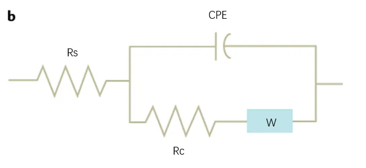 通过使用电阻(R)、电容(C)、常相位元件(CPE)和Warburg阻抗(W)等理想电子元件来构建电路,来模拟电化学体系复杂的阻抗行为。通过将ECM拟合实验得到的EIS数据,可以获得各元件的参数值,进而推断其所对应的物理化学过程(图7)。