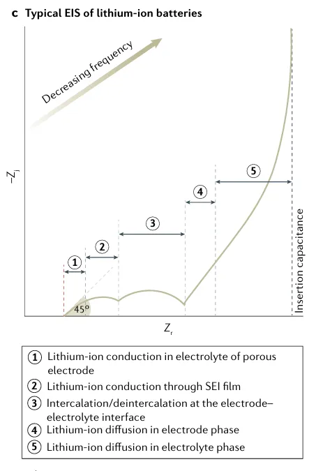 图11. 扩散过程的阻抗特征对应中低频区的扩散拖尾。DOI: 10.1038/s43586-021-00039-w。