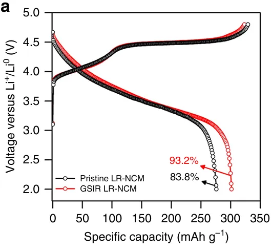 图5. 电池充放电曲线/倍率与循环性能对比,氧空位的引入致使性能的提升。DOI: 10.1038/ncomms12108。